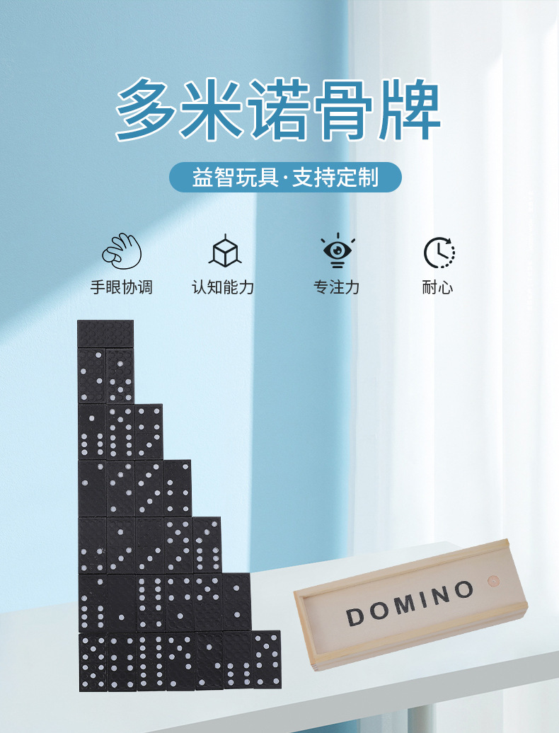 Детская головоломка Домино Деревянная коробка для хранения очков Пасьянс Количество познавательных деревянных игрушек