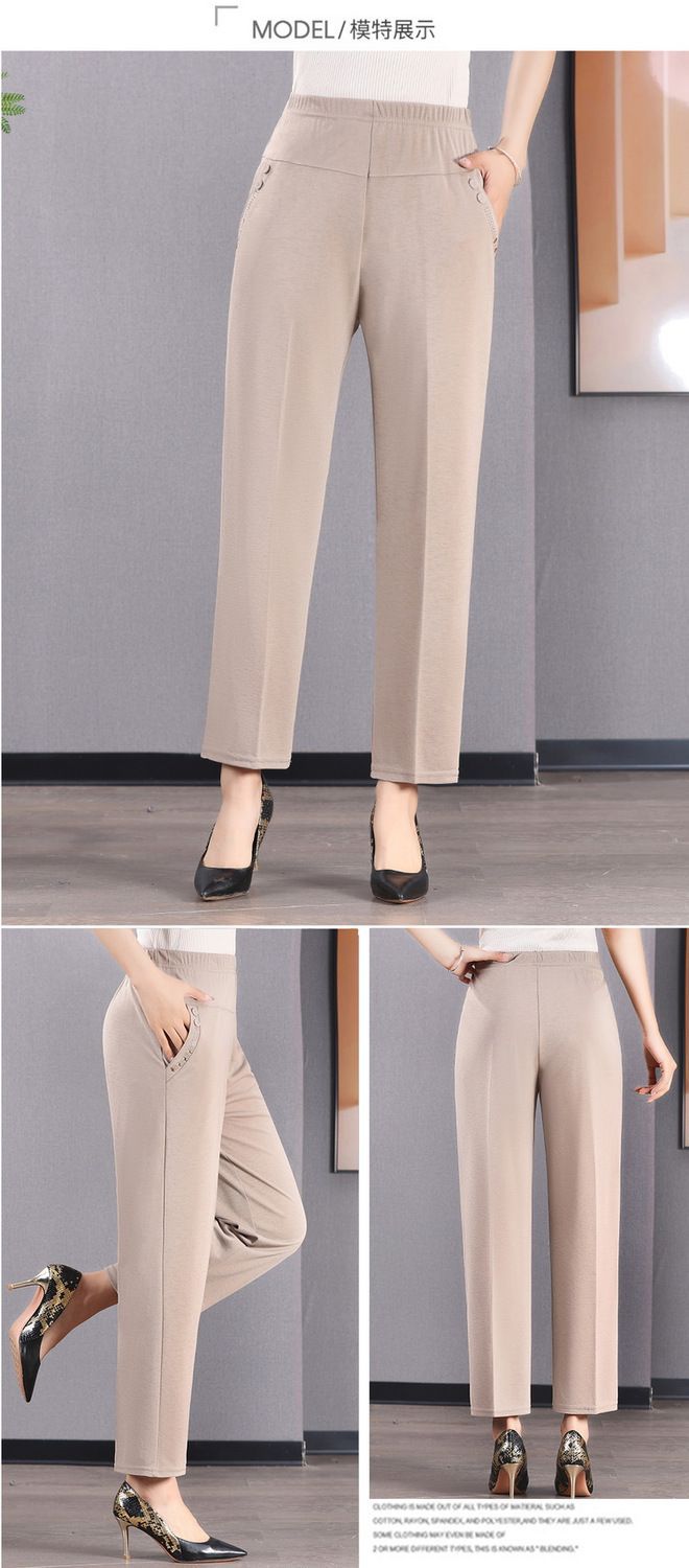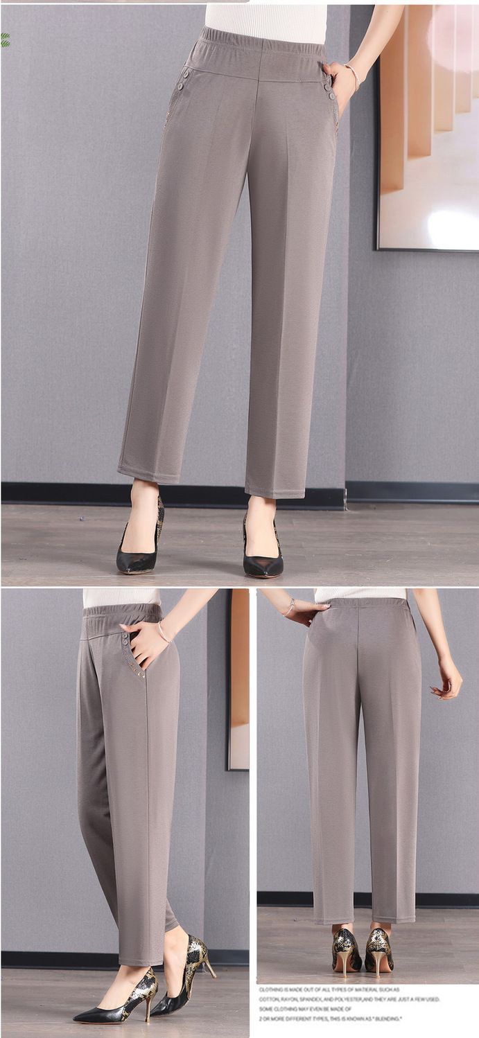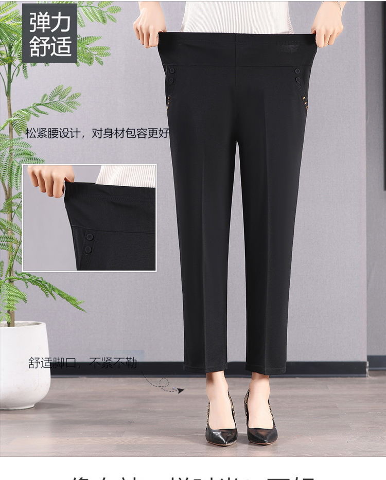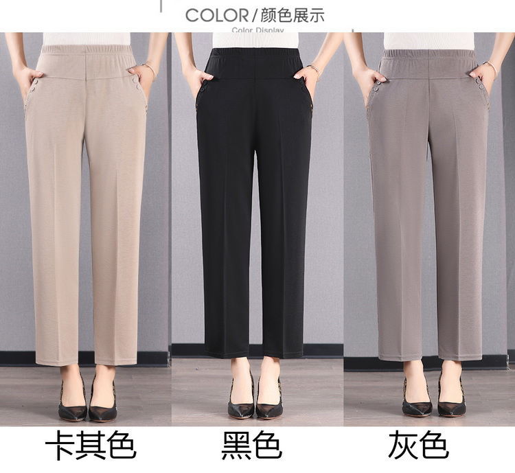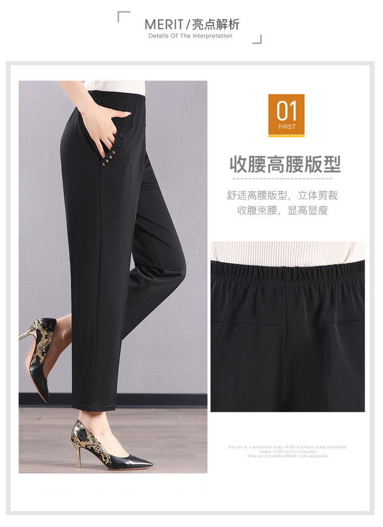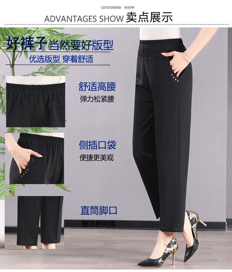 Летние тонкие ледяные шелковые брюки мамы эластичные брюки с высокой талией повседневные брюки свободные девятиочковые женские брюки среднего и пожилого возраста прямые брюки