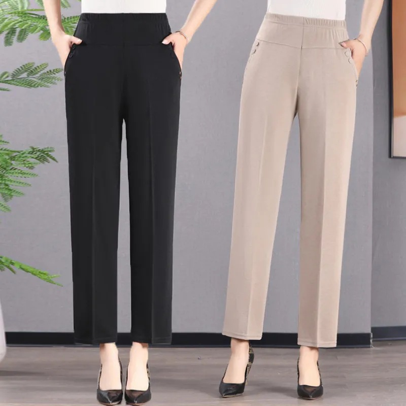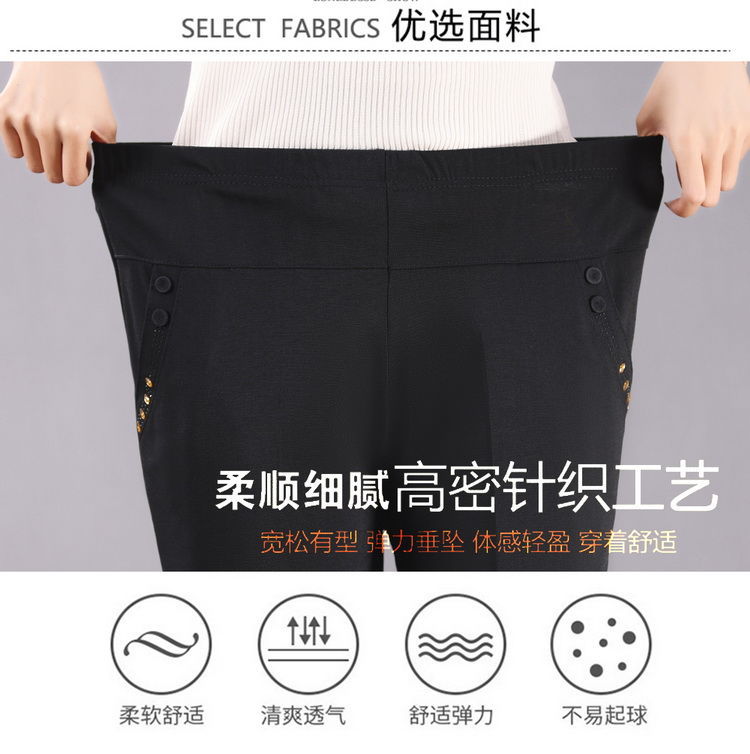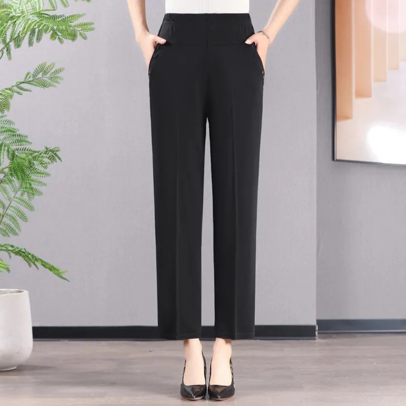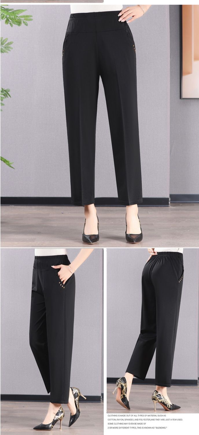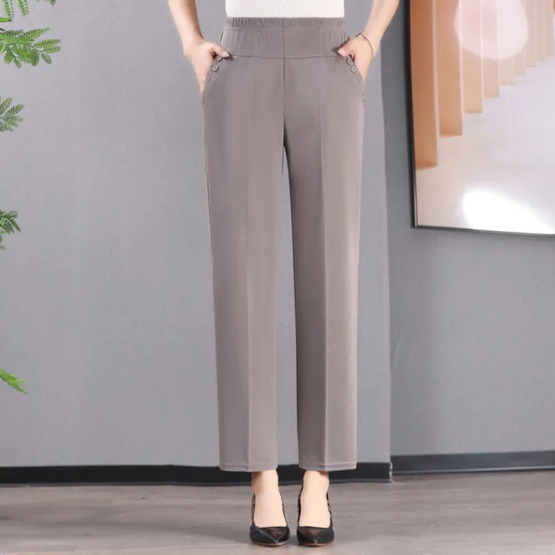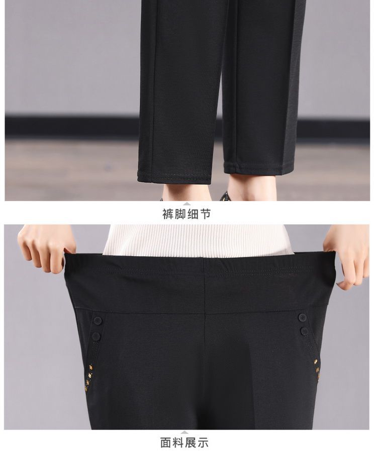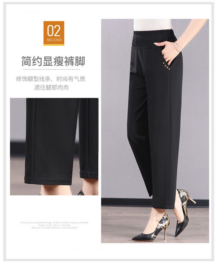 Летние тонкие ледяные шелковые брюки мамы эластичные брюки с высокой талией повседневные брюки свободные девятиочковые женские брюки среднего и пожилого возраста прямые брюки