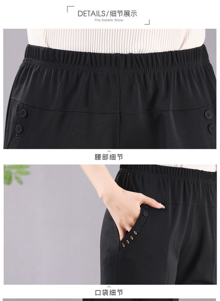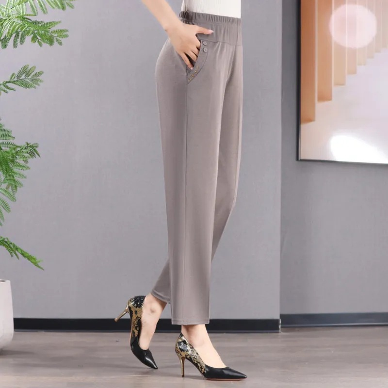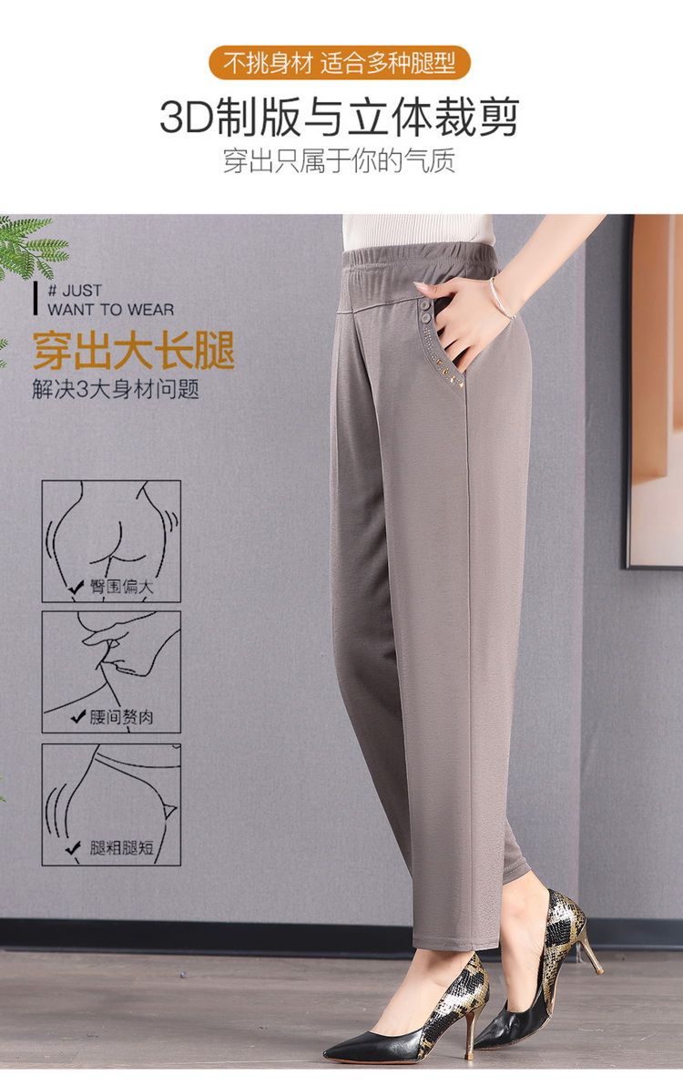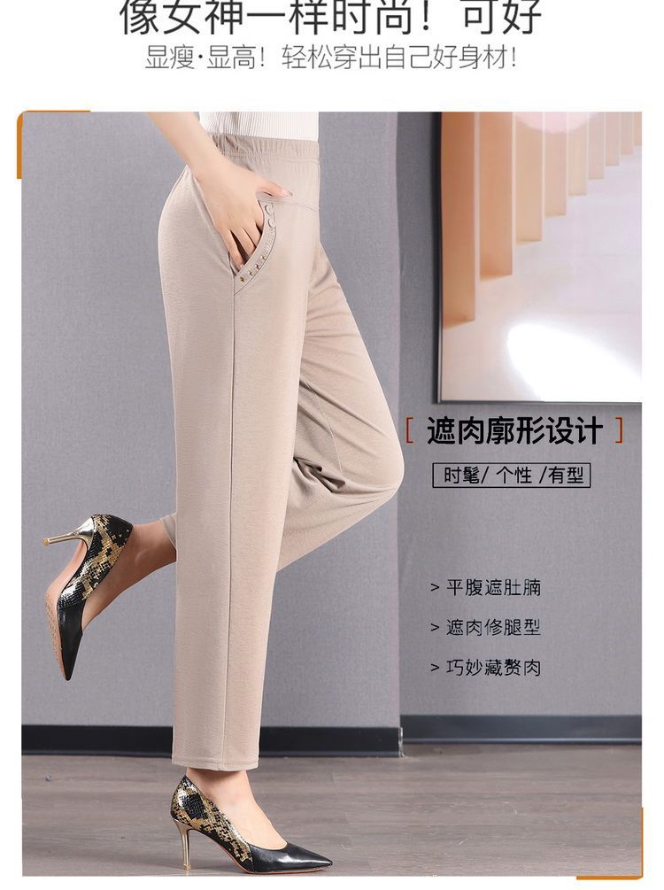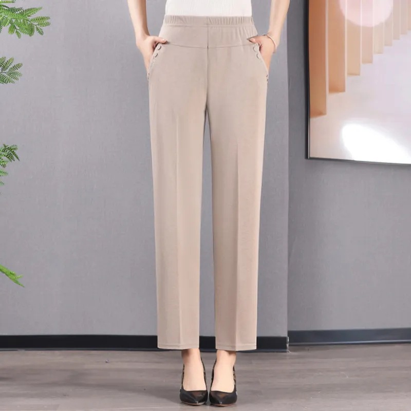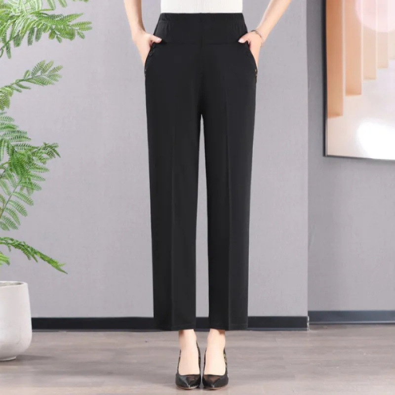 Летние тонкие ледяные шелковые брюки мамы эластичные брюки с высокой талией повседневные брюки свободные девятиочковые женские брюки среднего и пожилого возраста прямые брюки