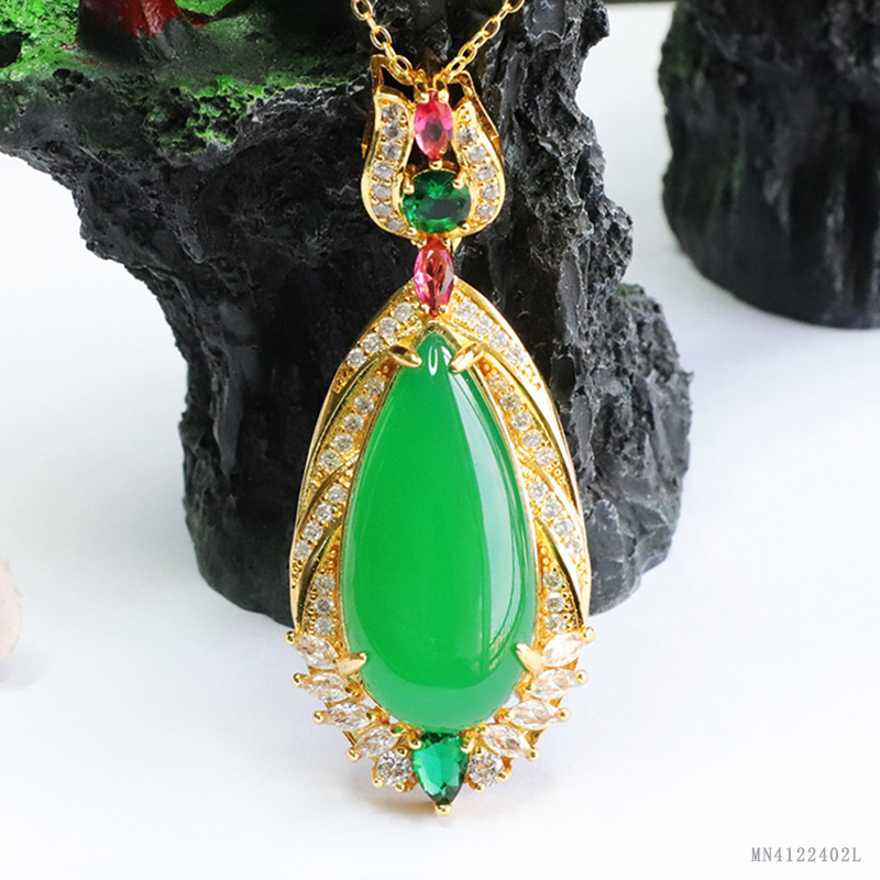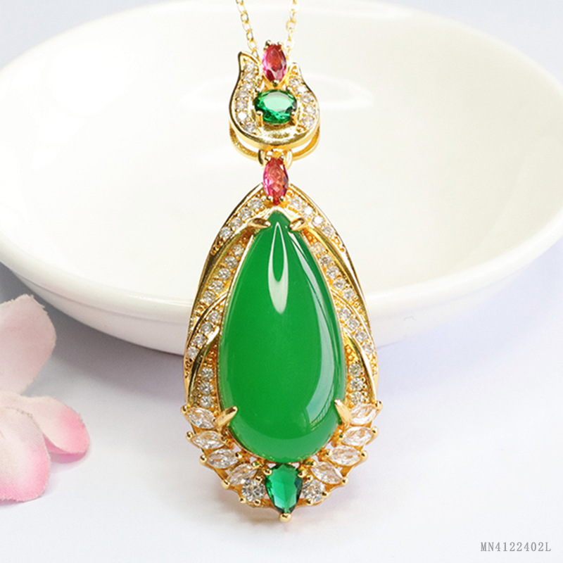 Император Синью зеленый халцедон капли воды зеленый агат ожерелье ювелирные изделия в прямом эфире оптовая продажа MN4122402L