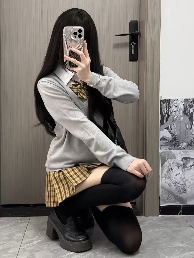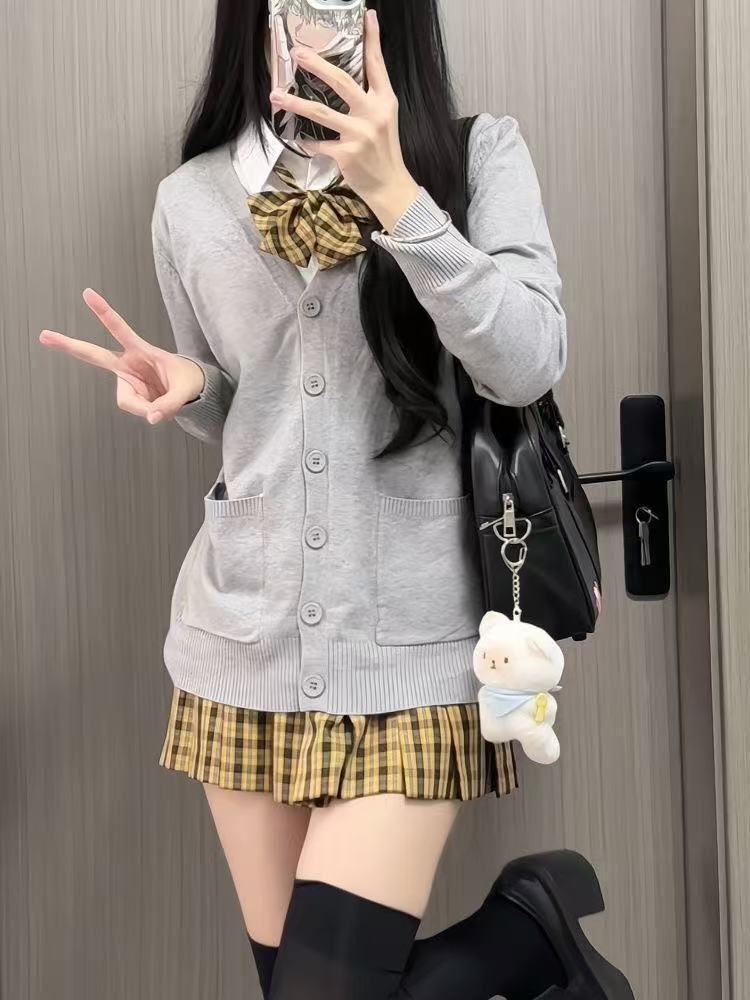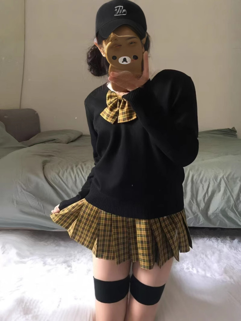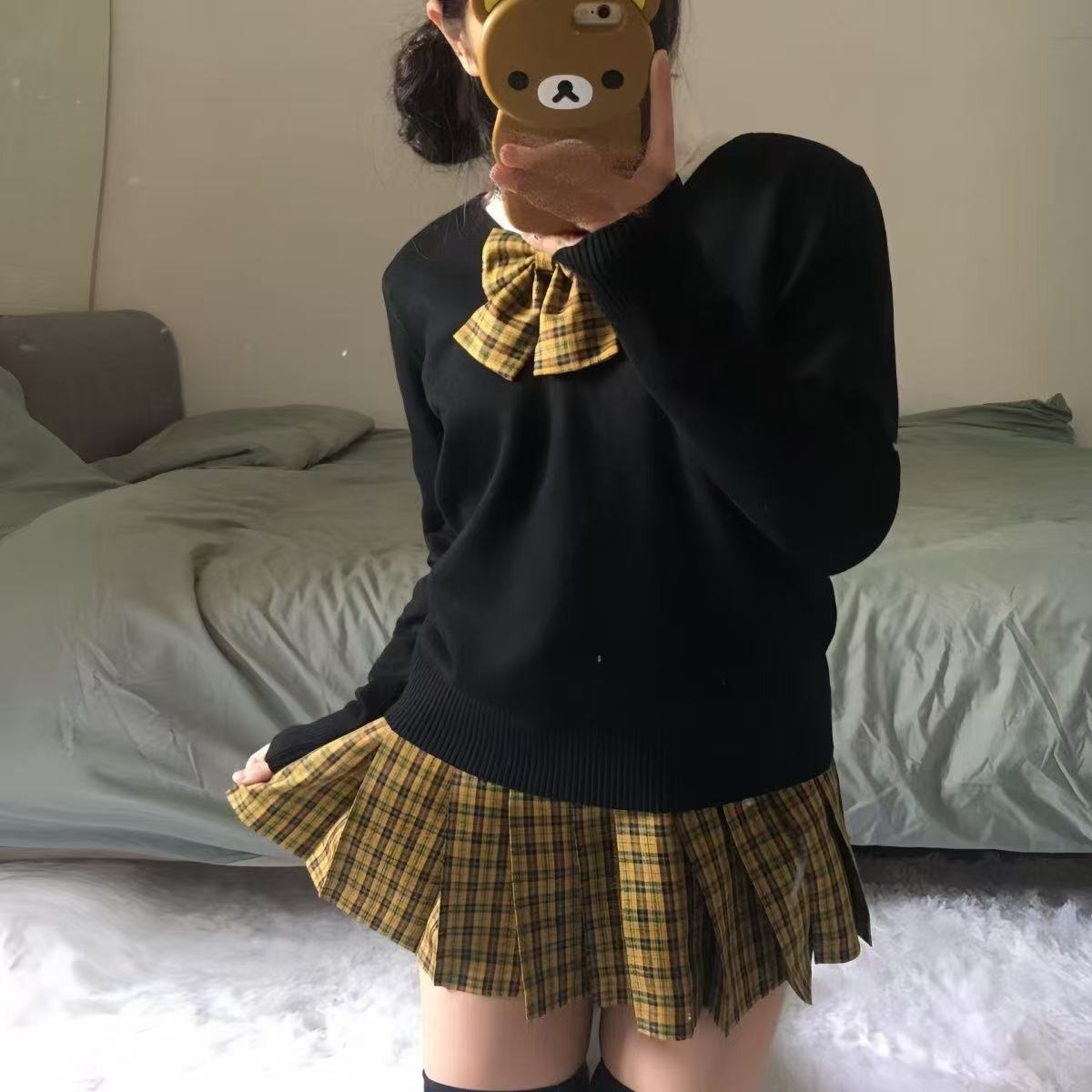 Школьное чувство Подсолнух Короткая юбка Оригинальная JK Униформа вязаный свитер