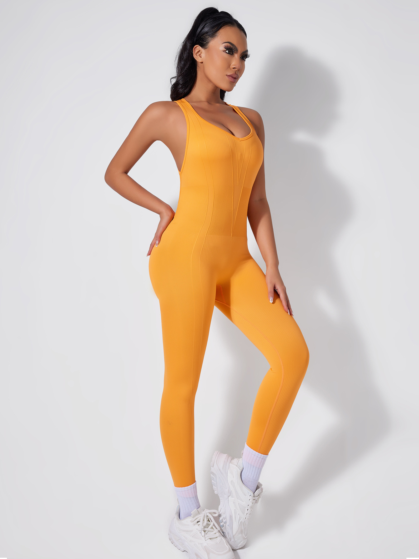 Кросс-спинка Йога комбинезон женский обтягивание V-образный вырез ягодицы быстросохнущий фитнес костюм бег спортивные комбинезоны