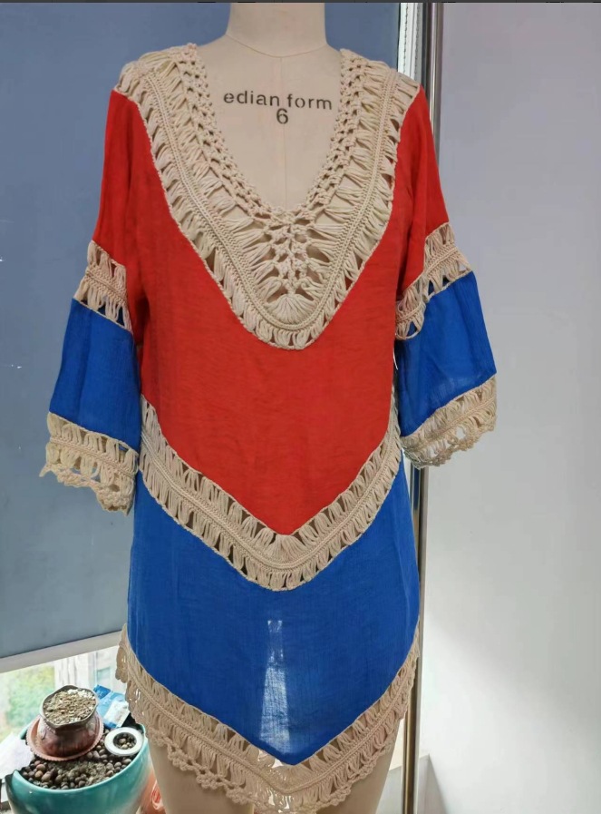 Пляжная юбка трансграничный 2024 новый Amazon Пляжная блузка с крючком с кисточкой купальник бикини