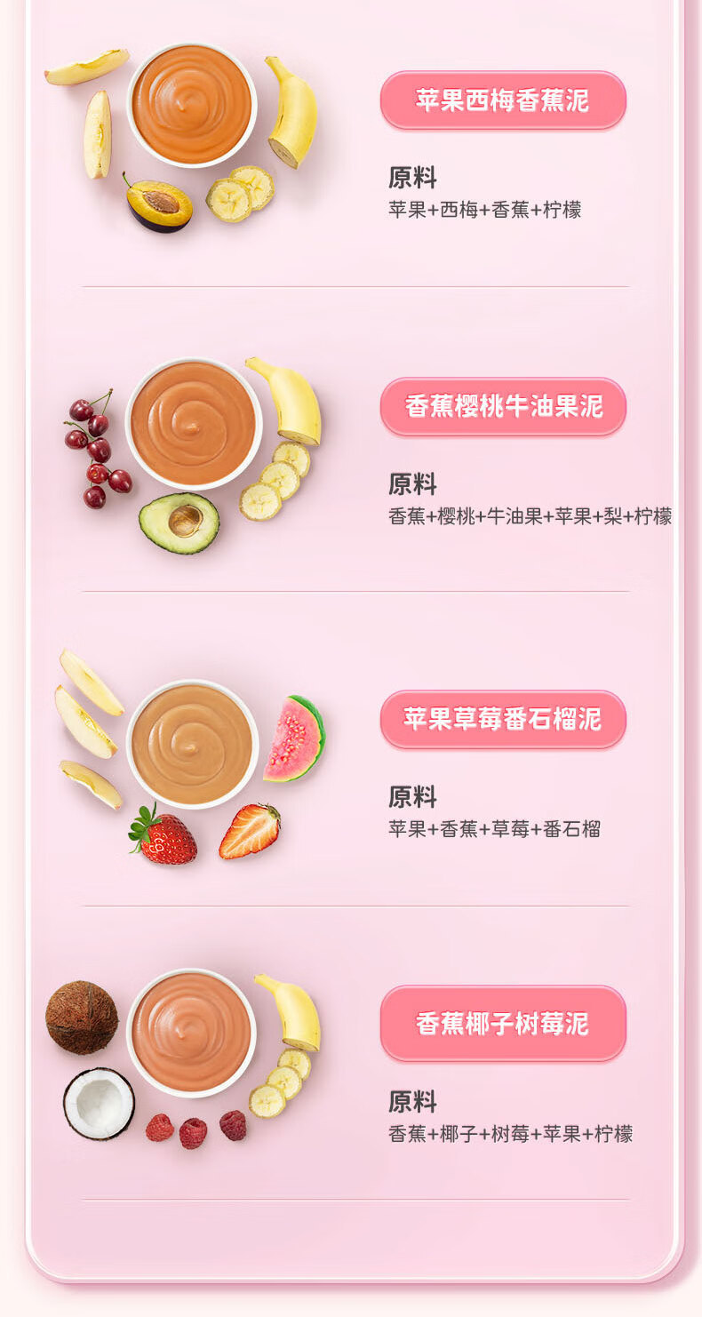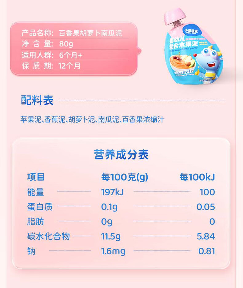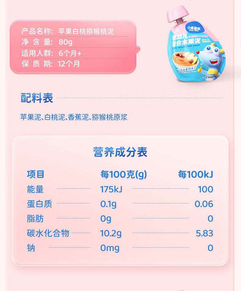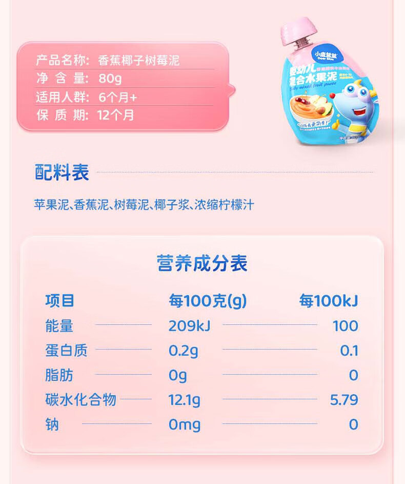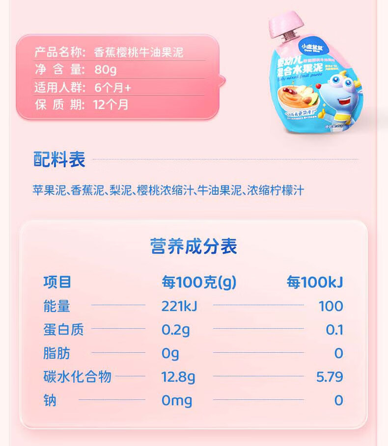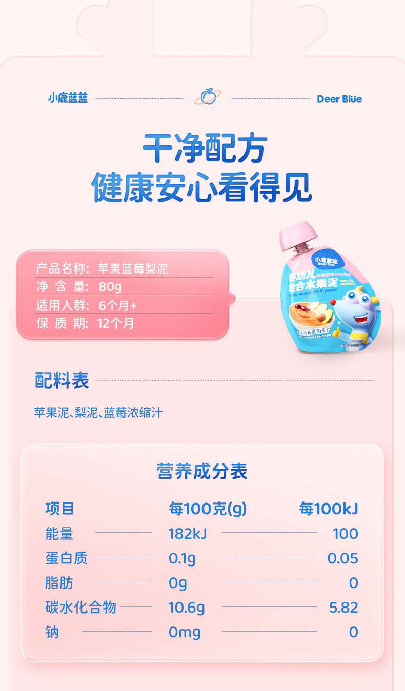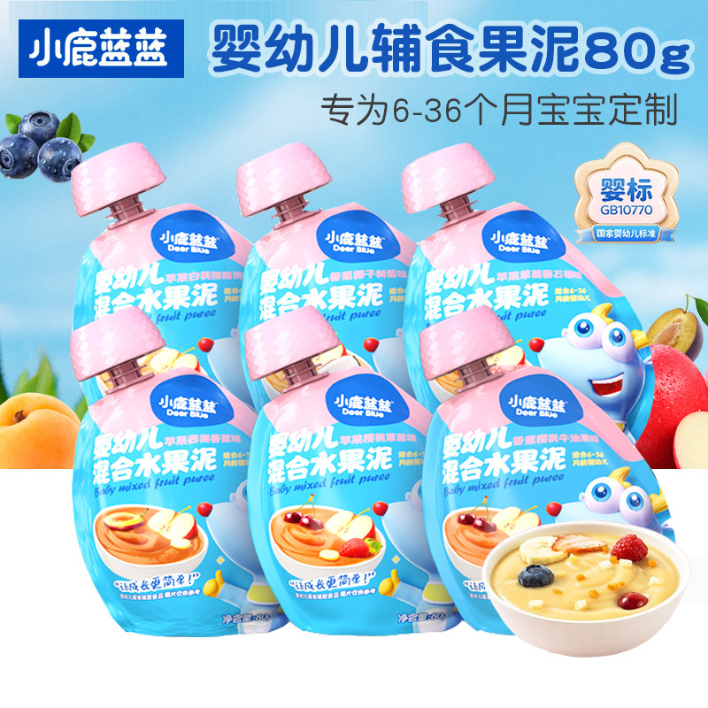 Яблочно-черничное пюре с черносливом, 108 г; Пюре из яблок, желтых персиков и черной смородины, 108 г; Маленький Олень Ланлан - Фруктовое пюре со вкусом яблока, вишни и клубники, 80 г; Маленький Олень Ланлан - Фруктовое пюре со вкусом яблока, чернослива и банана, 80 г; Маленький Олень Ланлан - Пюре из яблок, черники и груш, 80 г; Маленький Олень Ланлан - Фруктовое пюре из банана, кокоса и малины, 80 г