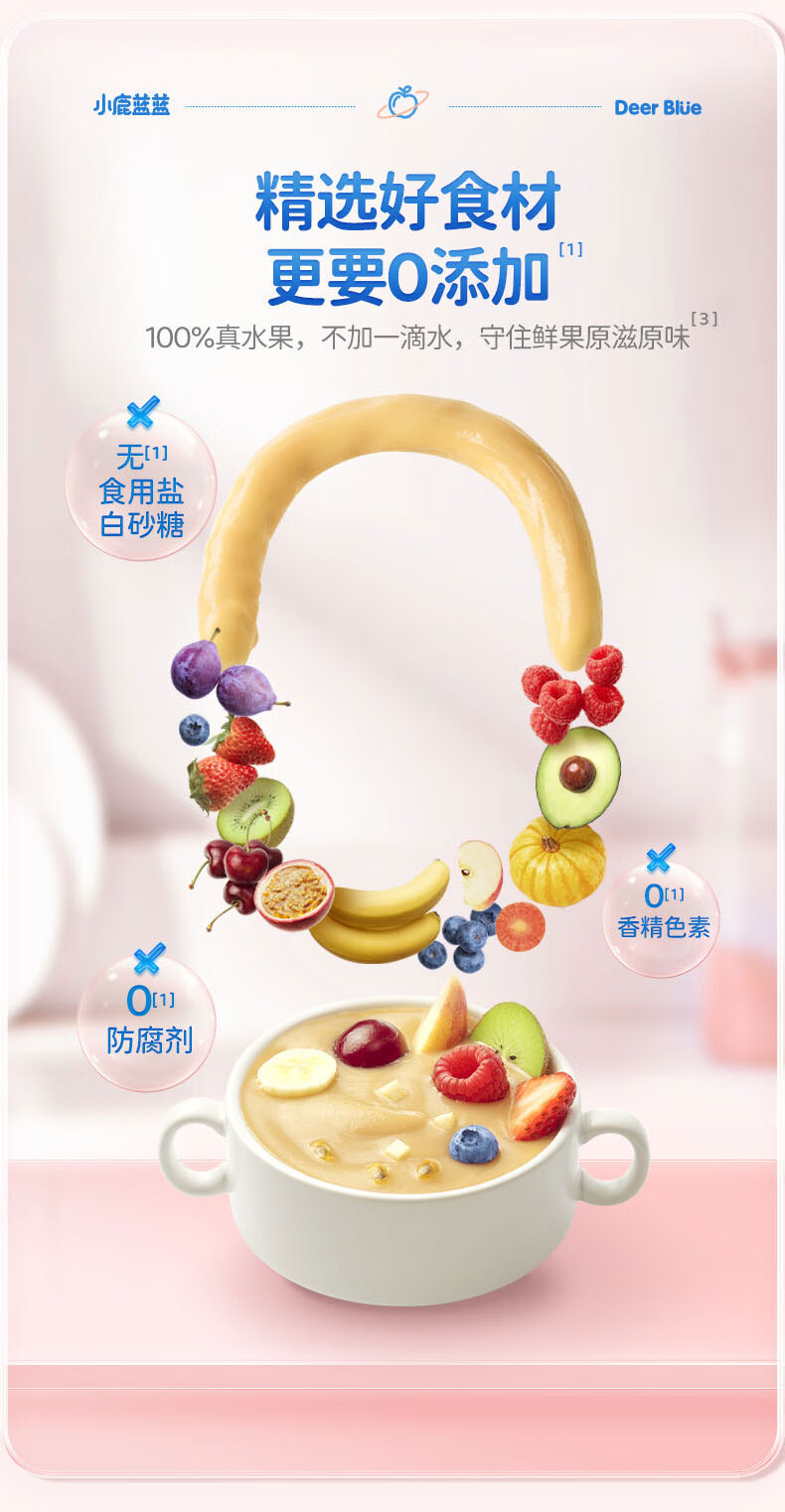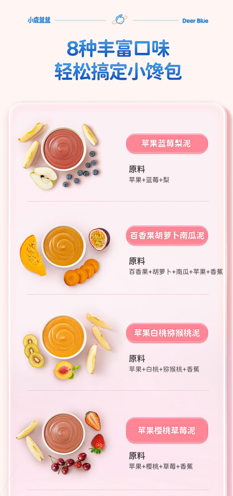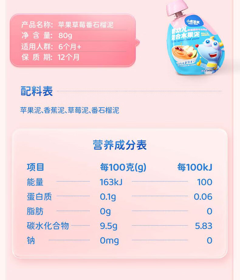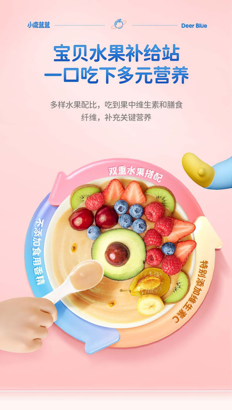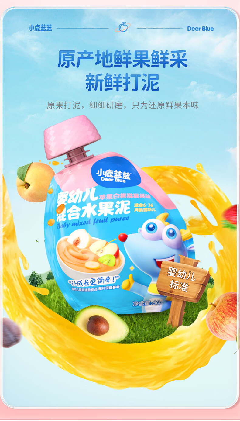 Детское фруктовое пюре Little Deer: яблоко, банан, витамин С, клубника, черника, чернослив. Детское ассорти пюре.