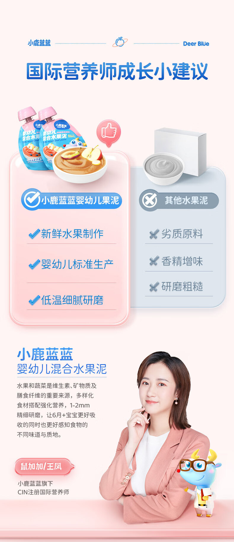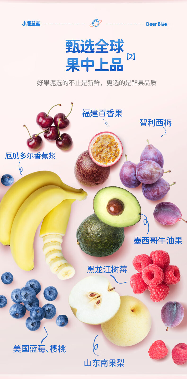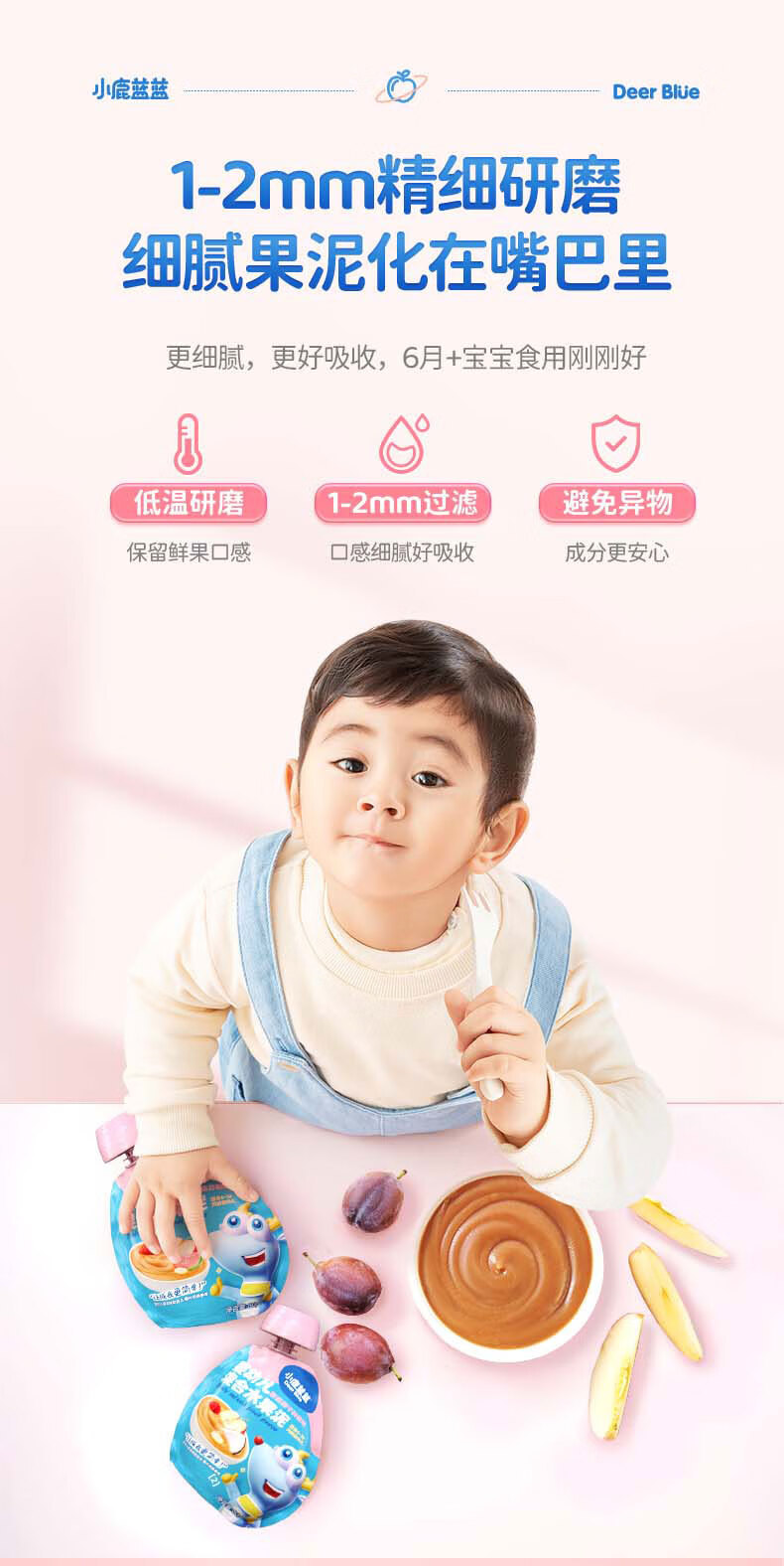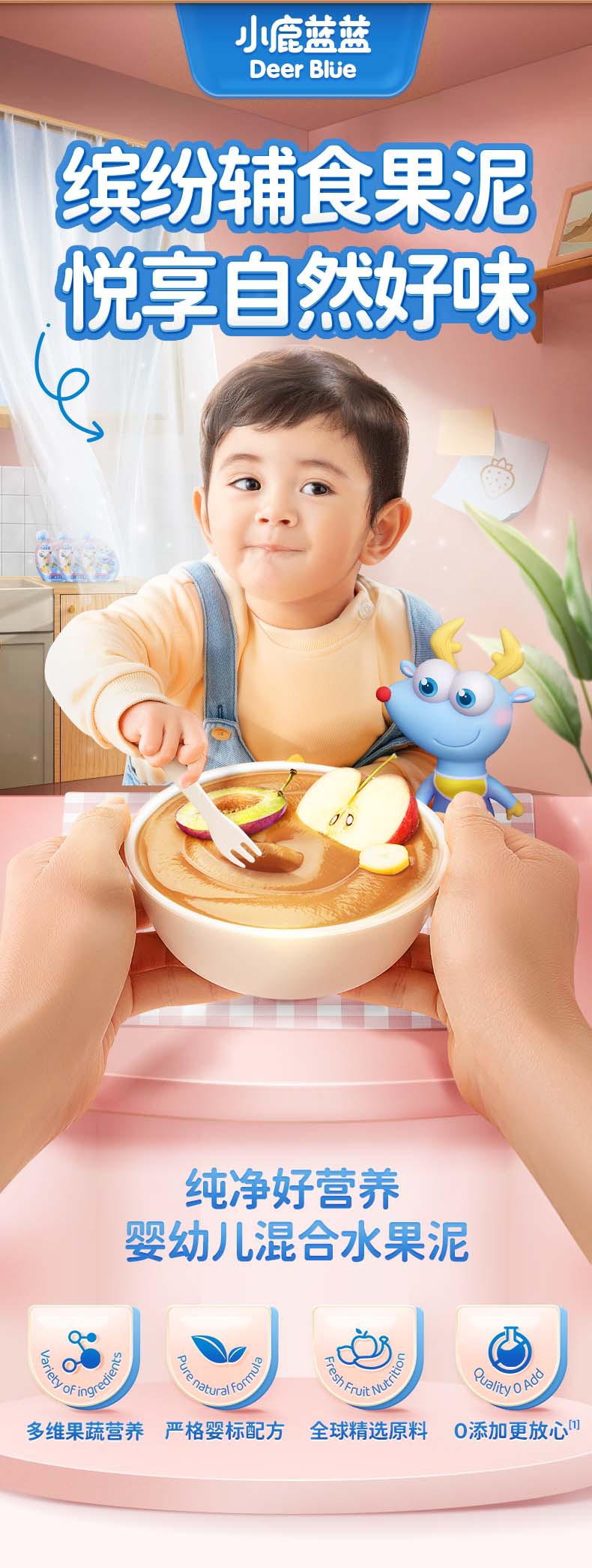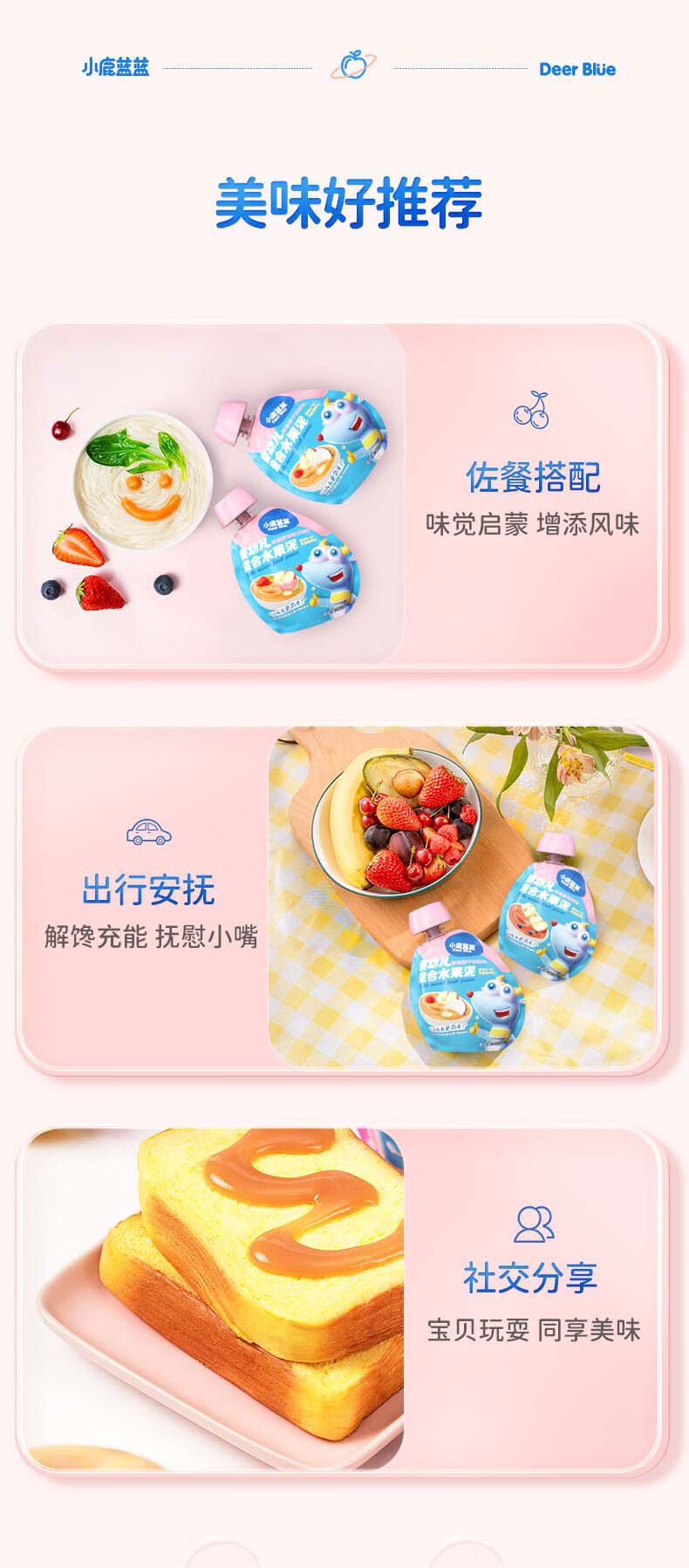 Детское фруктовое пюре Little Deer: яблоко, банан, витамин С, клубника, черника, чернослив. Детское ассорти пюре.