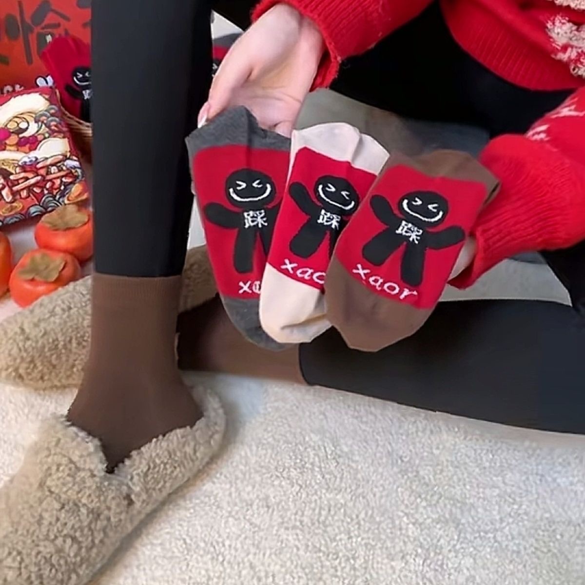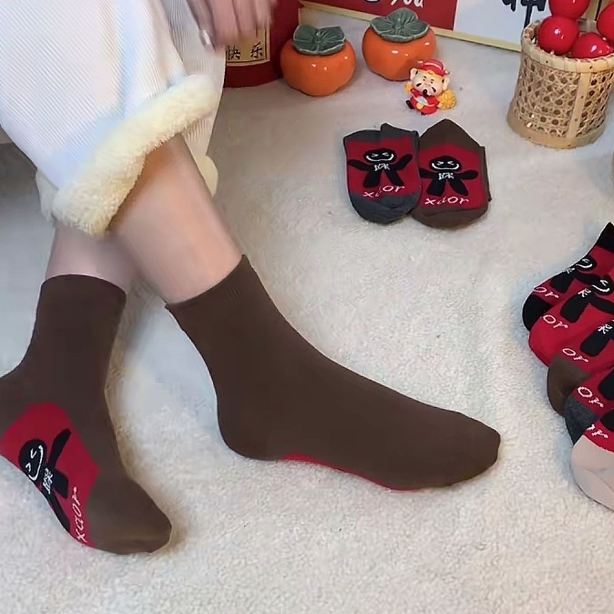 Новогодние осенние и зимние красные носки для мужчин и женщин