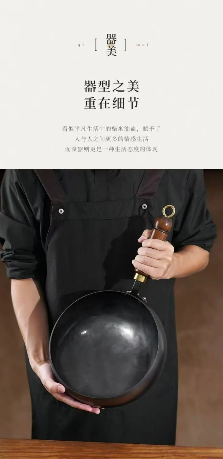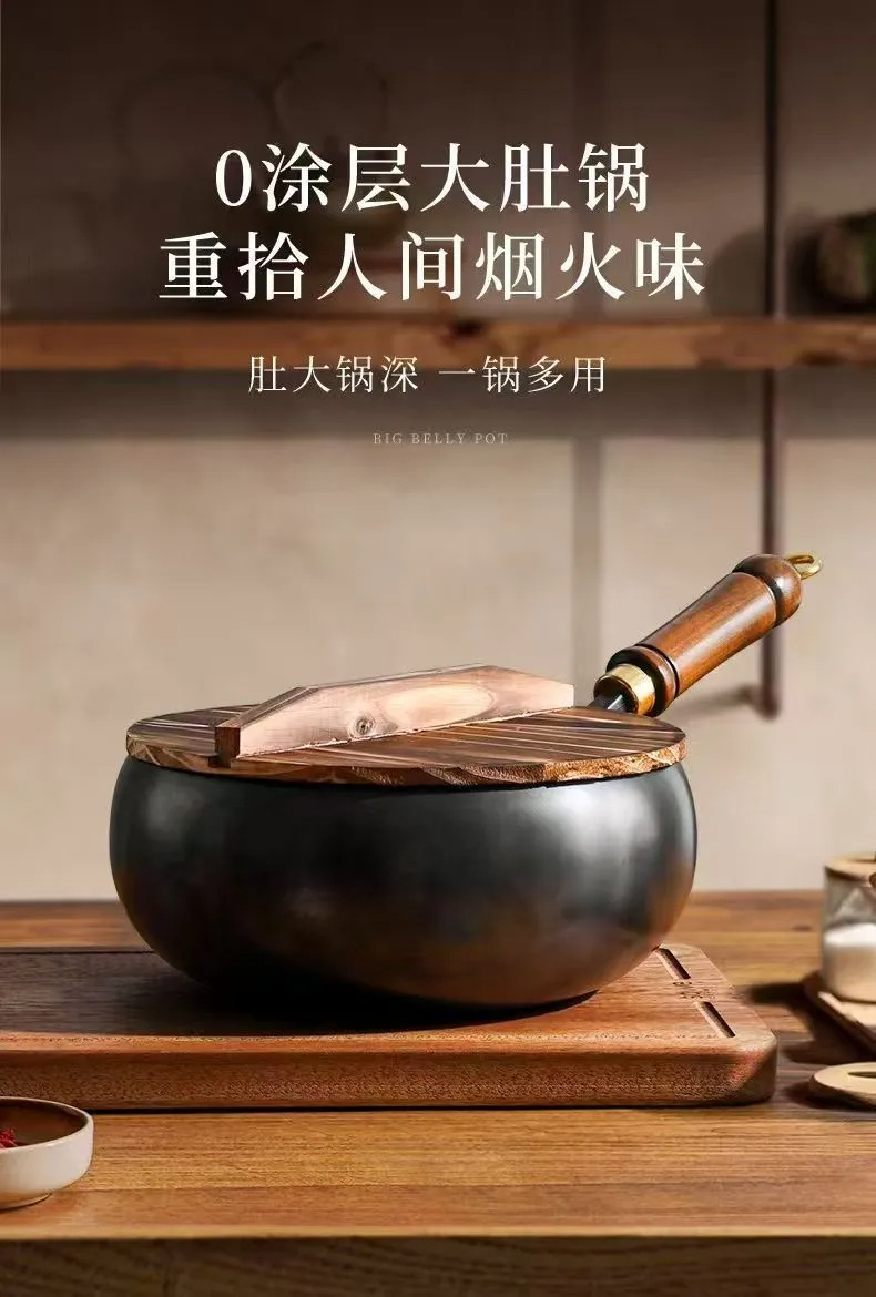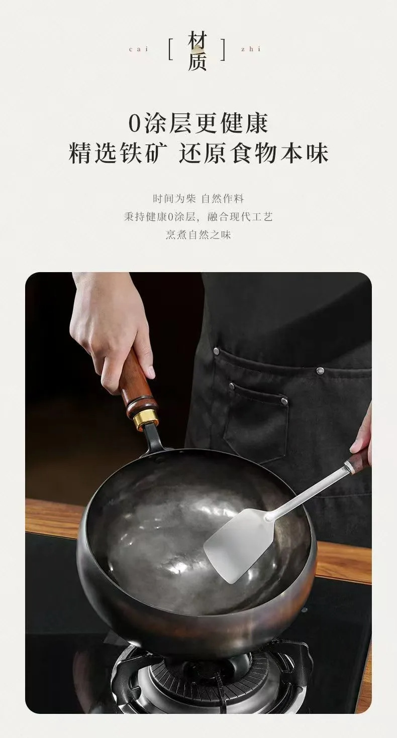 Традиционная деревянная ручка, плоское дно, вок из чугуна Zhangqiu с антипригарным покрытием, маленькая сковорода без покрытия для домашнего использования, подходит для индукционных плит.