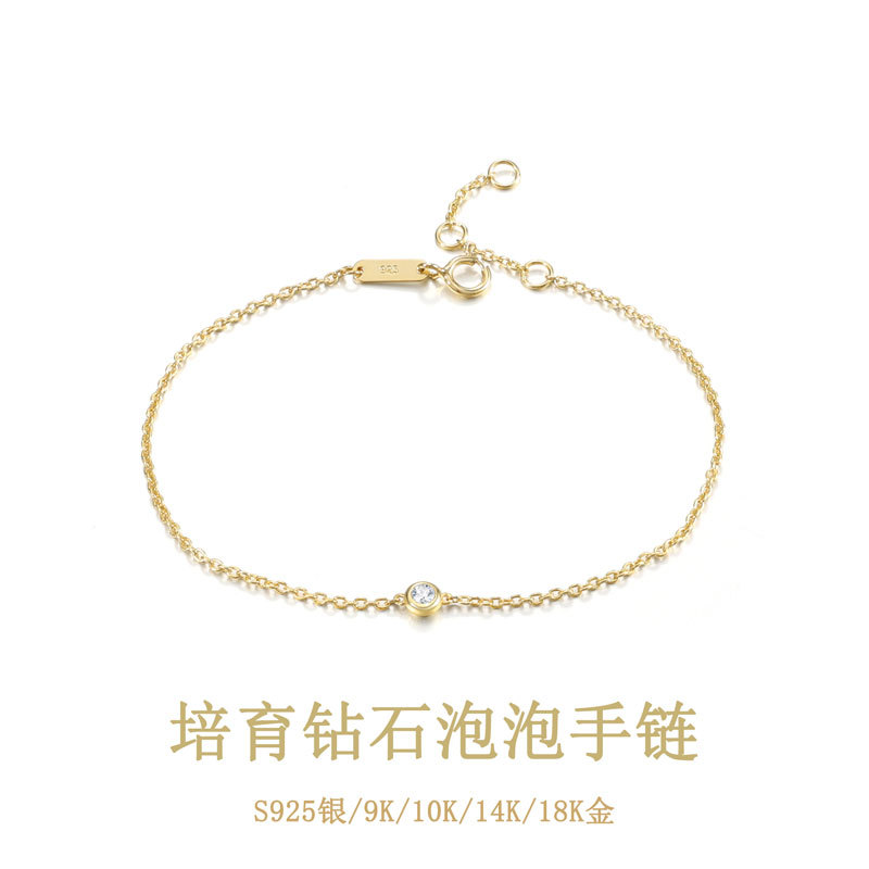 S925 стерлингового серебра позолоченный бриллиантовый браслет женский модный пригородный дикий браслет с одним бриллиантом пузырь браслет завод оптом