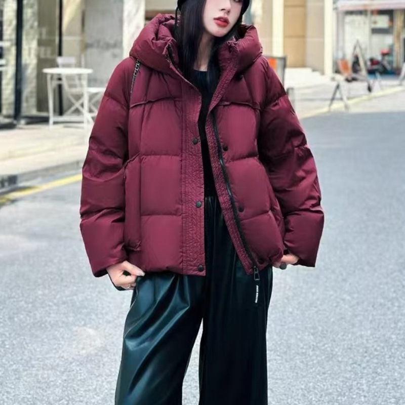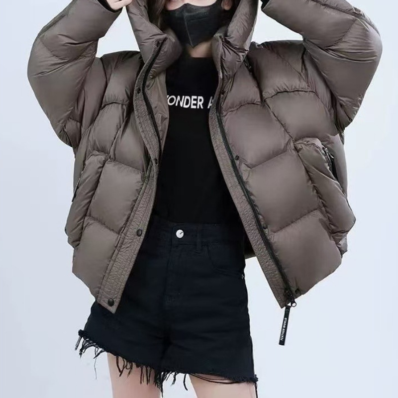 Графен 2024 новый модный дикий слоеный короткий с капюшоном белый утка пуховик куртка
