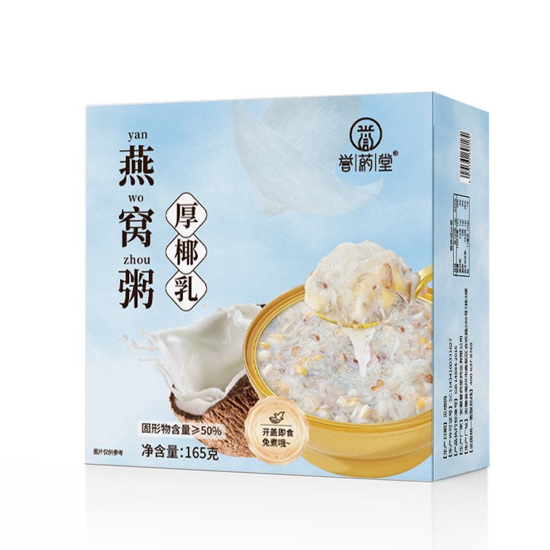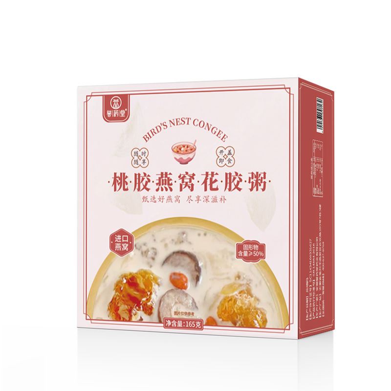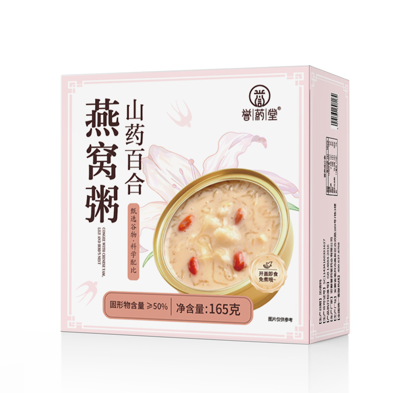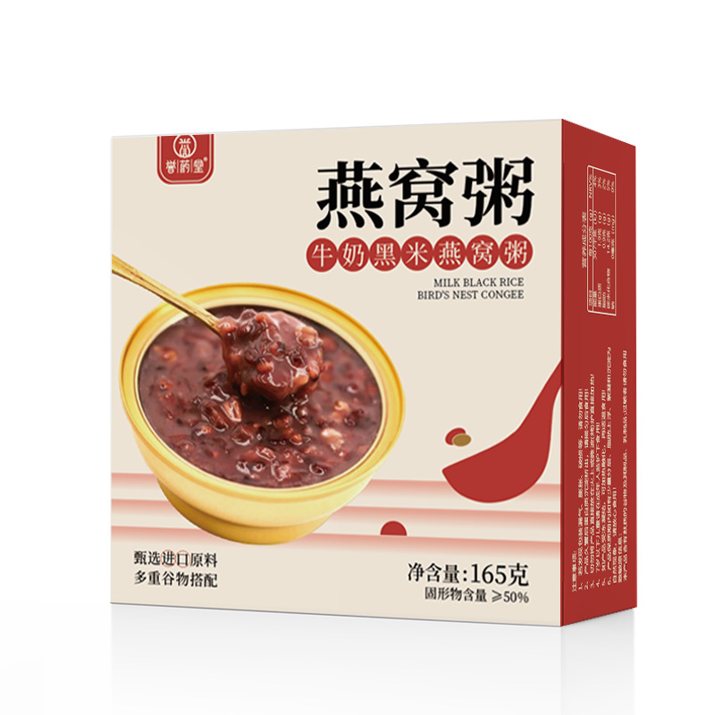 Суп из тополя и рыбы с нектаром (165 г/миска с коробкой и ложкой); Молочная каша с черным рисом и птичьим гнездом (165 г/миска с коробкой и ложкой); Женьшень, желатин из осёловой кожи и ласточкин хлоб (165 г/миска с коробкой и ложкой); Пять порций черной птичьей гнездовой каши (165 г/миска с коробкой и ложкой); Пищевая желейная кашица «Птичье гнездо» с персиковой резинкой (165 г/миска с коробкой и ложкой); Каша из рыбы и киноа с красной датскойд; Суп из красной фасоли, ячменя и гортензии с влажностью (165 г/миска с коробкой и ложкой); Каша из ямсовых корней, луковицы лилии и птичьего гнезда (165 г/миска, включает коробку и ложку); Густая кокосовая каша с птичьим гнездом (165 г/миска с коробкой и ложкой); Мандариновая цедра, лотосовые семена и паста из красной фасоли (165 г/миска с коробкой и ложкой); Паста из семян лотоса, лилии и маша (165 г/миска с коробкой и ложкой); Суп из астрагала и семи белых грибов (165 г/миска с коробкой и ложкой)