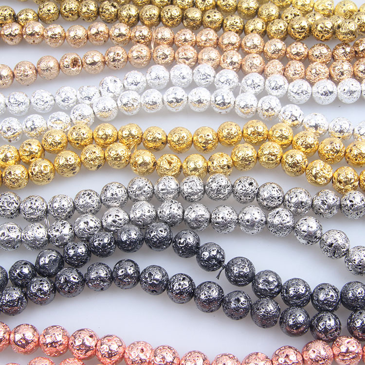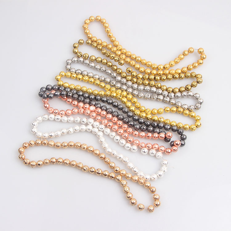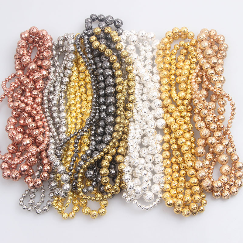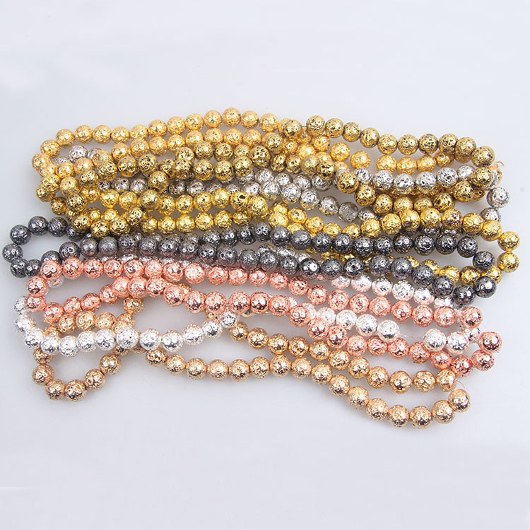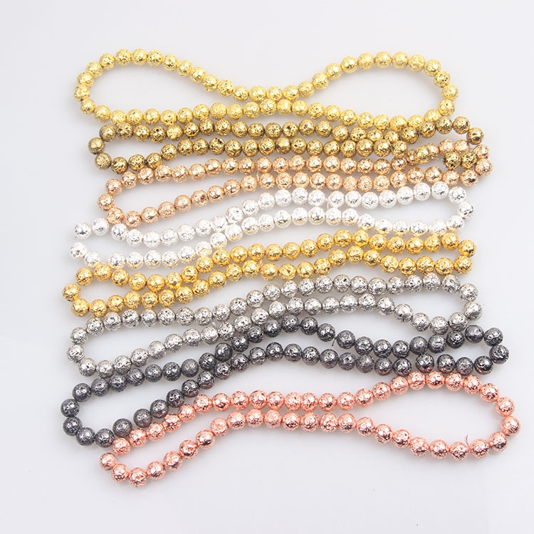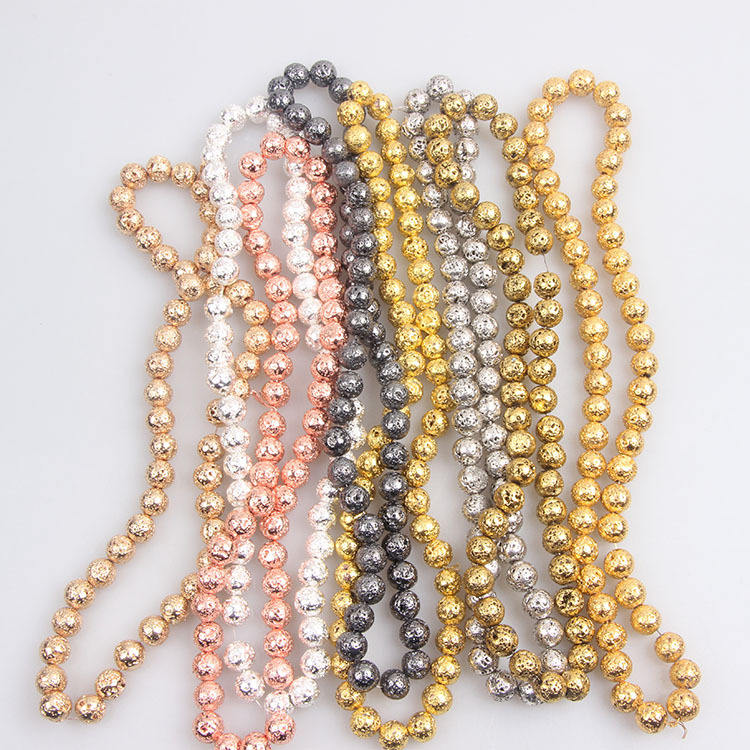 Оптовая продажа украшения из розового бисера браслет из бисера гальваническое покрытие 8 цветов вулканический камень метеорит бусы лунный DIY ожерелье ручной работы