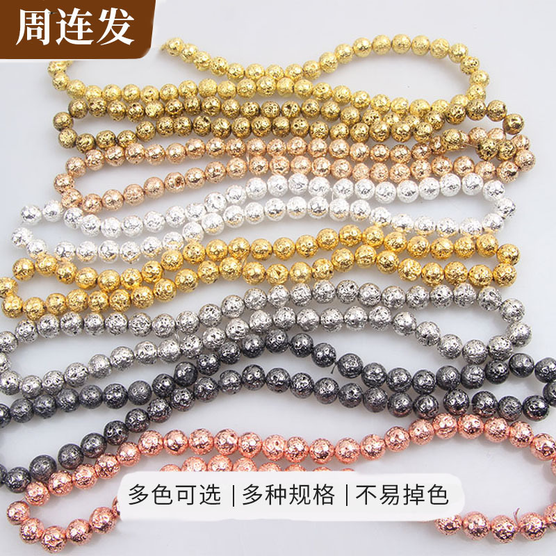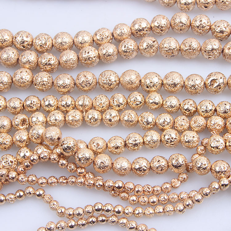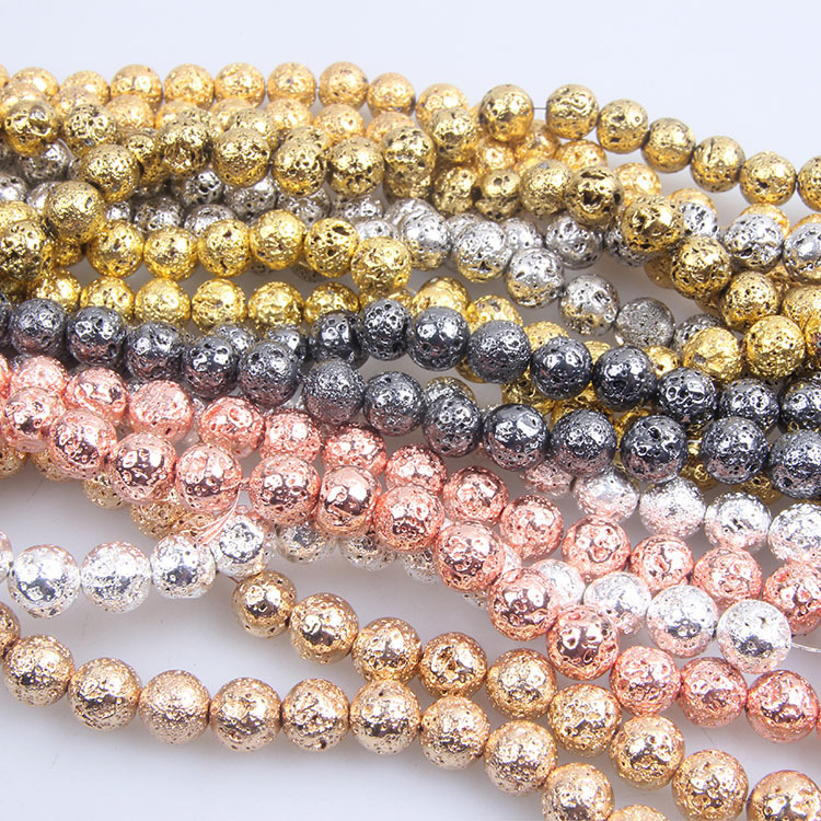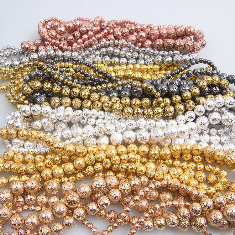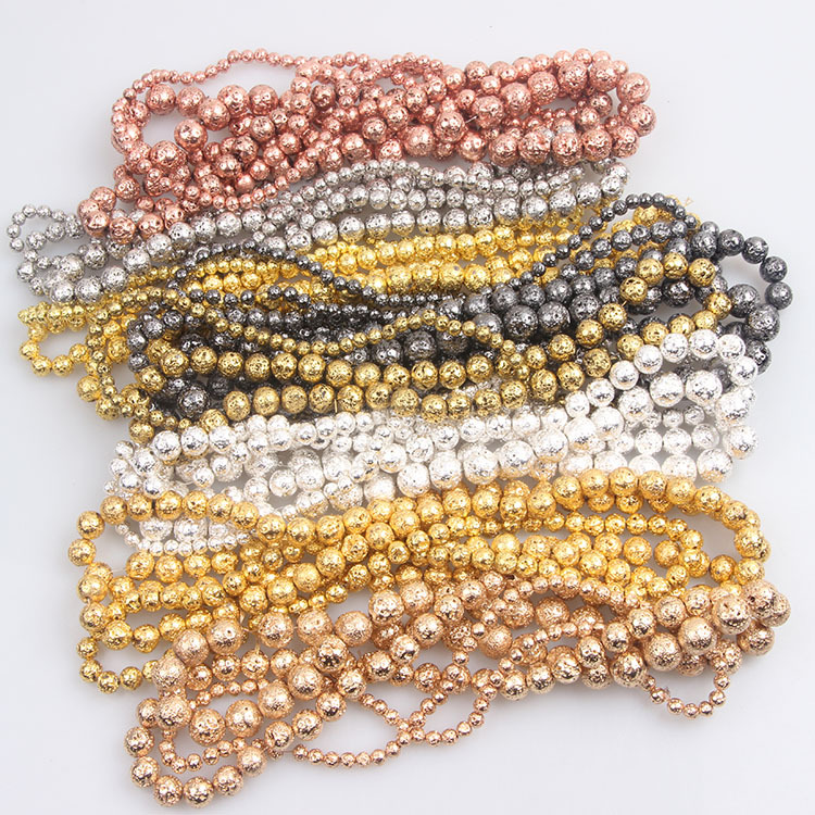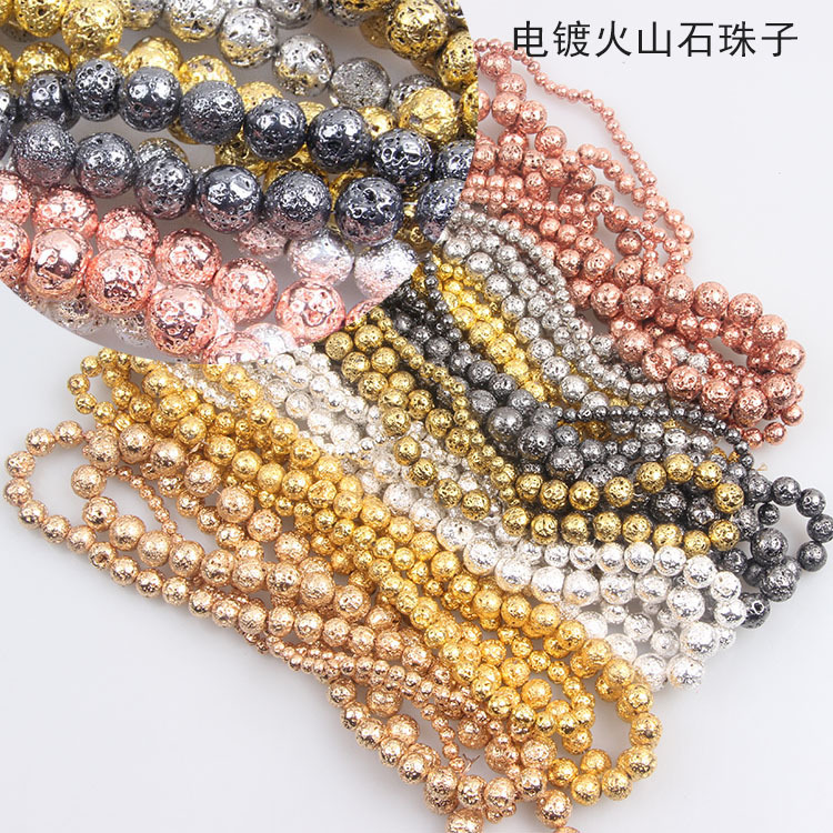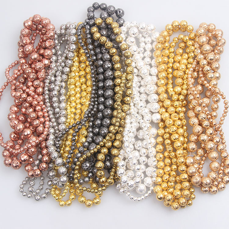 Оптовая продажа украшения из розового бисера браслет из бисера гальваническое покрытие 8 цветов вулканический камень метеорит бусы лунный DIY ожерелье ручной работы