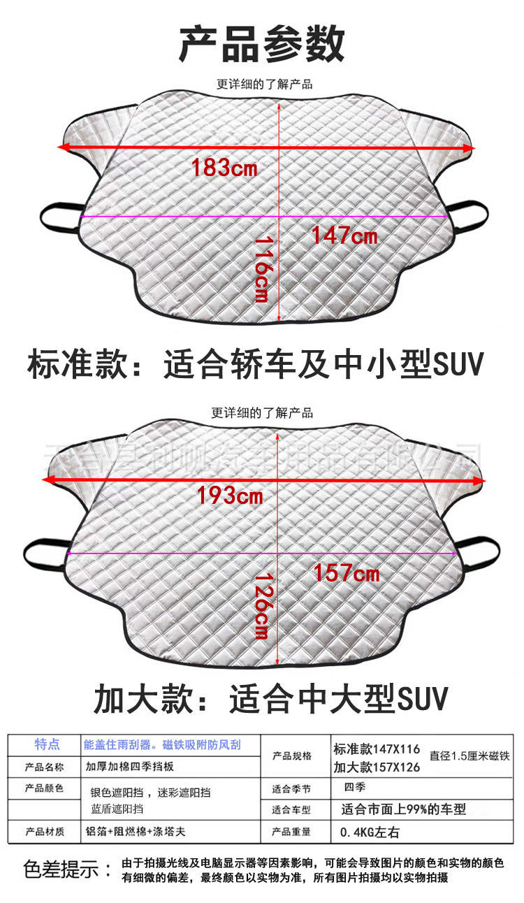 Автомобильный снежный чехол, зимний утолщенный магнитный антифризный снегозащитный щиток, автомобильный солнцезащитный козырек, защита от солнца, снежный чехол для автомобиля.
