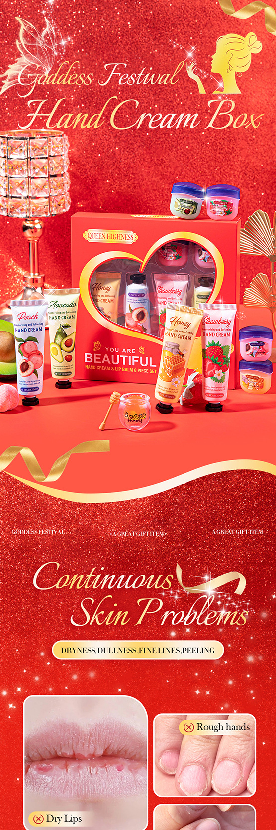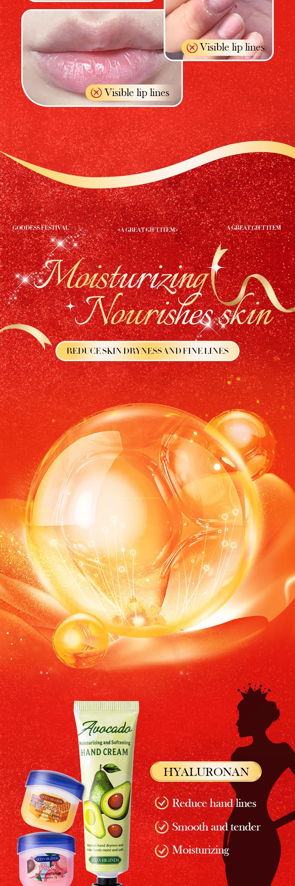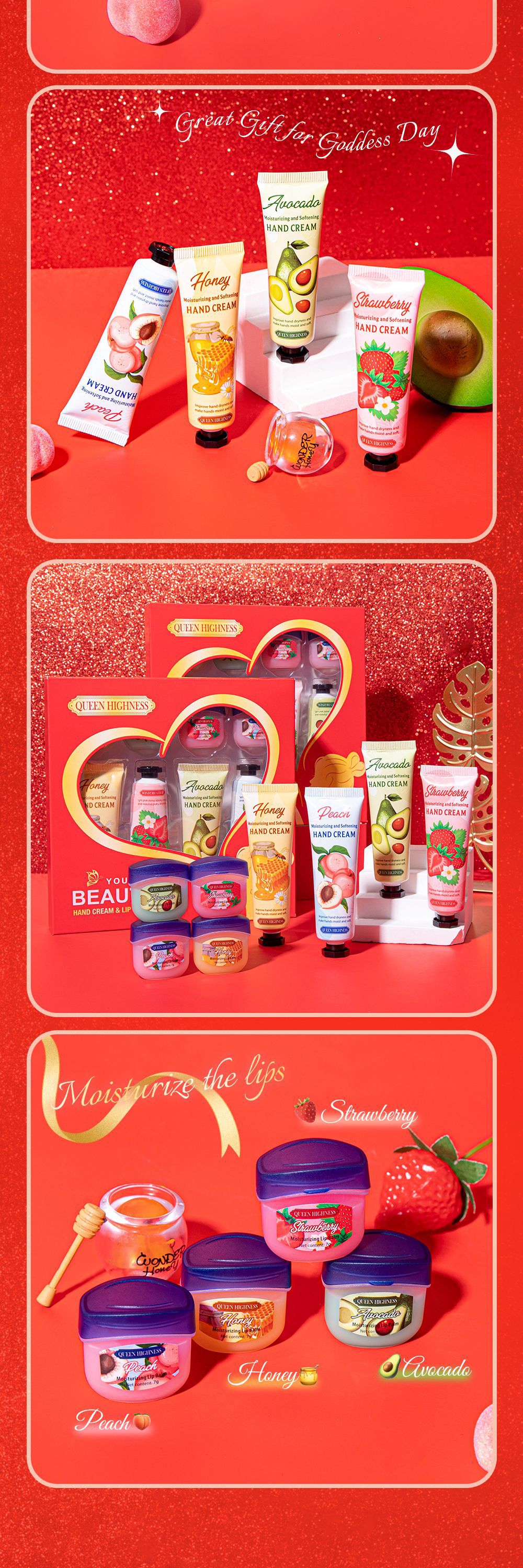 Набор из 8 масок для губ и крема для рук QUENN HIGHNESS