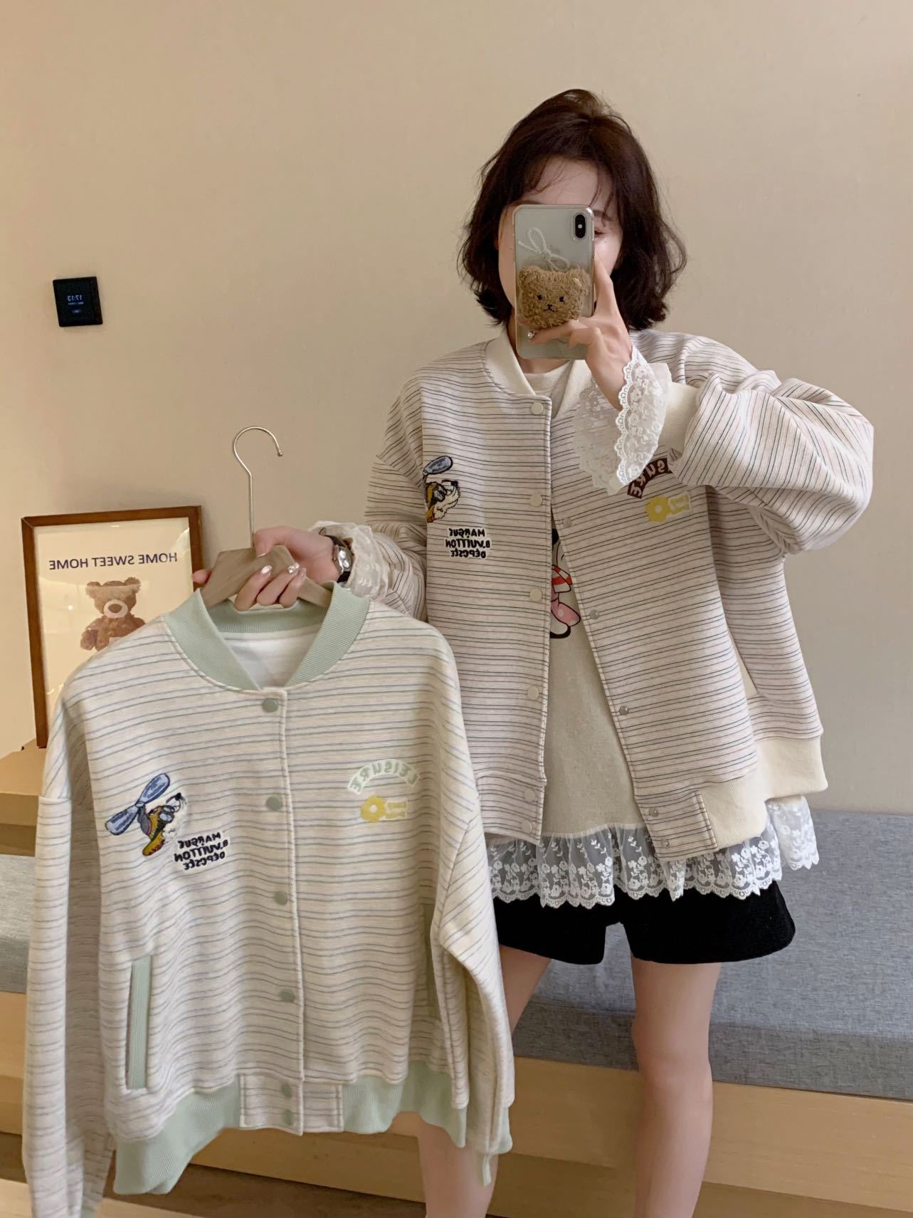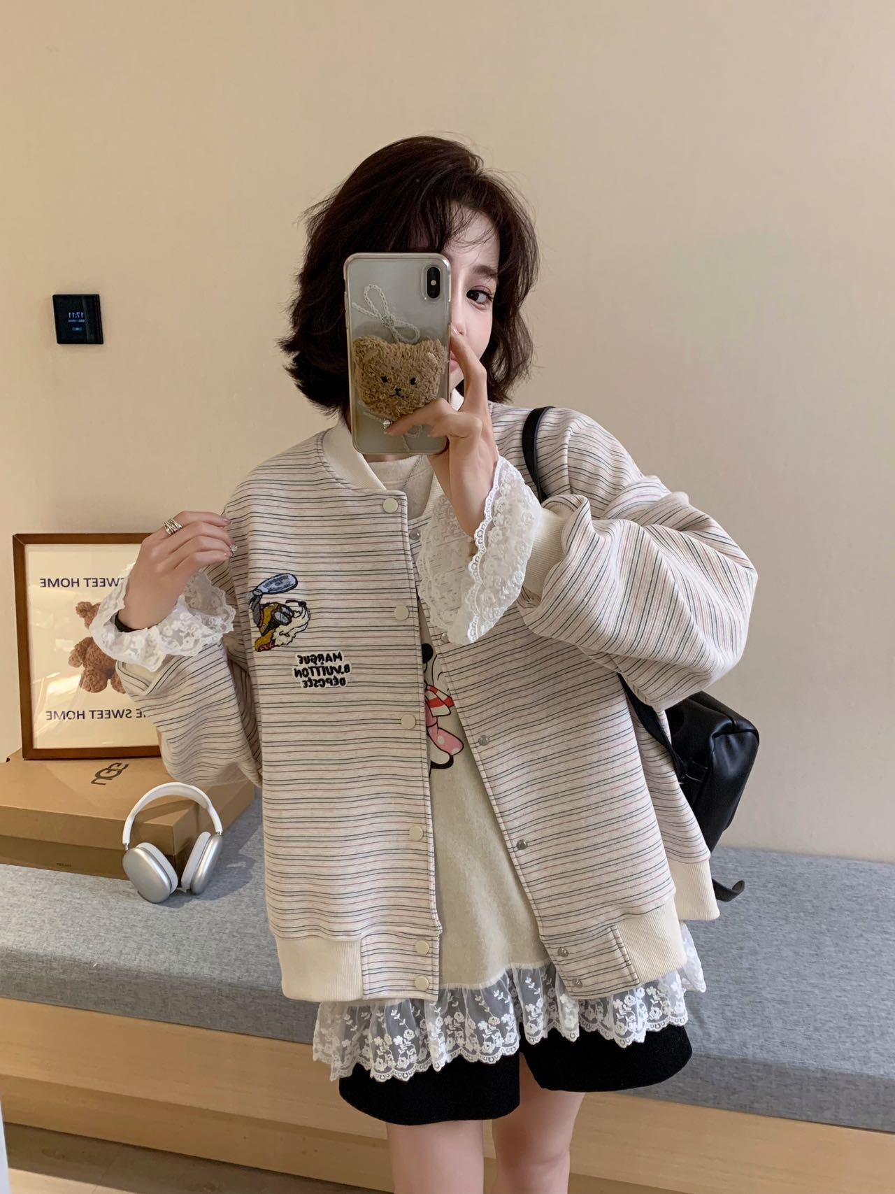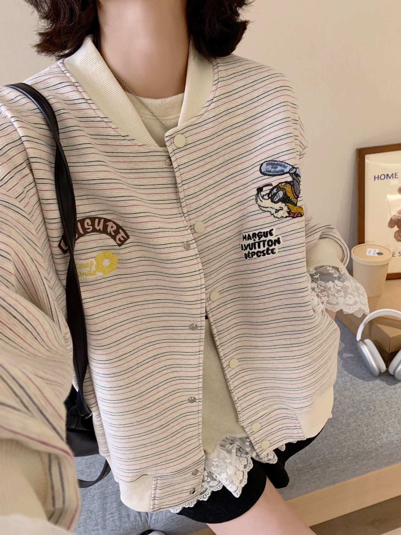 Полосатый бейсбольный костюм куртка женский весенний и осенний тонкий 2025 новый свободный корейский дизайн чувство цветного пиджака кардиган