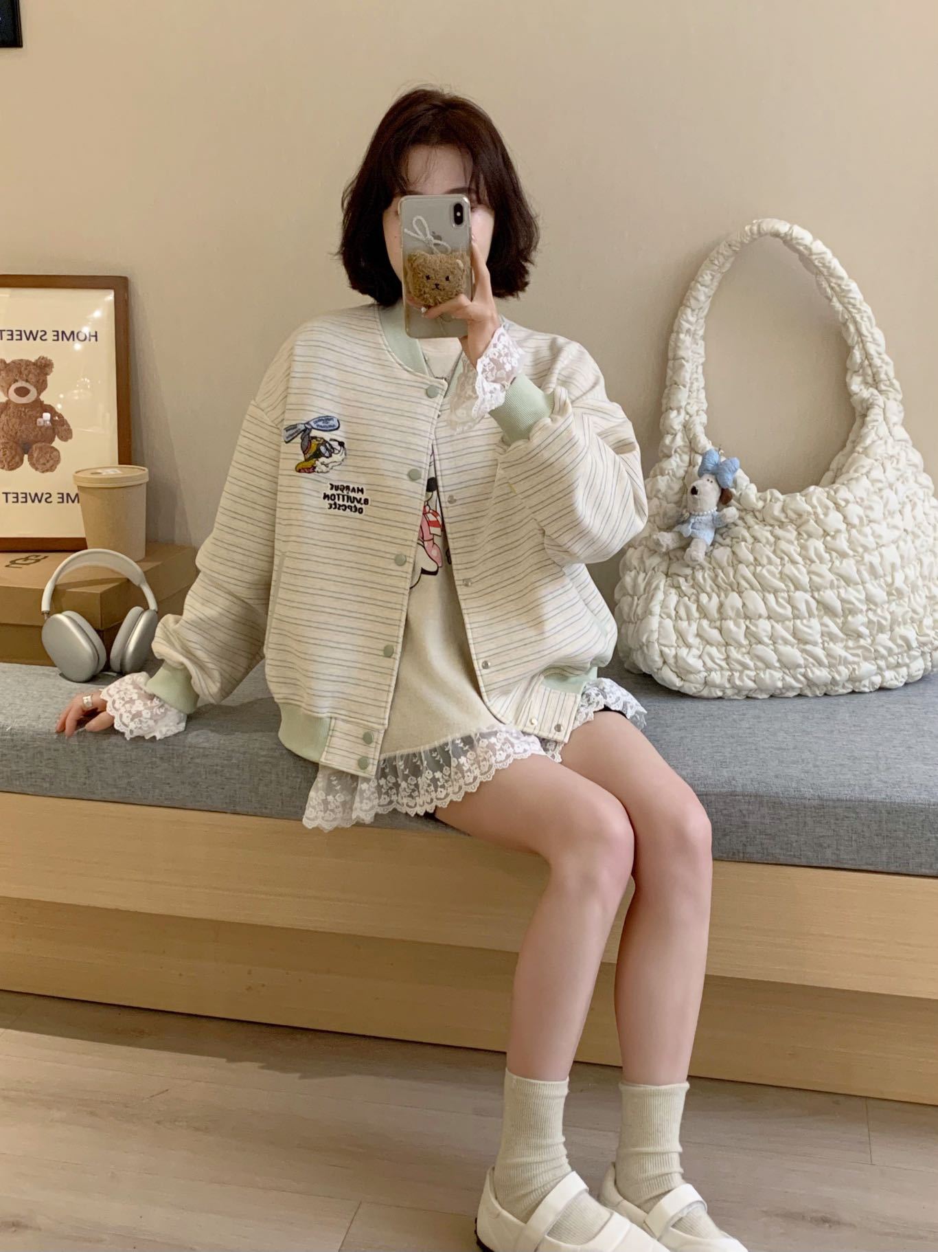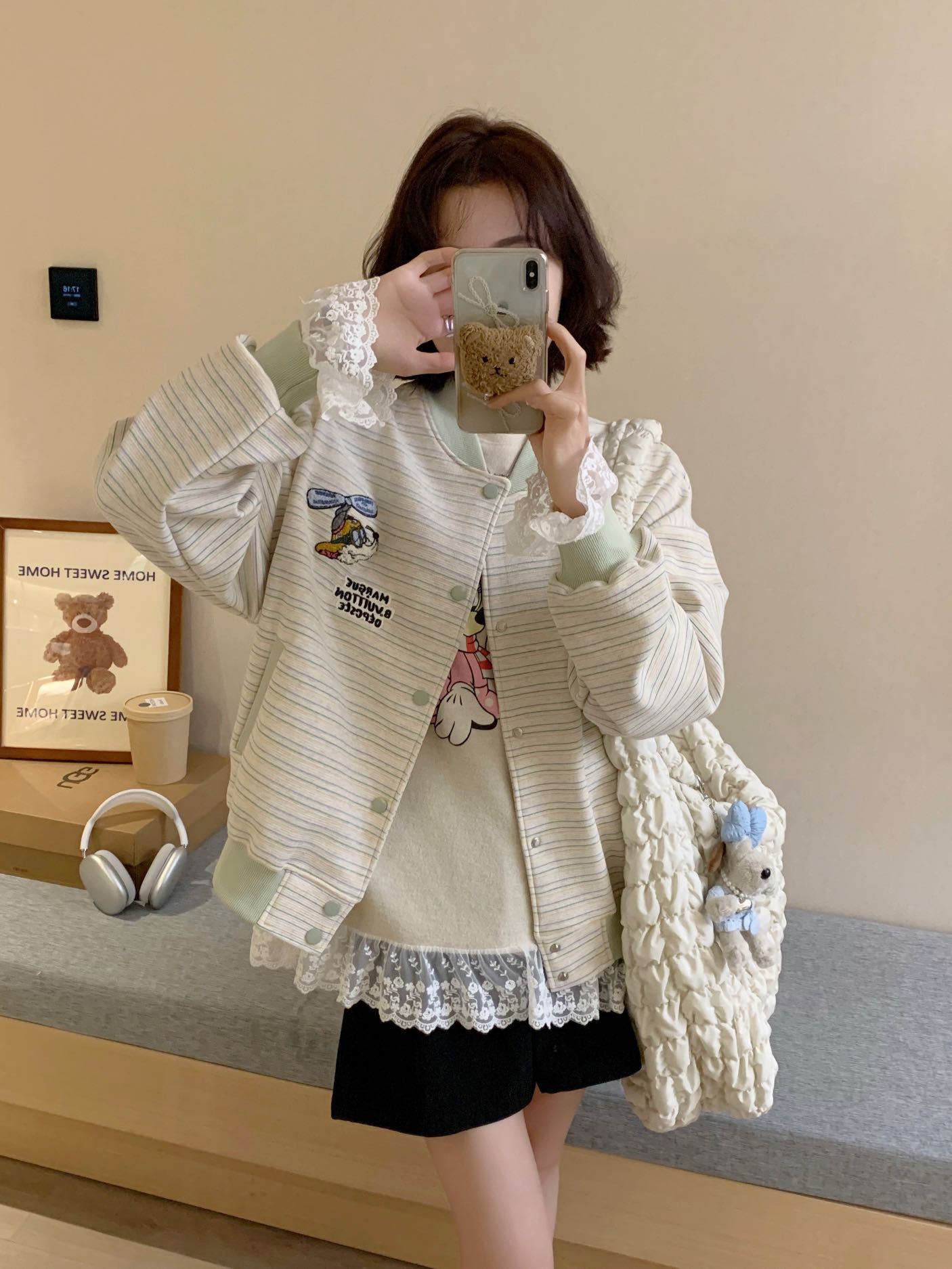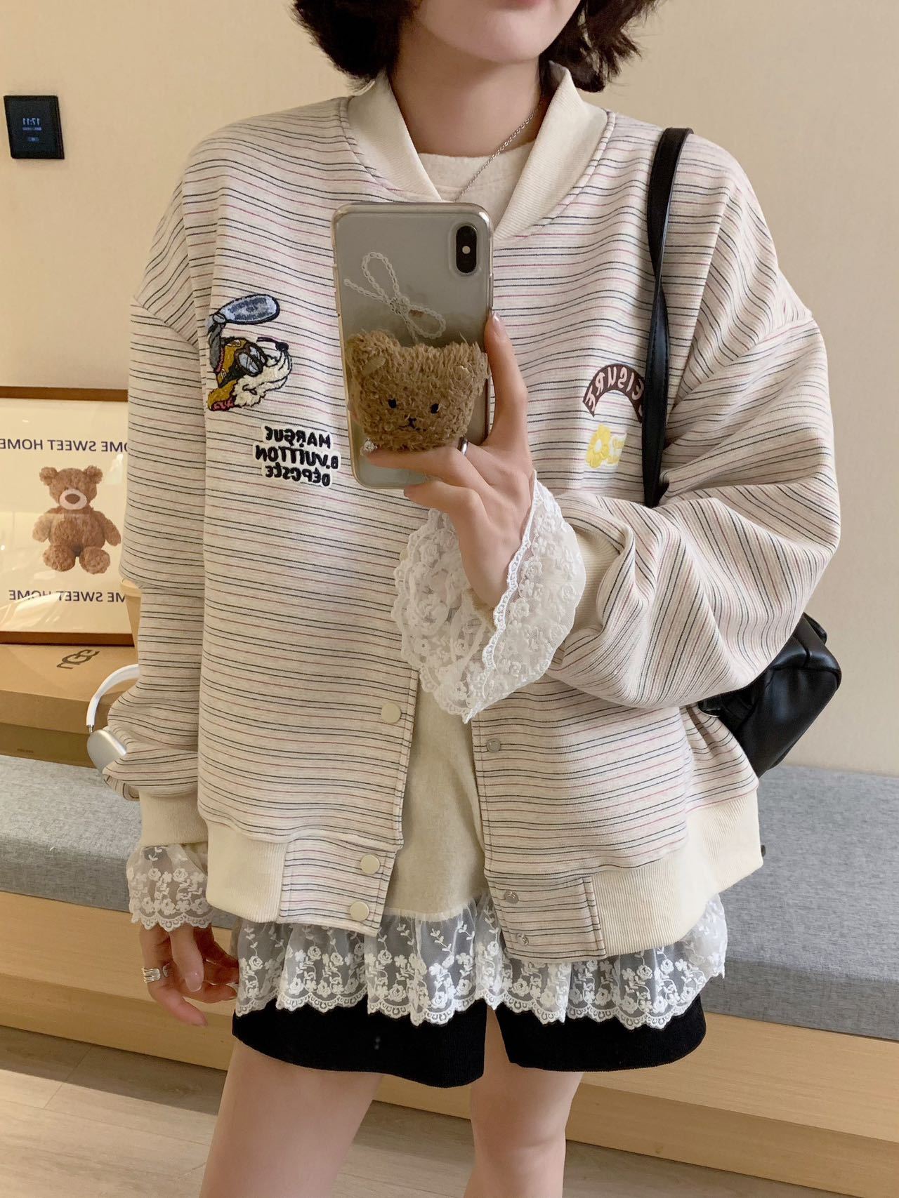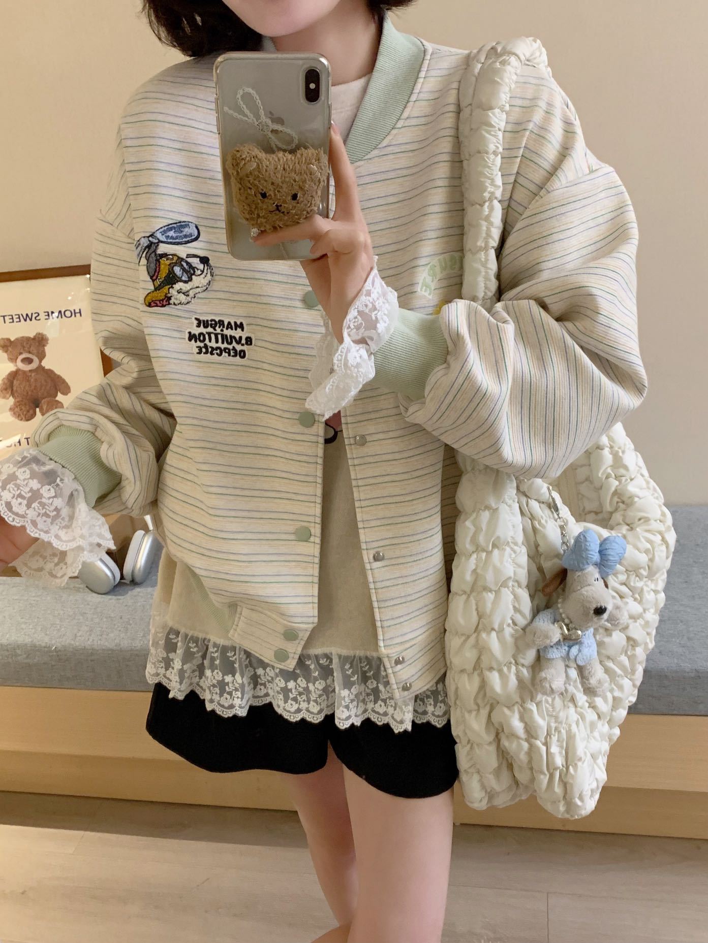 Полосатый бейсбольный костюм куртка женский весенний и осенний тонкий 2025 новый свободный корейский дизайн чувство цветного пиджака кардиган