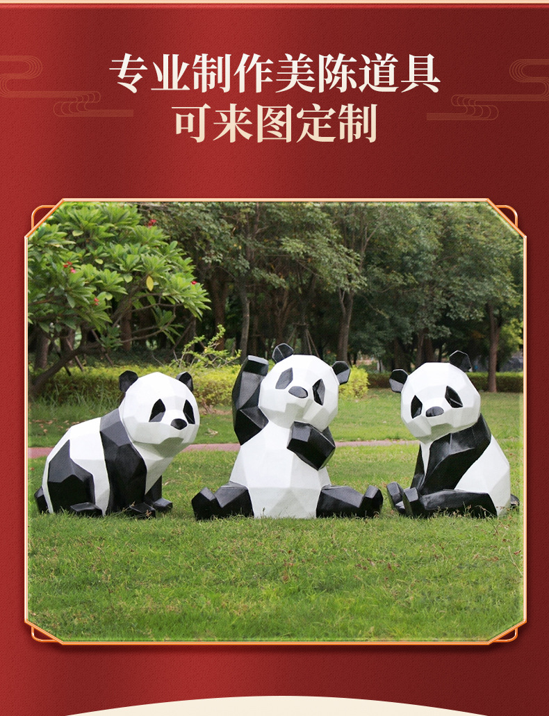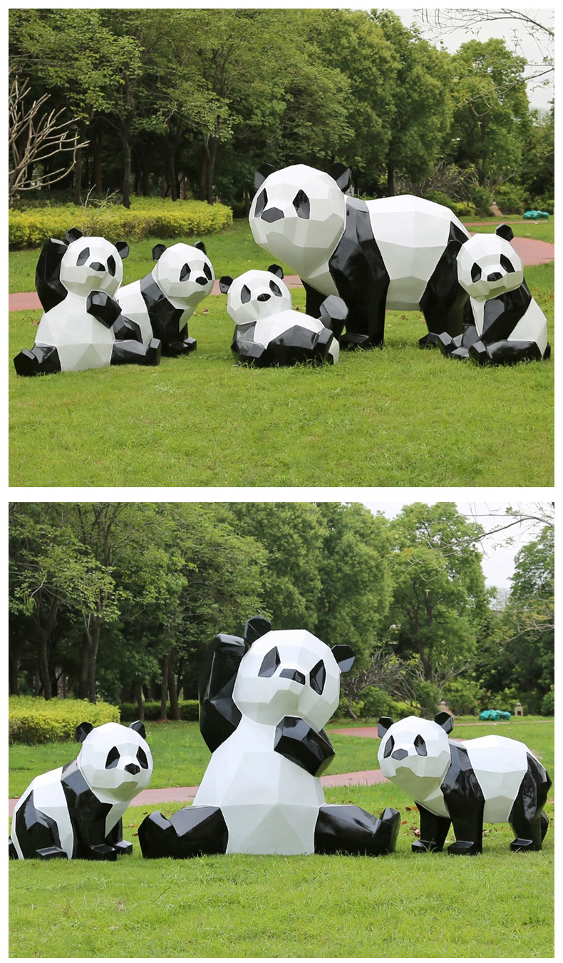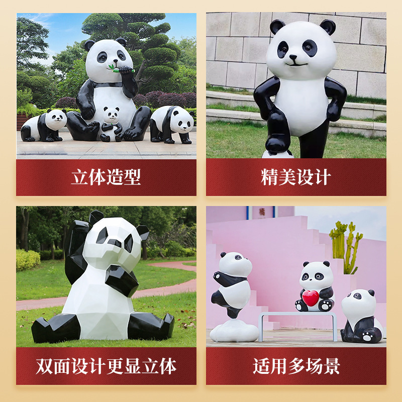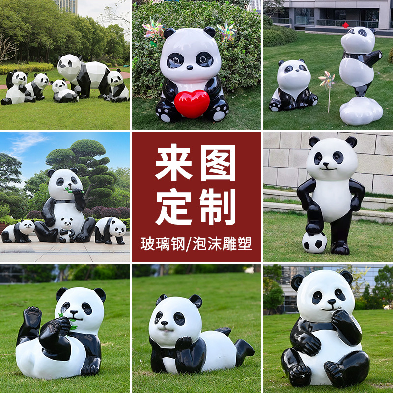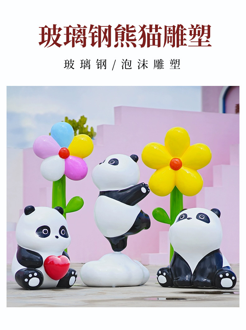 Индивидуальные скульптуры из стекловолокна; Изготовление скульптур из пенопласта; Любовь Панда; Сидящая панда; Облачная панда; Панда смотрит вверх; Папа Панда; Повозди Панды; Люблю заезжать панду; Стоящая вставная панда; Большая любящая панда ростом 135 см.