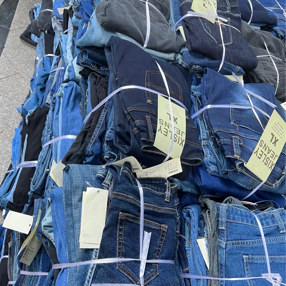 Заводская инвентарь обработки низкой цены женские джинсовые брюки разные внешнеторговые экспортные джинсы оптом