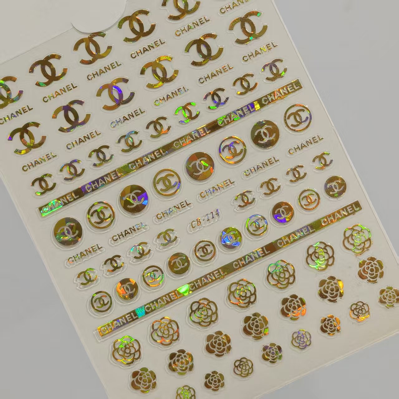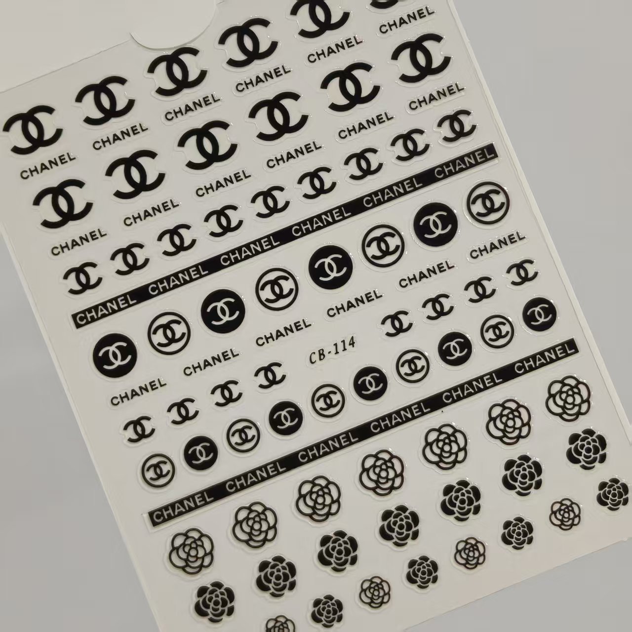 Модные наклейки для ногтей в стиле Шанель с плоским клеем, наклейки для ногтей с логотипом европейского и американского легкого люксового бренда, аксессуары в стиле CB.