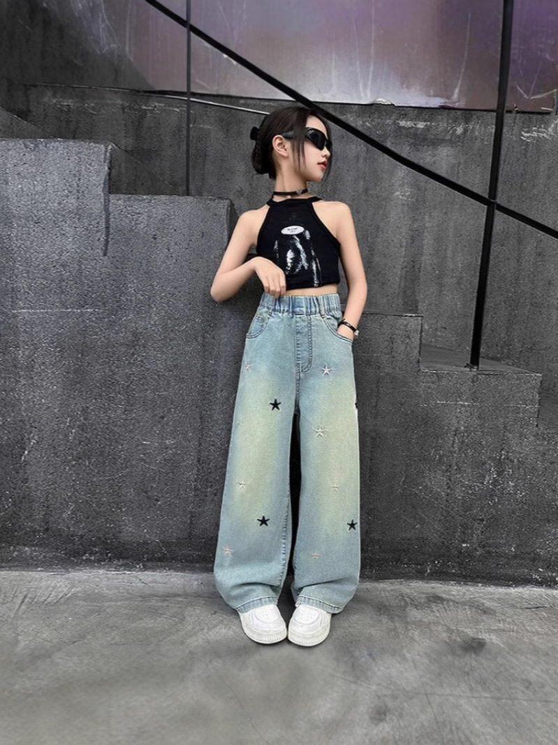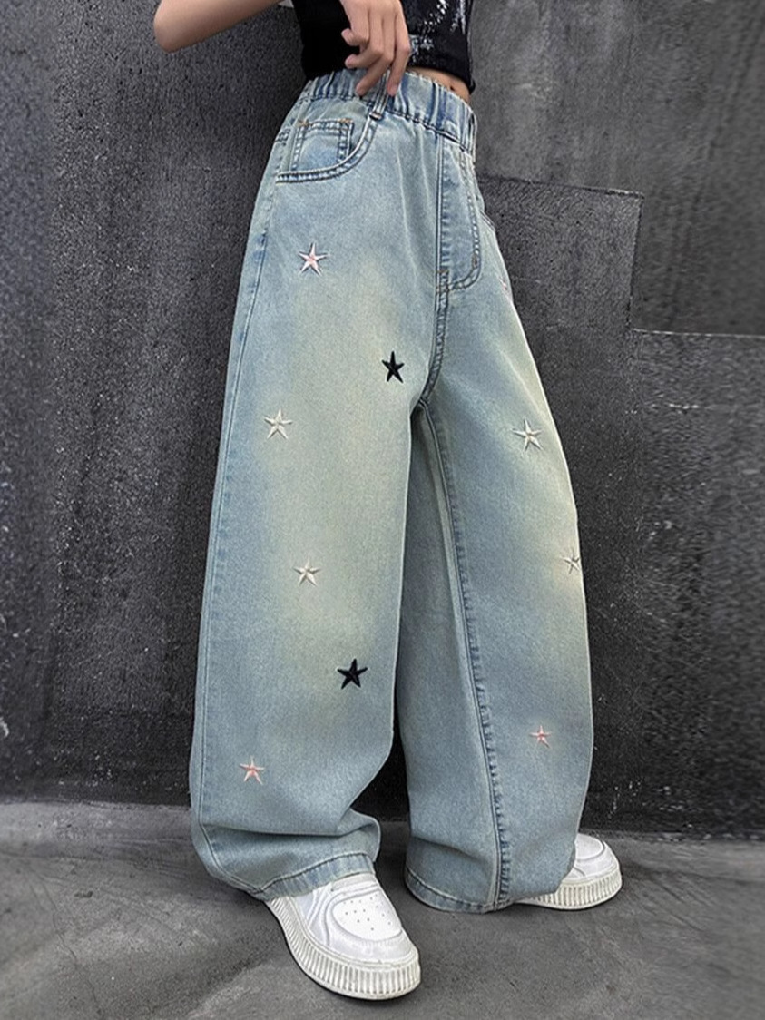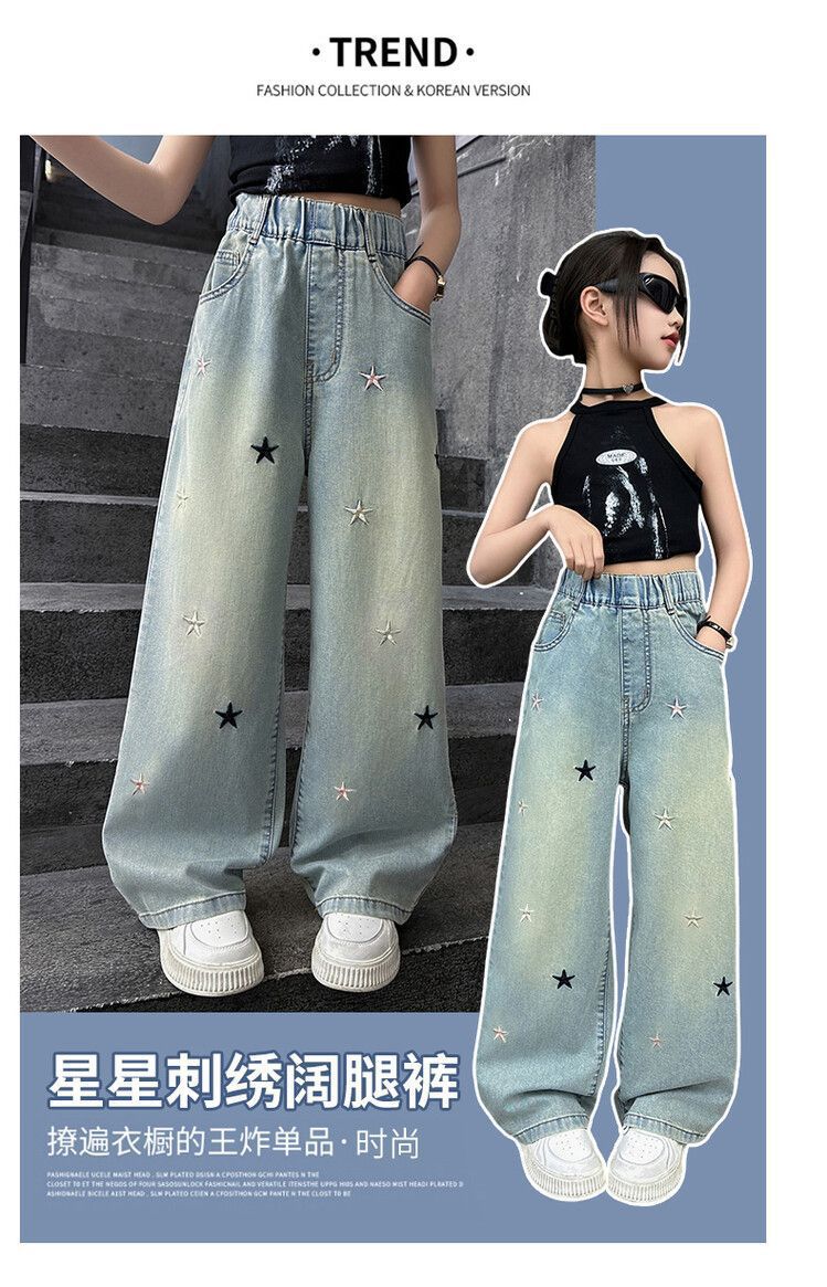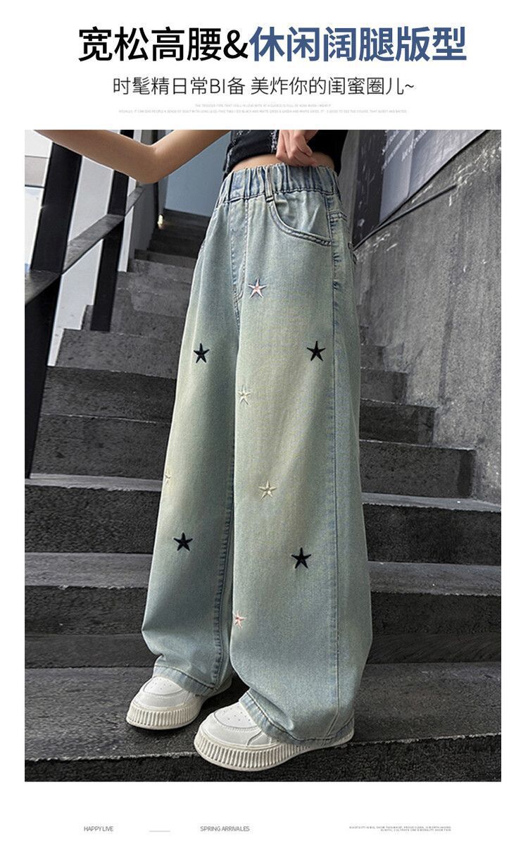 Джинсы для девочек весна и осень новые интернет-знаменитости средние и большие детские свободные брюки для девочек весна-осень-лето прямые широкие брюки