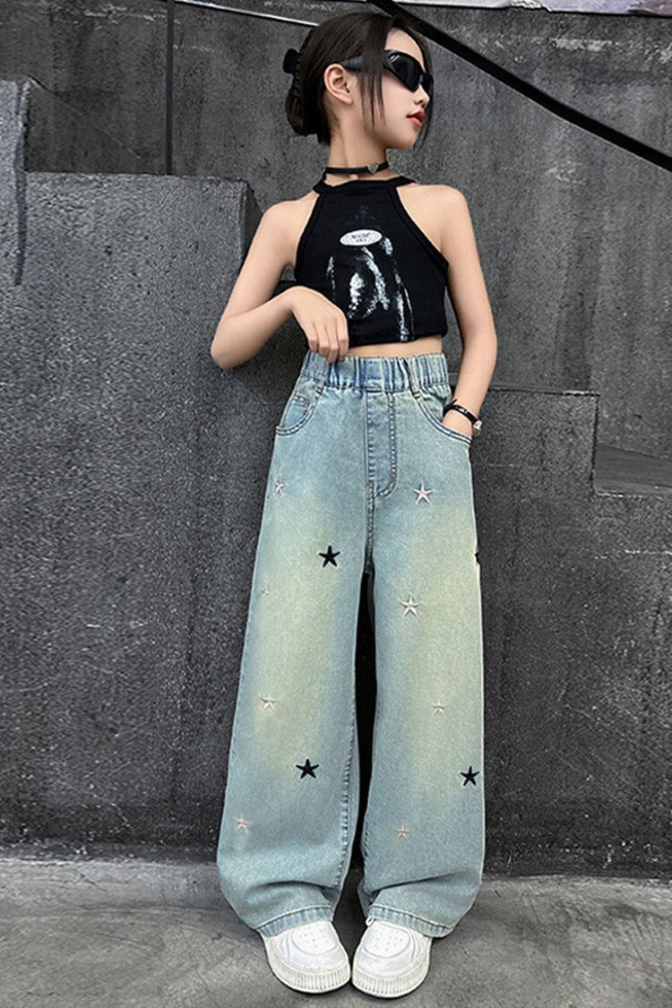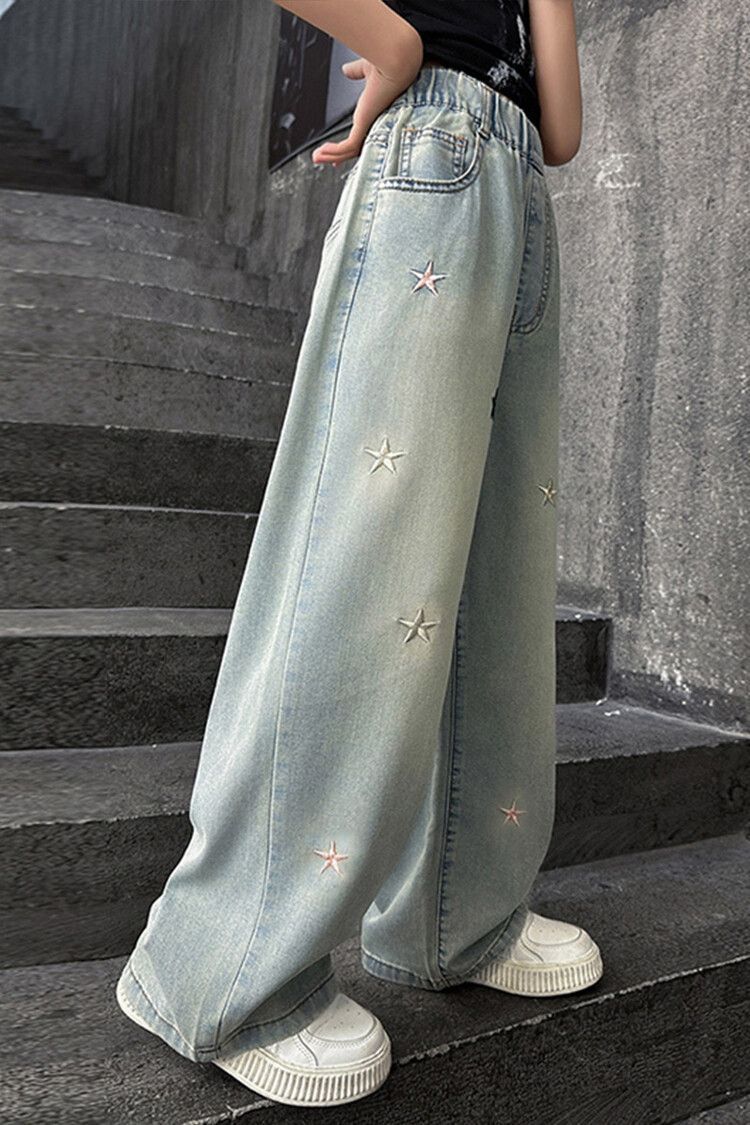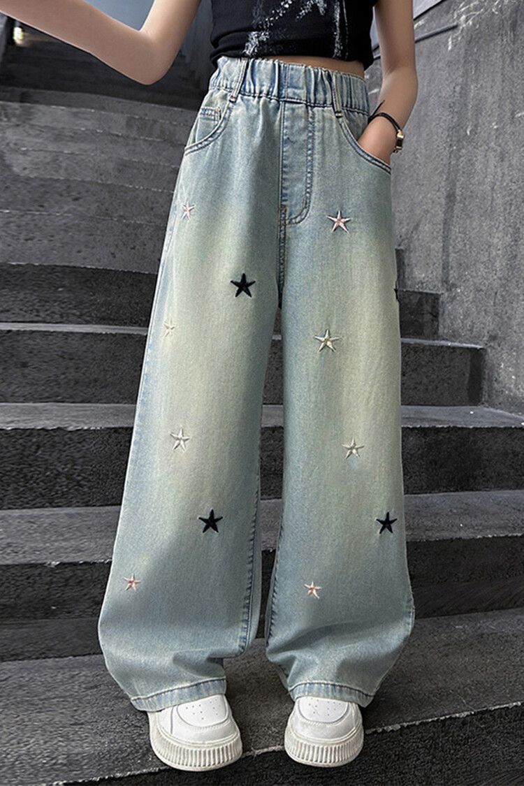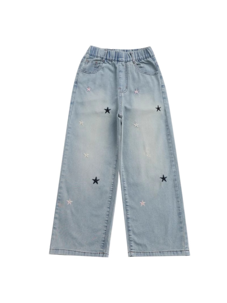 Джинсы для девочек весна и осень новые интернет-знаменитости средние и большие детские свободные брюки для девочек весна-осень-лето прямые широкие брюки