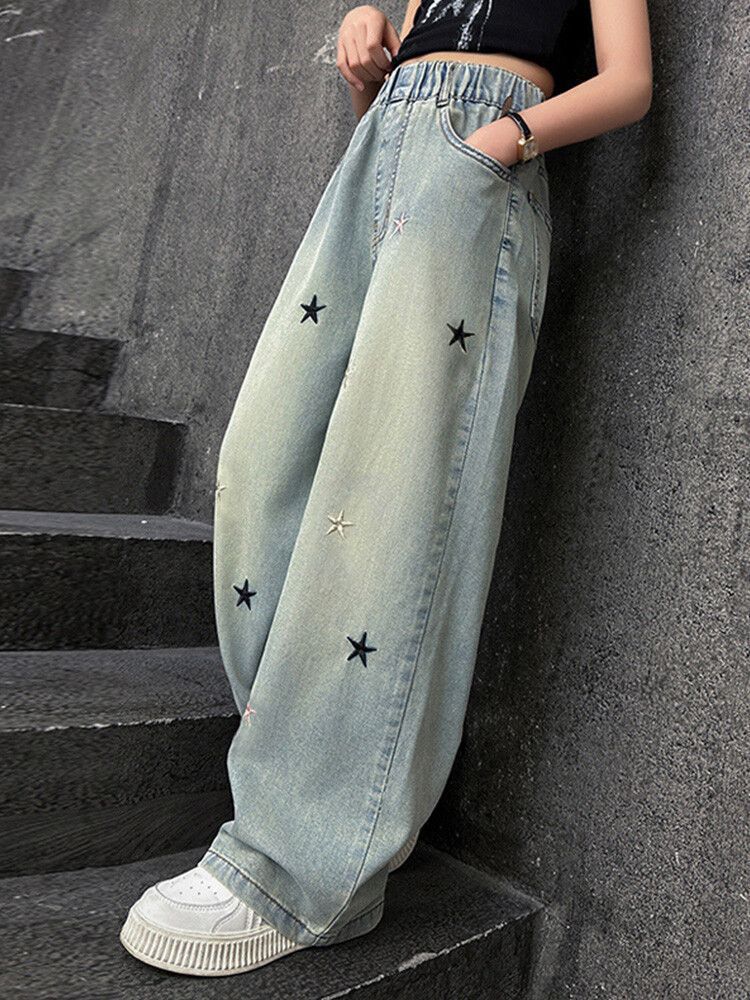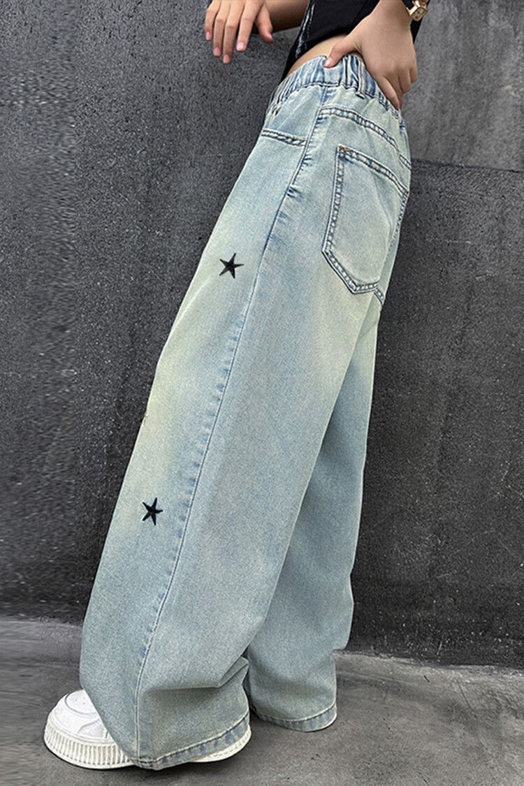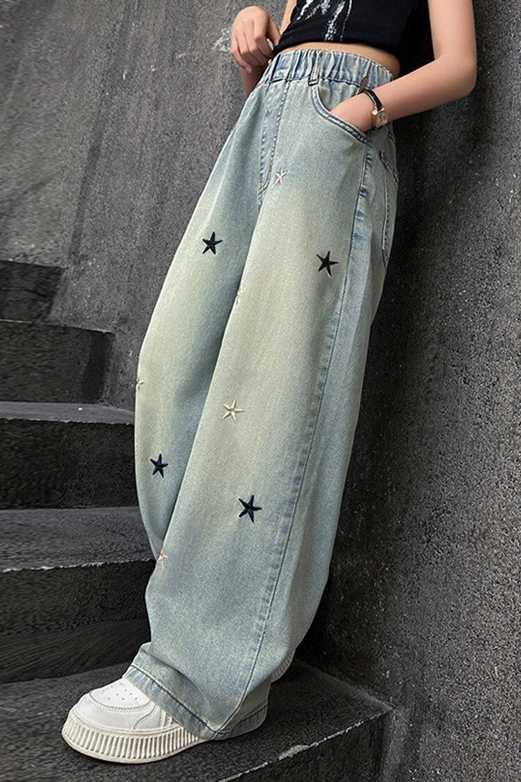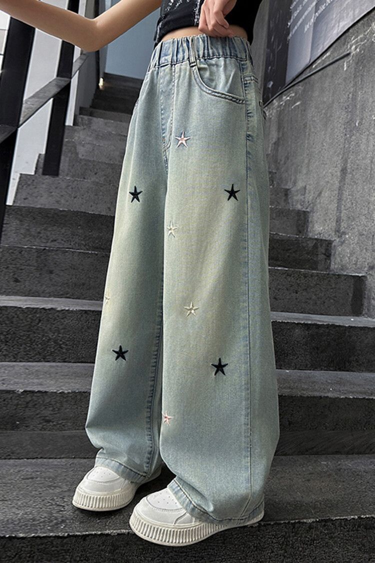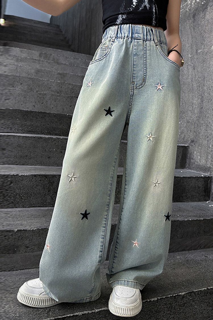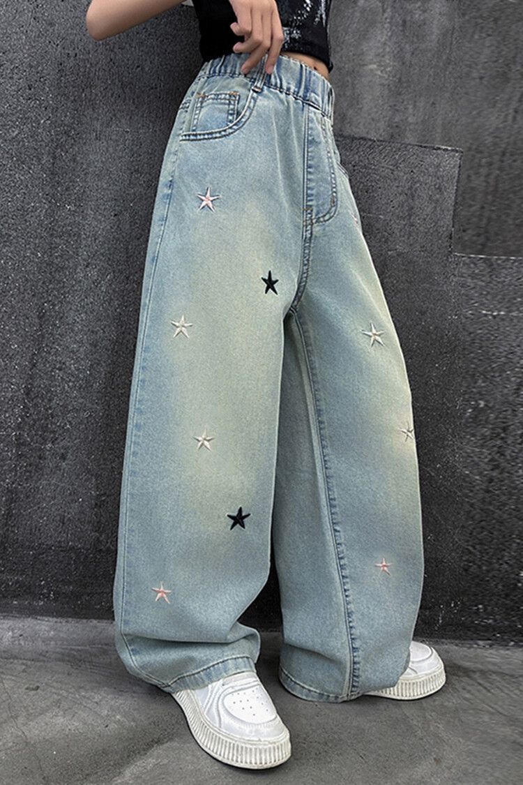 Широкие брюки со звездами и вышивкой; Широкие брюки с вышитым бантом.; Скрученные буквы