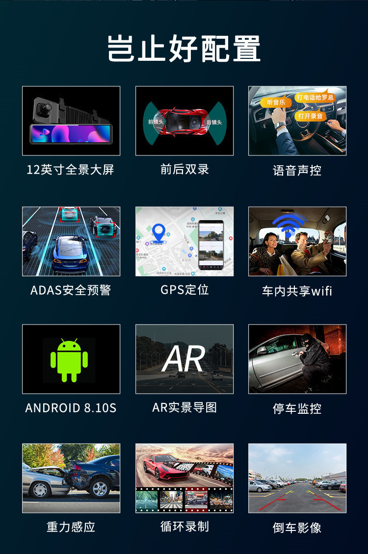 Z1Q12-дюймовый видеорегистратор AR реальной навигации квадратного экрана HD ночного видения двойной объектив потоковой электронной собаки 202