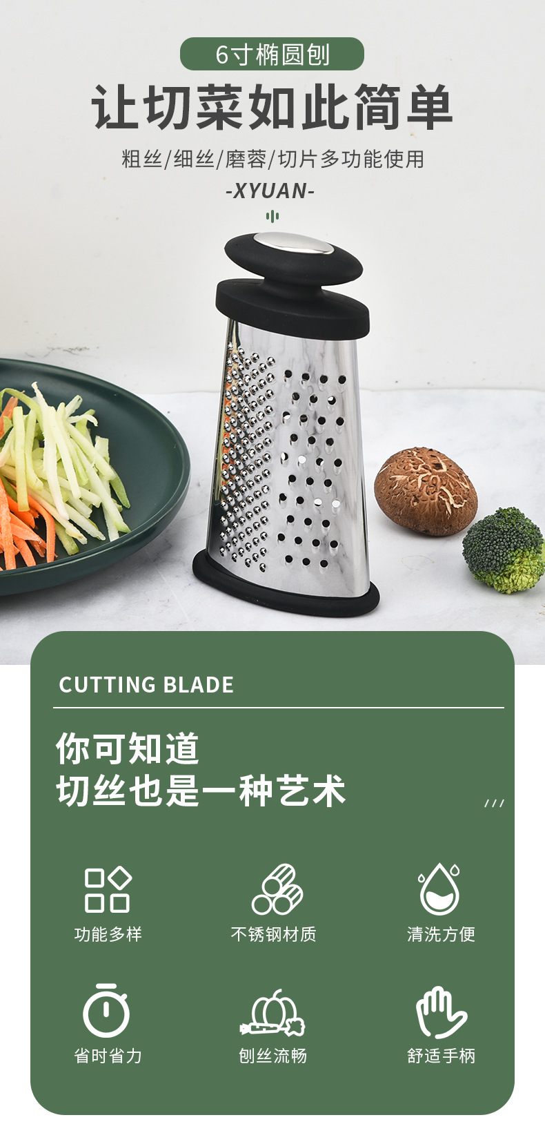 星源工厂PP椭圆型不锈钢蔬果刨丝器6寸 厨房用具芝士刨多功能瓜刨