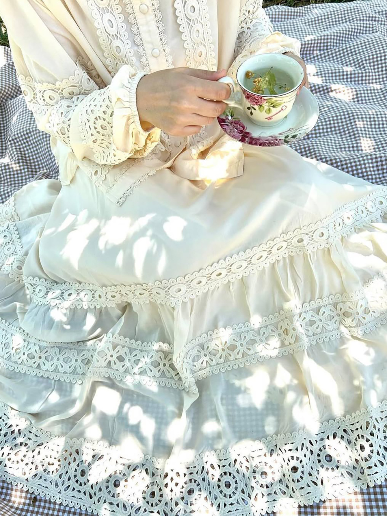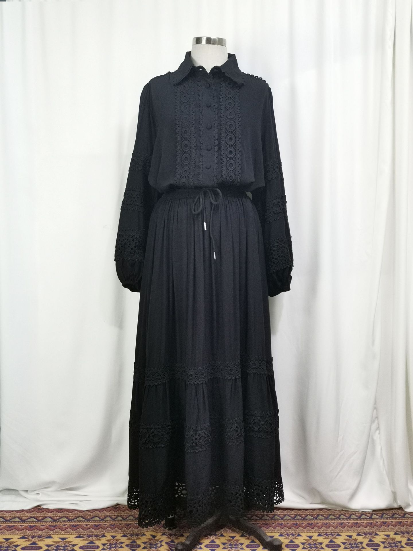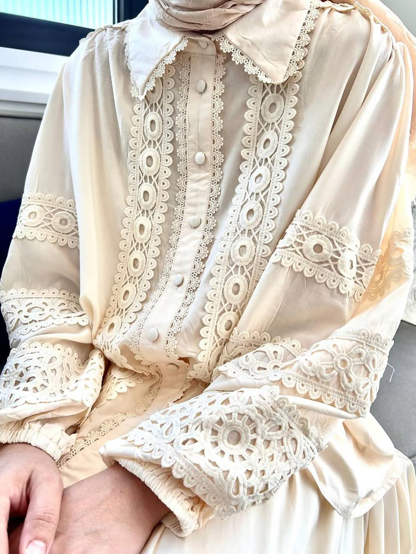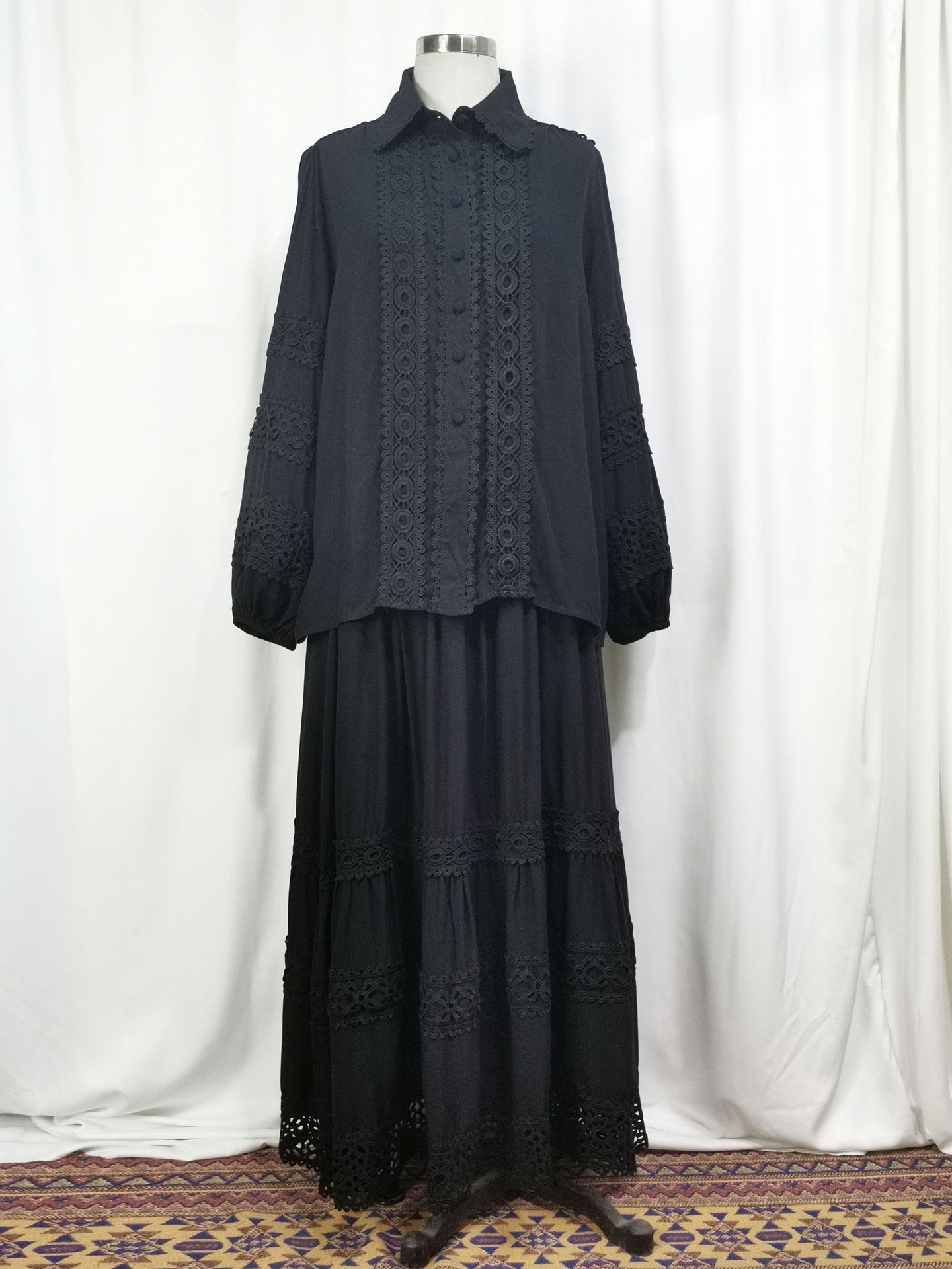 M301 # Хит продаж на Ближнем Востоке: женский мусульманский костюм из двух предметов — топ с ажурной кружевной отделкой и юбка с широким подолом.