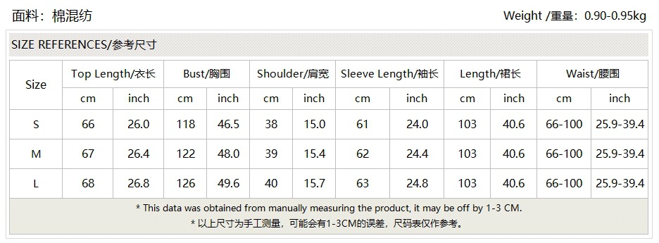 半身裙为均码,腰围为松紧腰,可拉伸。