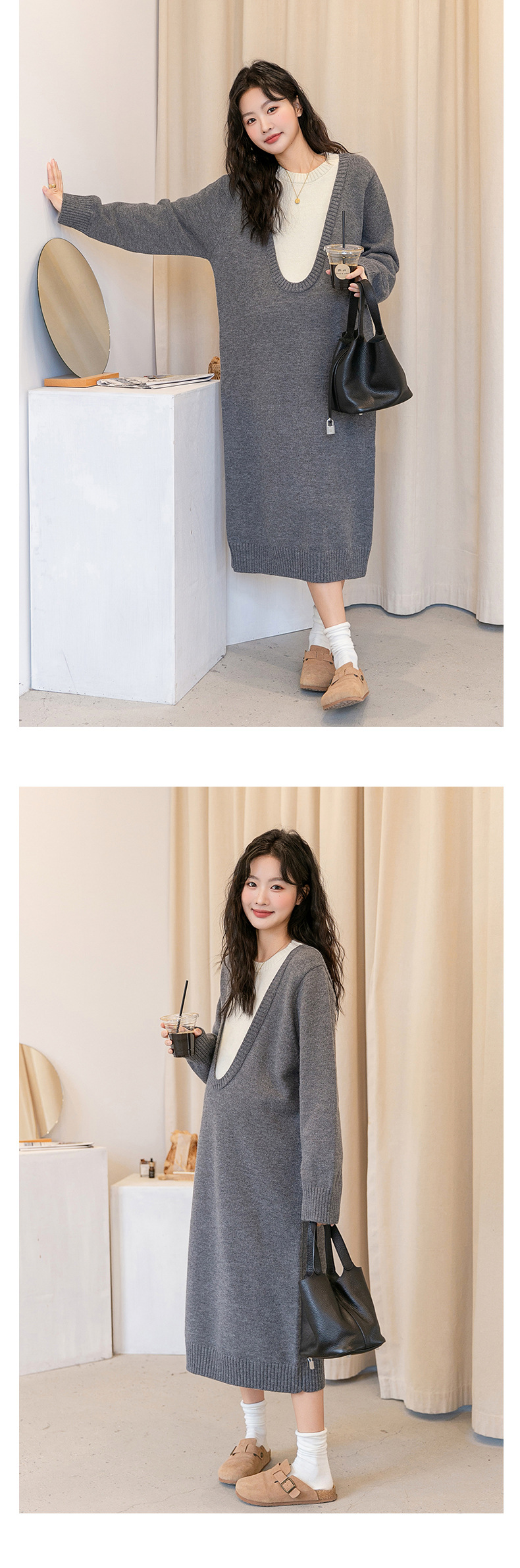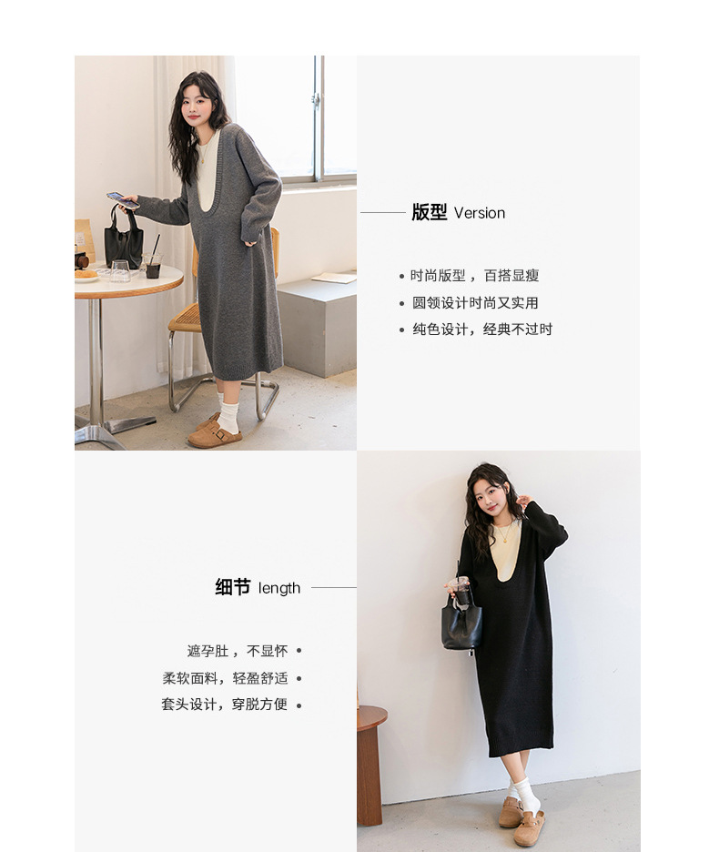 Осенние и зимние платья для беременных корейские поддельные два платья для беременных свободно большой размер длинный по беременности и родам свитер Повседневная тощая