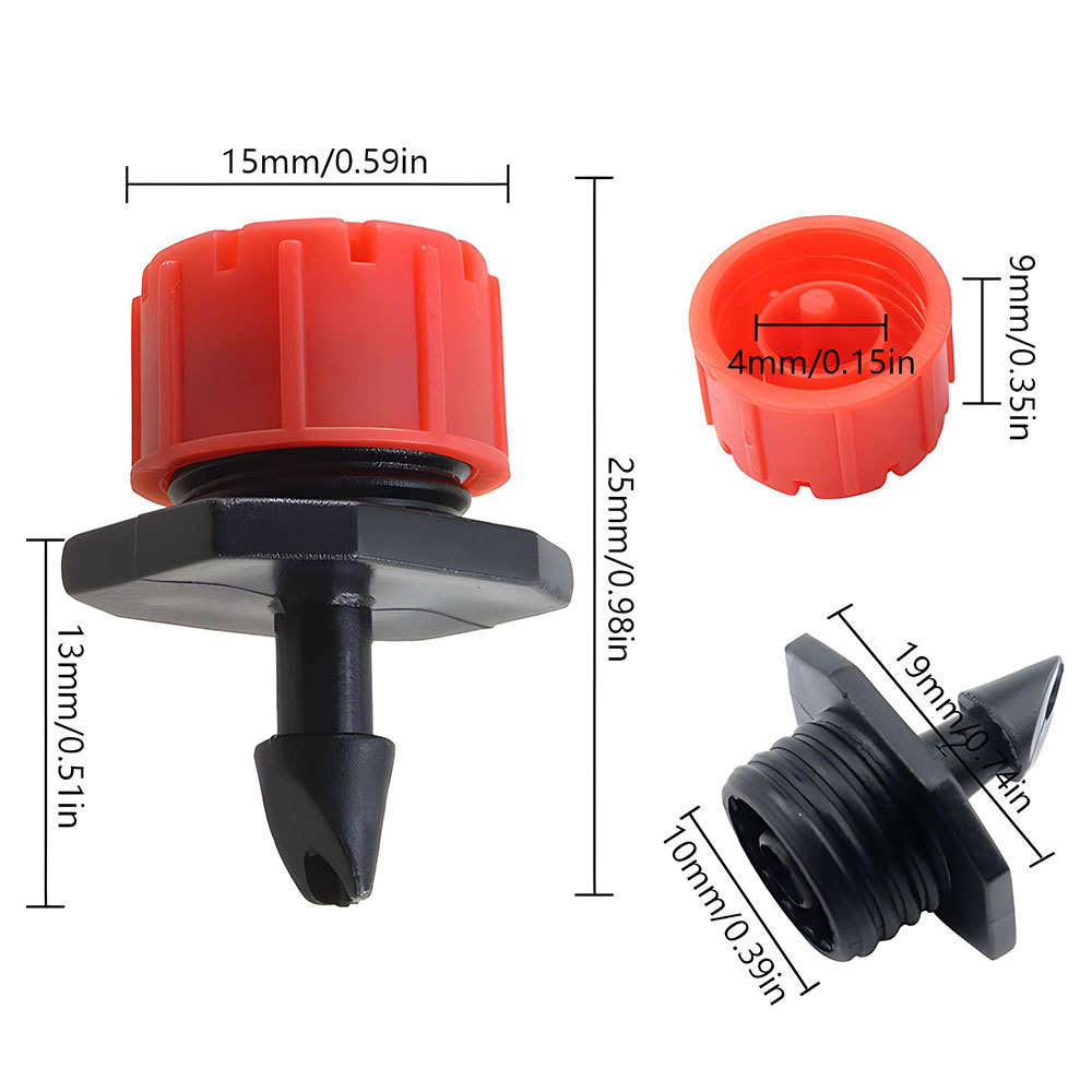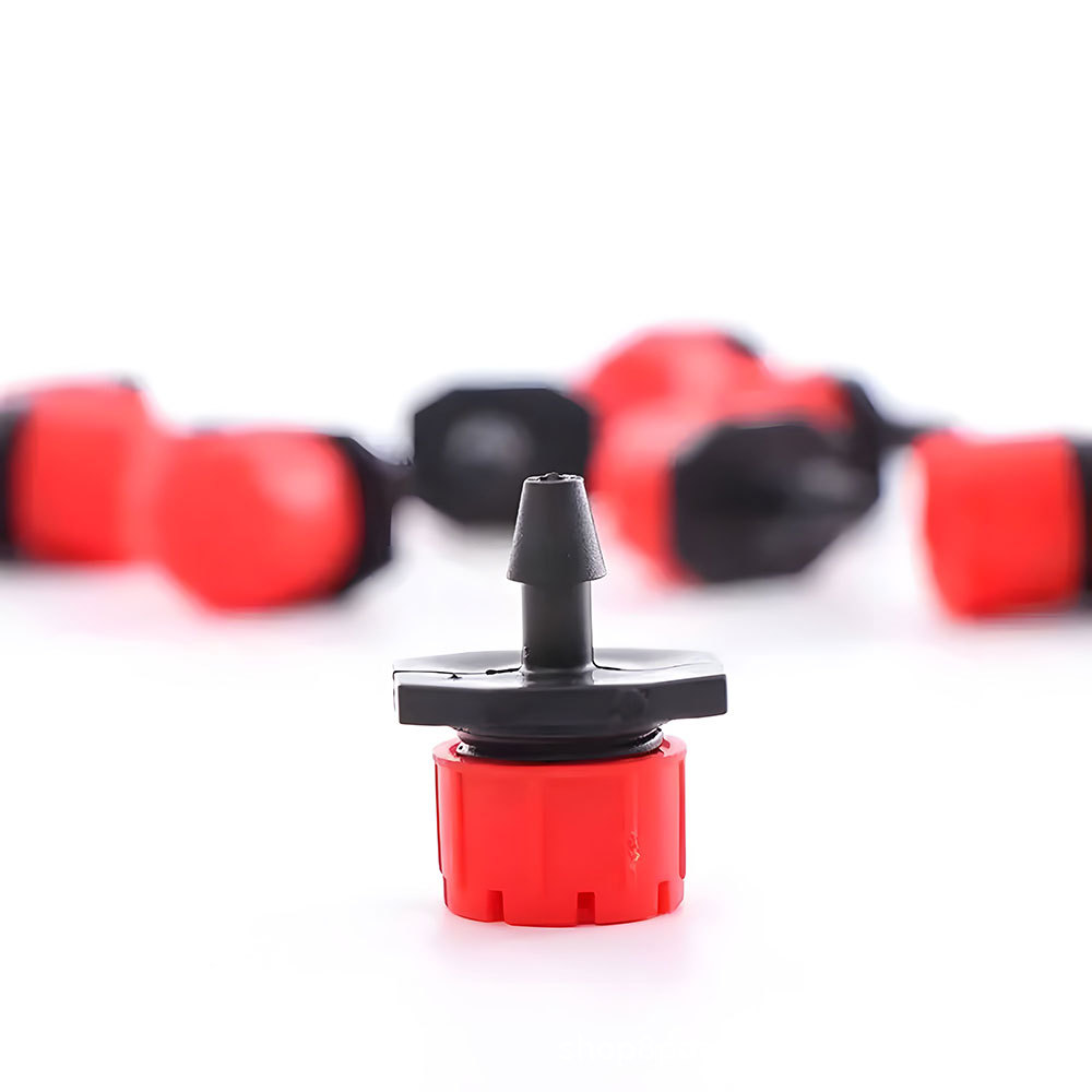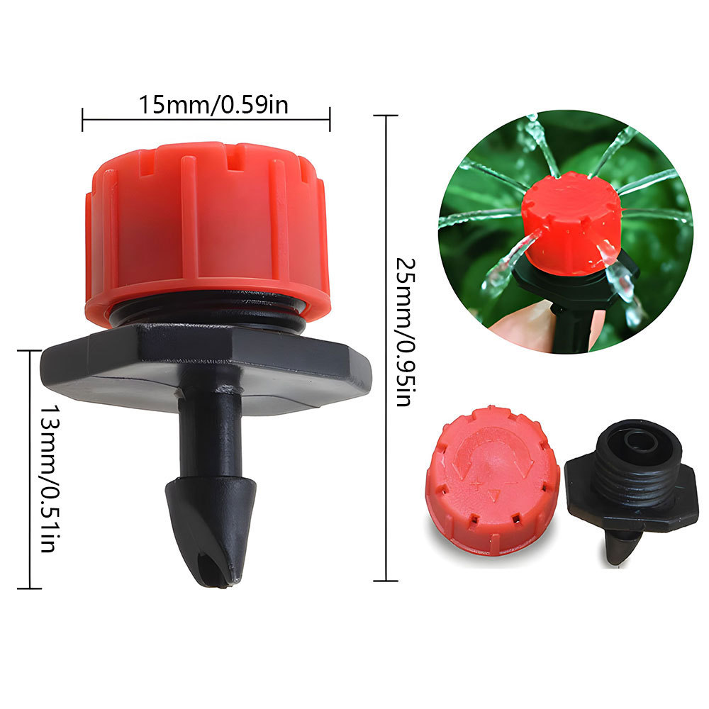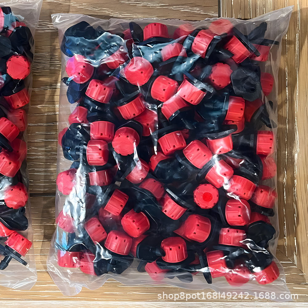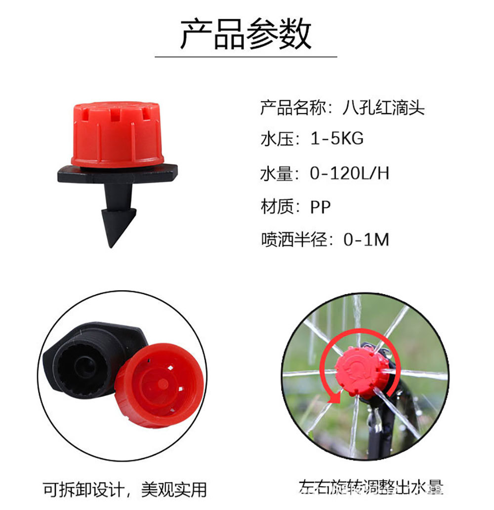 Микроспринклер с восемью отверстиями, красный, с регулируемым потоком, для капельного орошения садовых плодовых деревьев, капельница с 8 отверстиями и маленьким красным колпачком, водосберегающее оборудование
