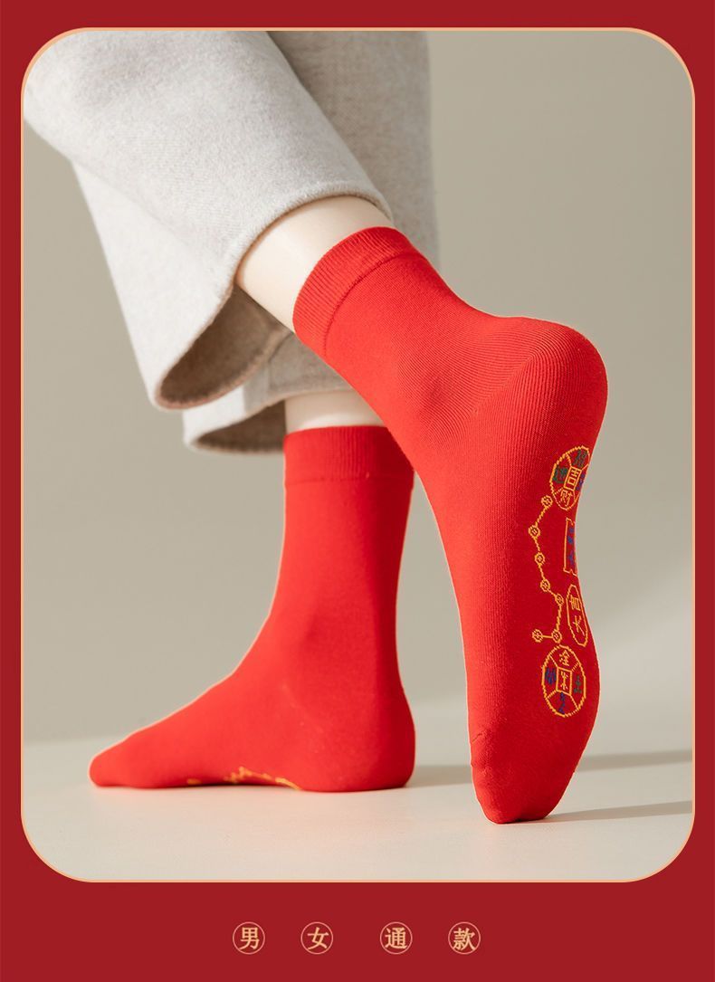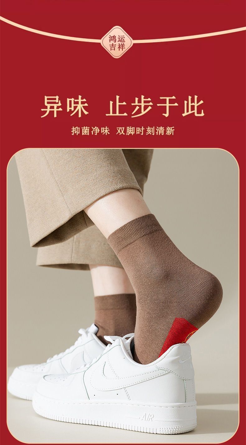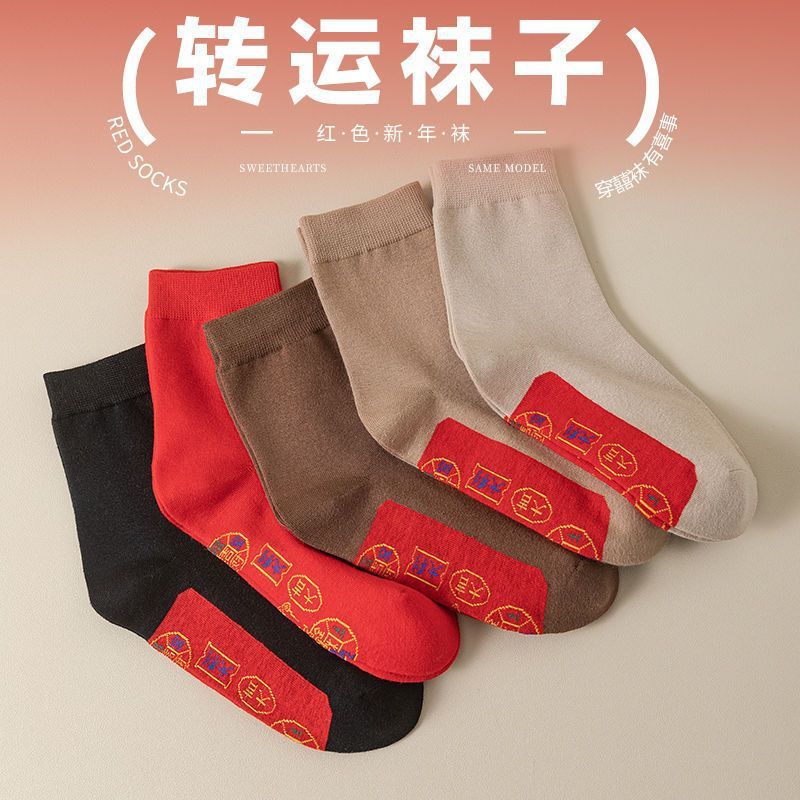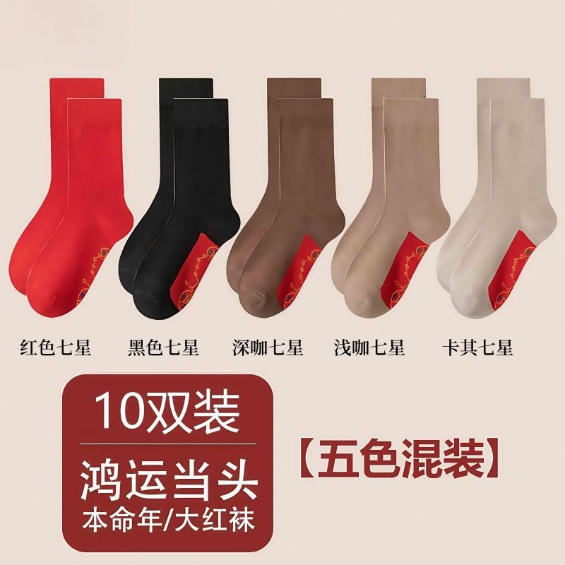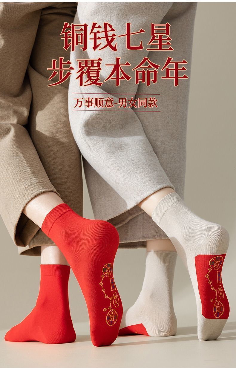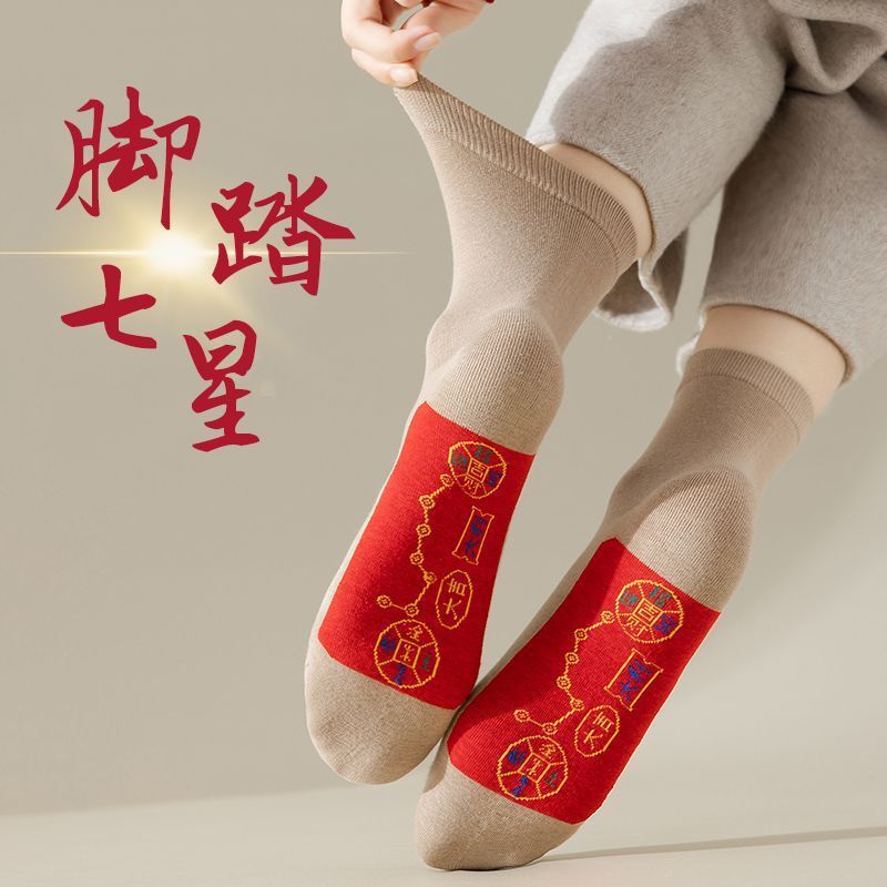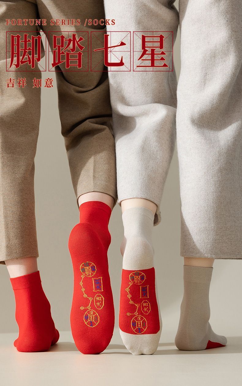 Красные носки с семизвездочным дизайном для мужчин и женщин, средней длины, устойчивые к запахам, новая модель к Году Змеи 2025 года.