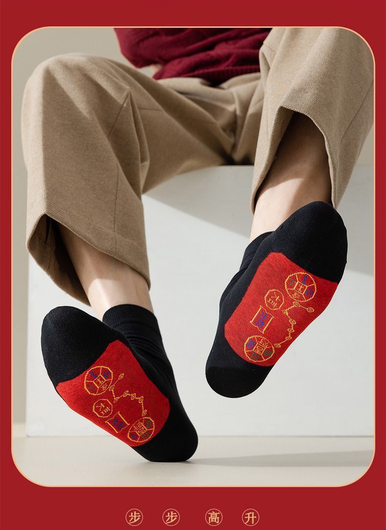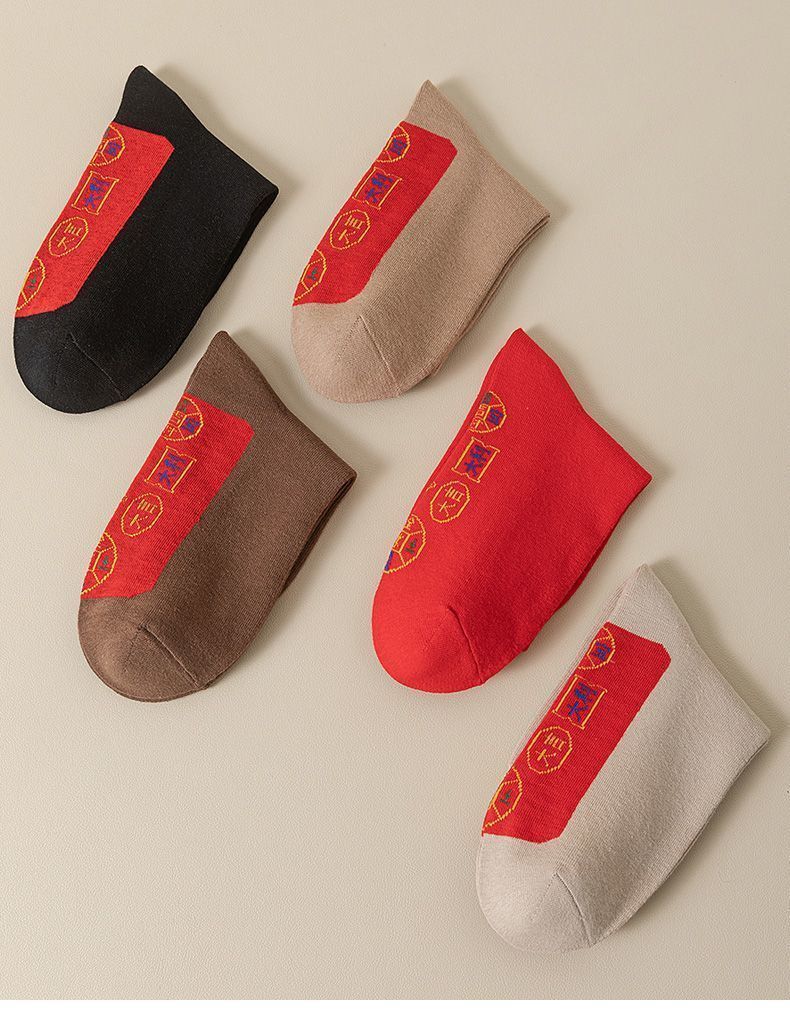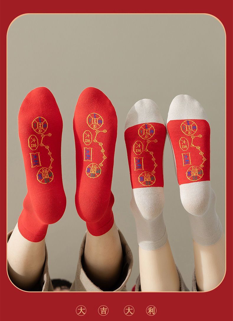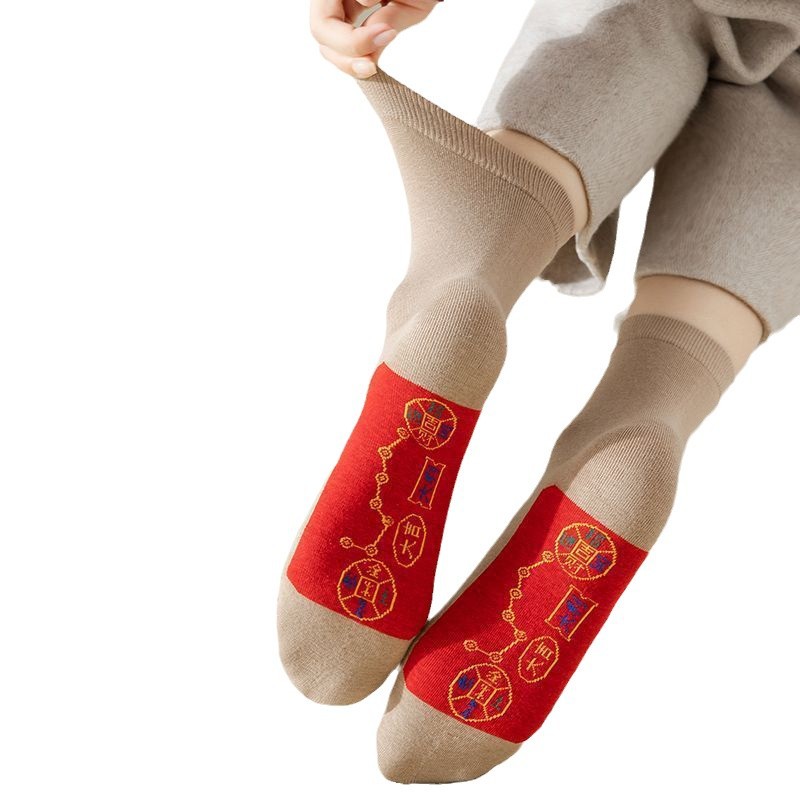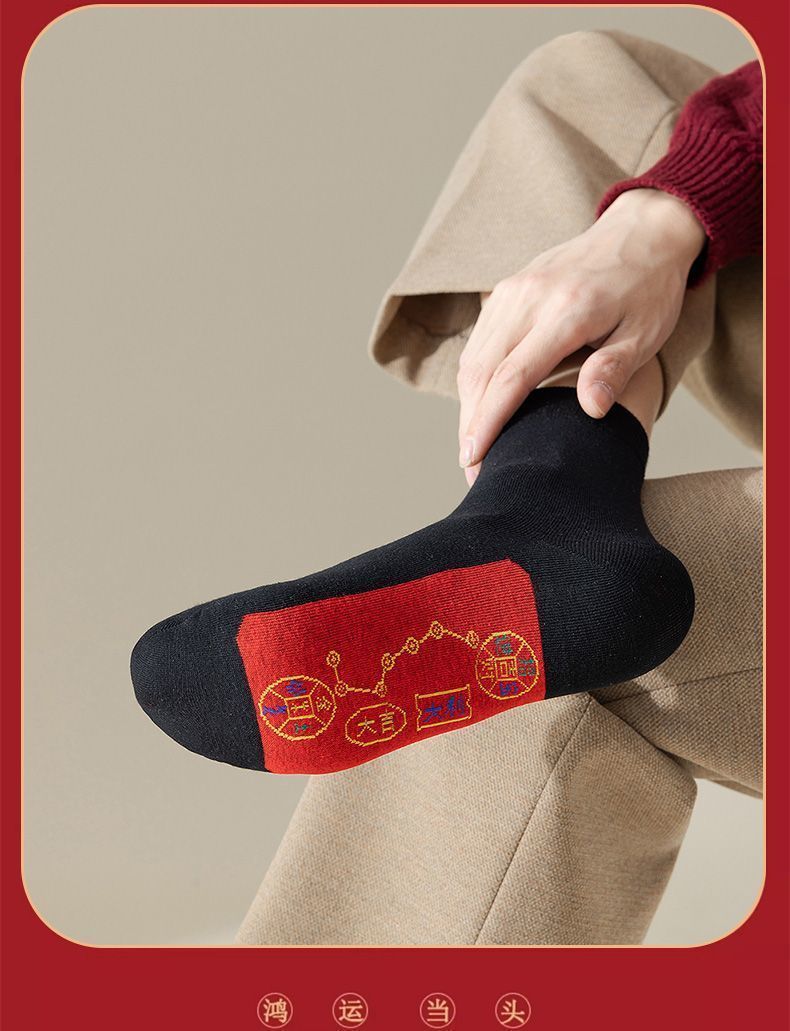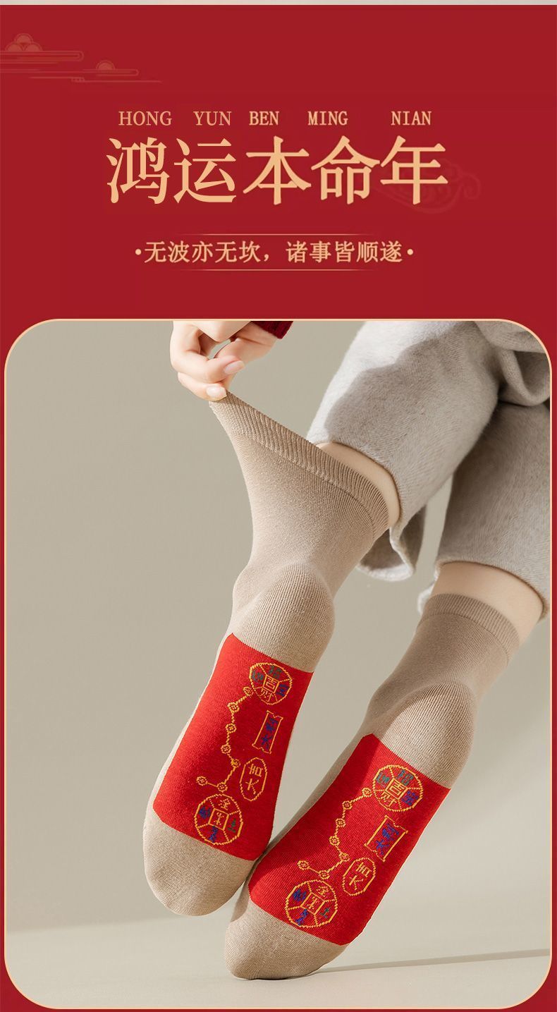 Красные носки с семизвездочным дизайном для мужчин и женщин, средней длины, устойчивые к запахам, новая модель к Году Змеи 2025 года.