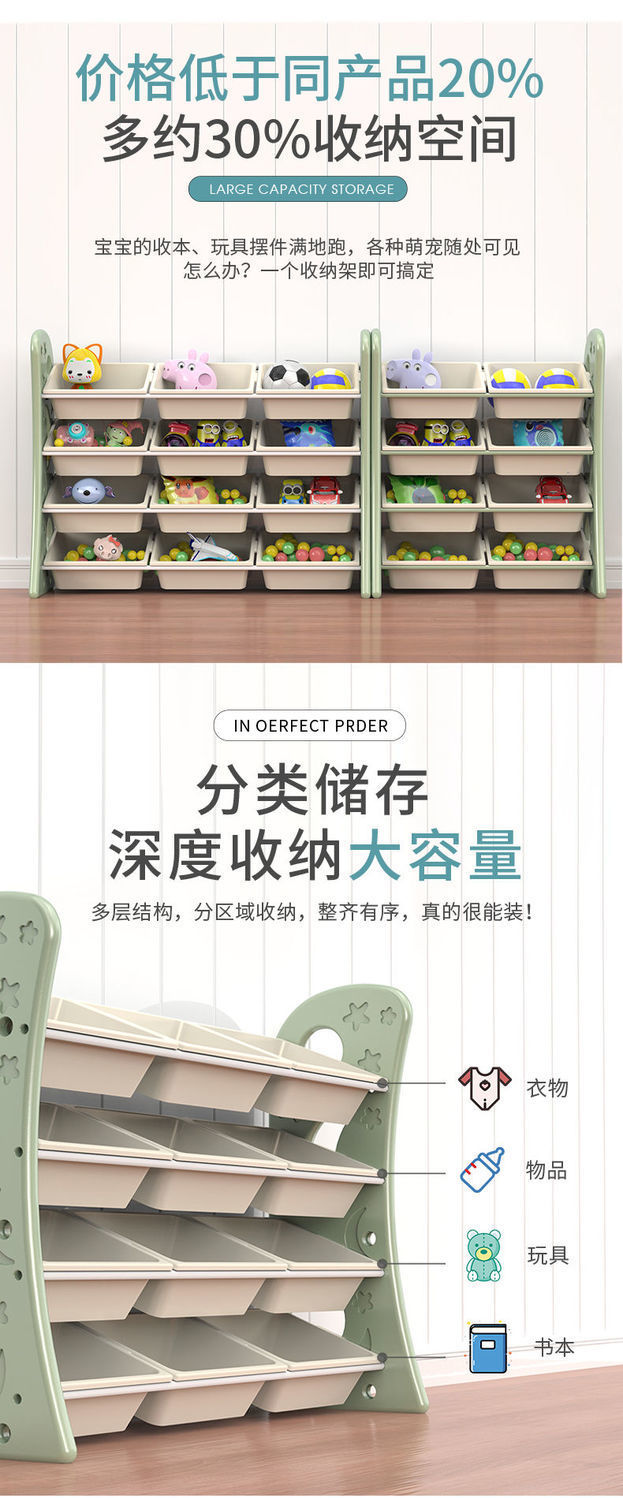 Детская игрушечная стойка для хранения Детская детская книжная полка Классификация Детская стойка для сортировки шкафа для хранения Многослойная стойка для хранения большой емкости