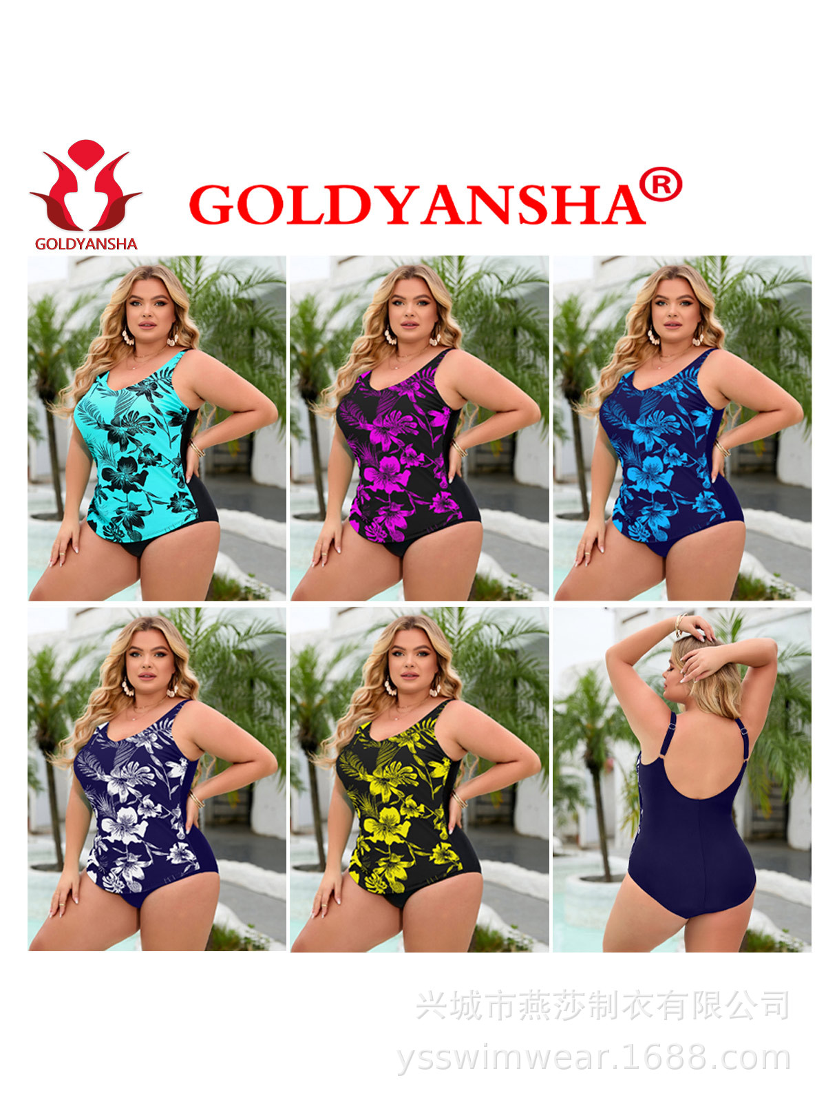 2025 Европейский и американский цельный купальник плюс размер для полных, высококачественный нейлоновый принтованный цельный купальник для трансграничной торговли