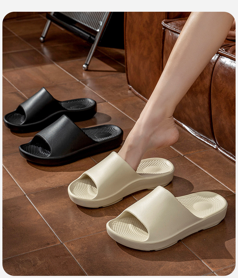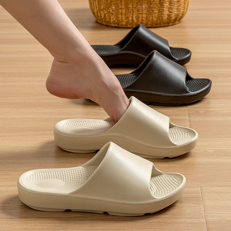 Новые тапочки EVA на толстой подошве с эффектом шага по земле для женщин, домашние массажные тапочки с гладкой подошвой для мужчин, тапочки с поддержкой свода стопы для лета.