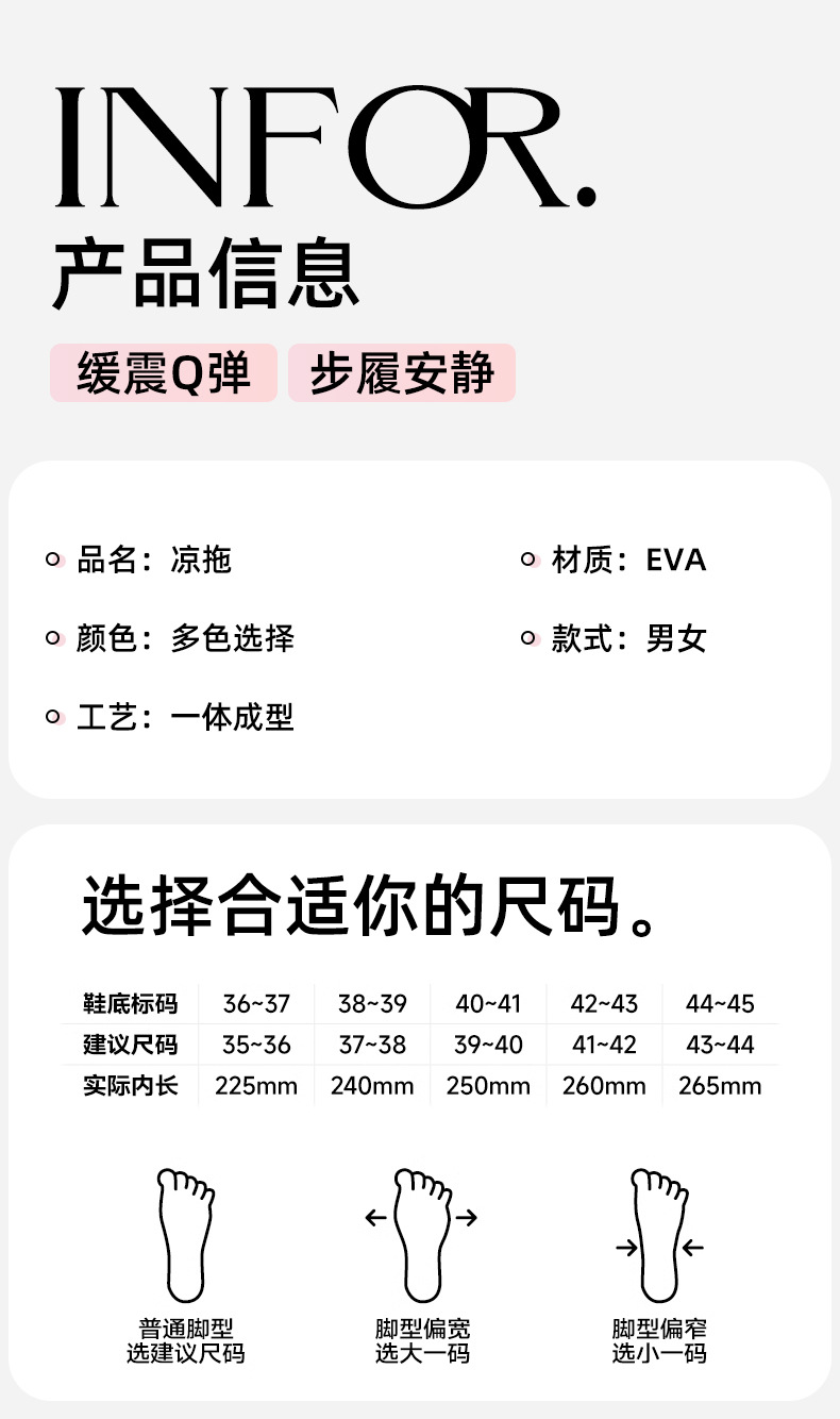 温馨提示:EVA材质拖鞋需避免高温暴晒,长时间高温会导致鞋子产生变形。