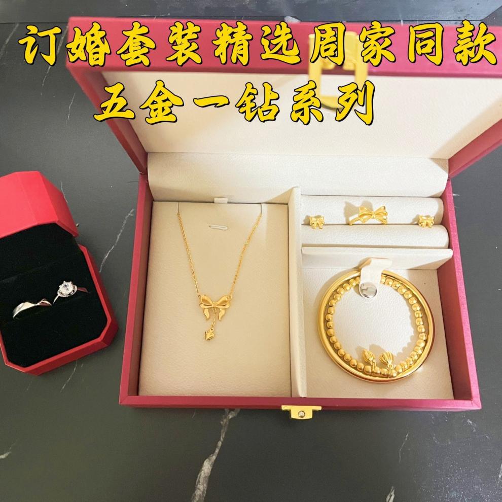 Аутентичная помолвка, имитация трех золотых украшений, набор из пяти частей, древний метод наследования браслета, один бриллиант