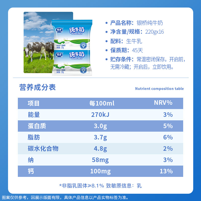 Молочный порошок Yinqiao Pure Milk Pillow, 220 г * 16 пакетов