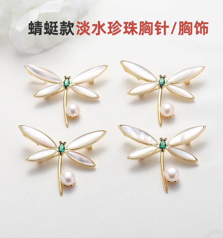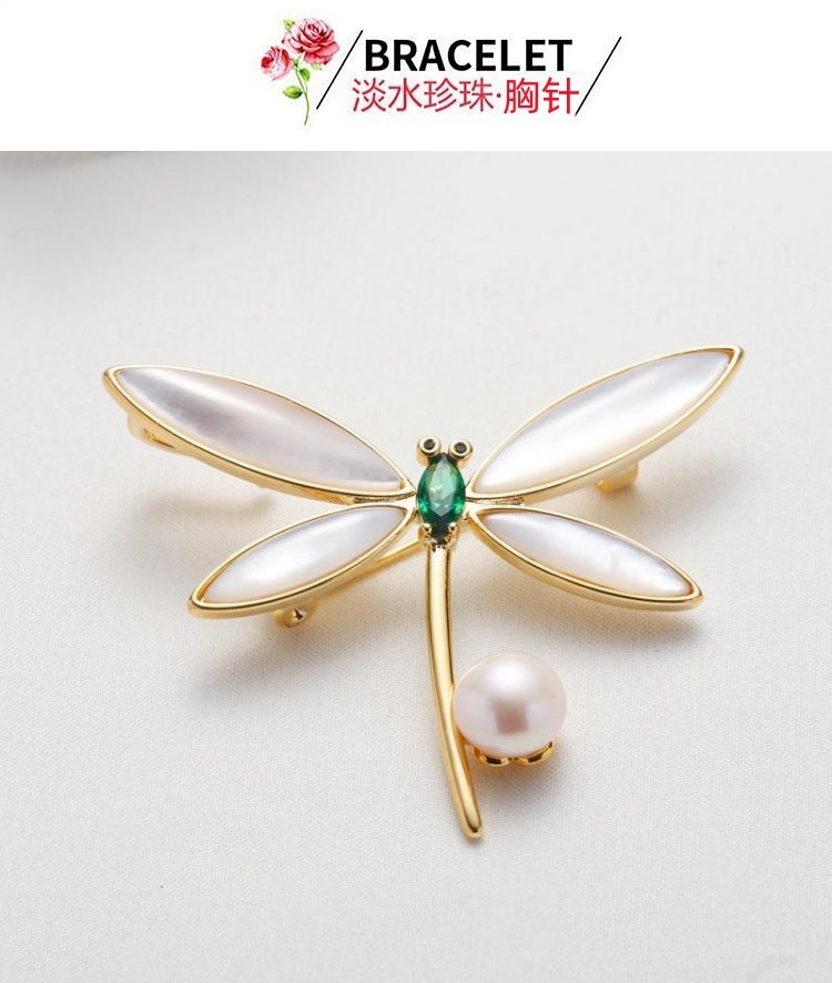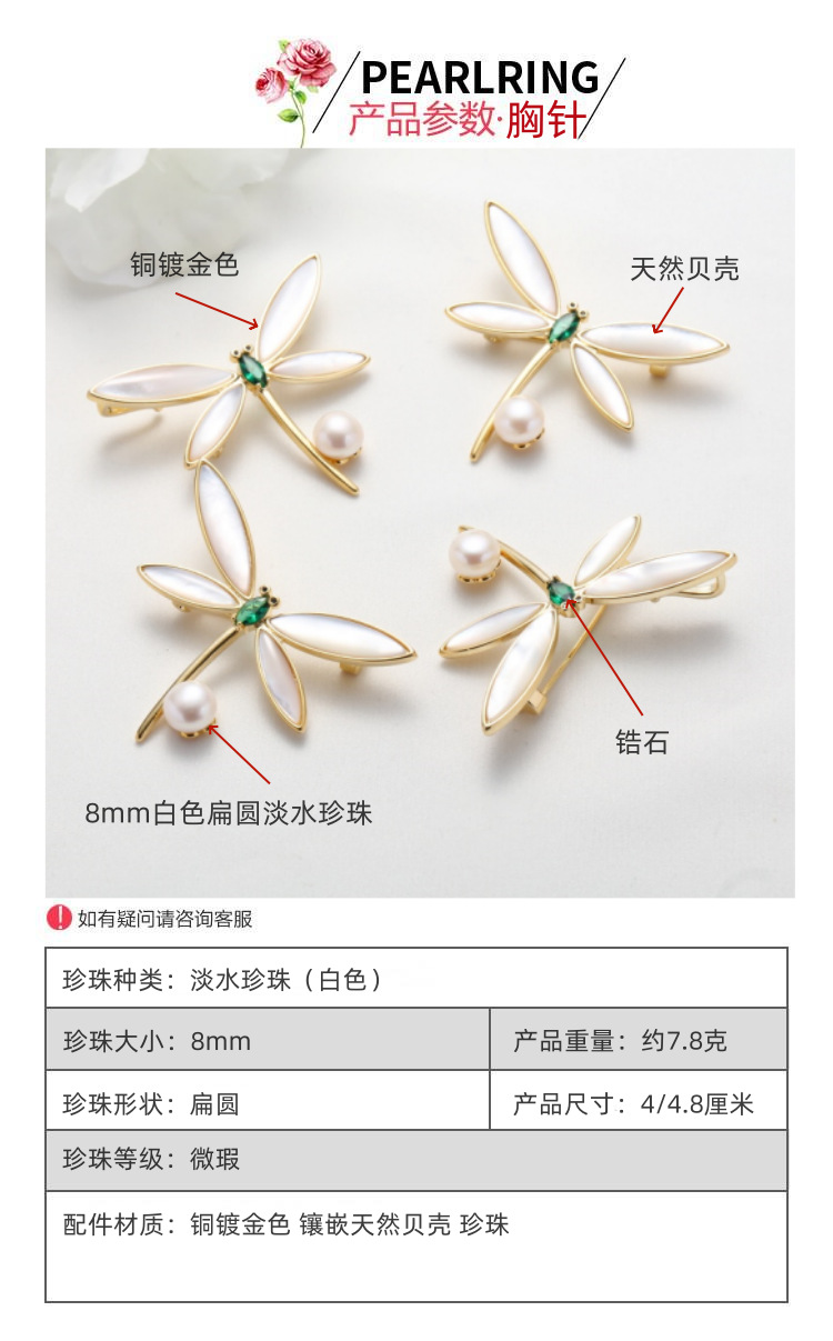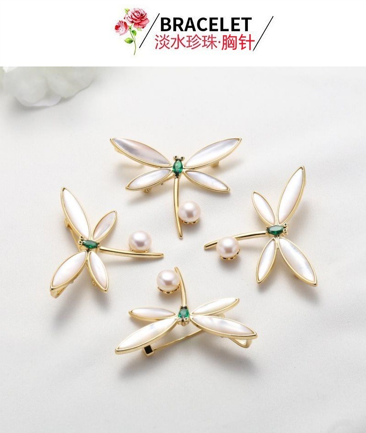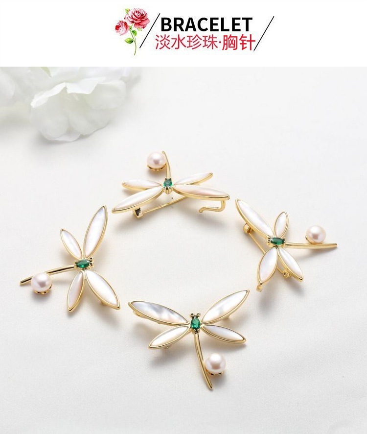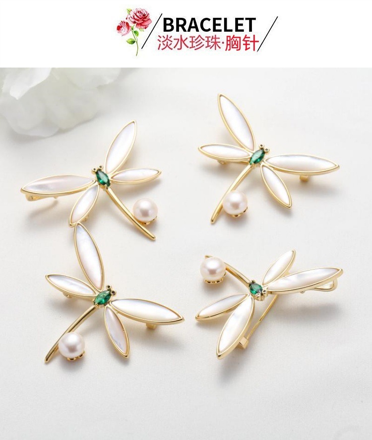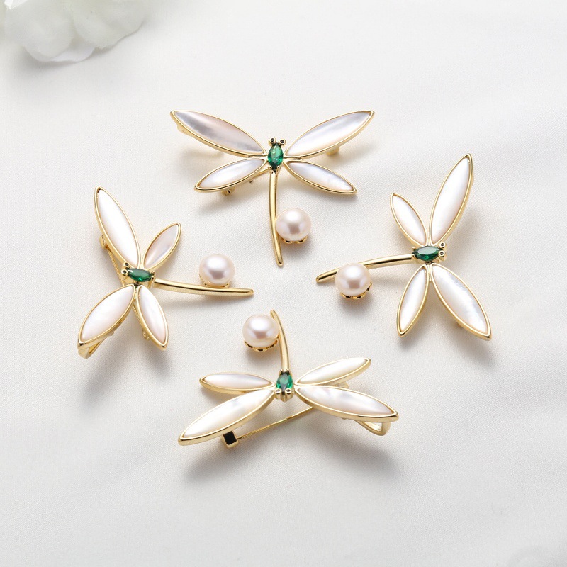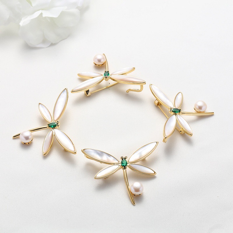Zhuji Shell корсаж женская корейская версия стрекозы текстурный костюм пальто пресноводный жемчуг пряжка брошь