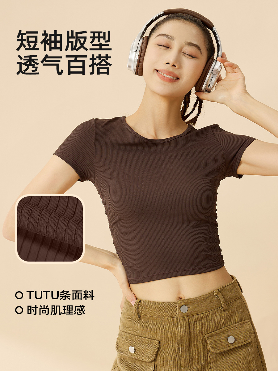 Juyitang новая полосатая йога с короткими рукавами, дышащая, универсальная, для похудения, высокоэластичная спортивная с короткими рукавами