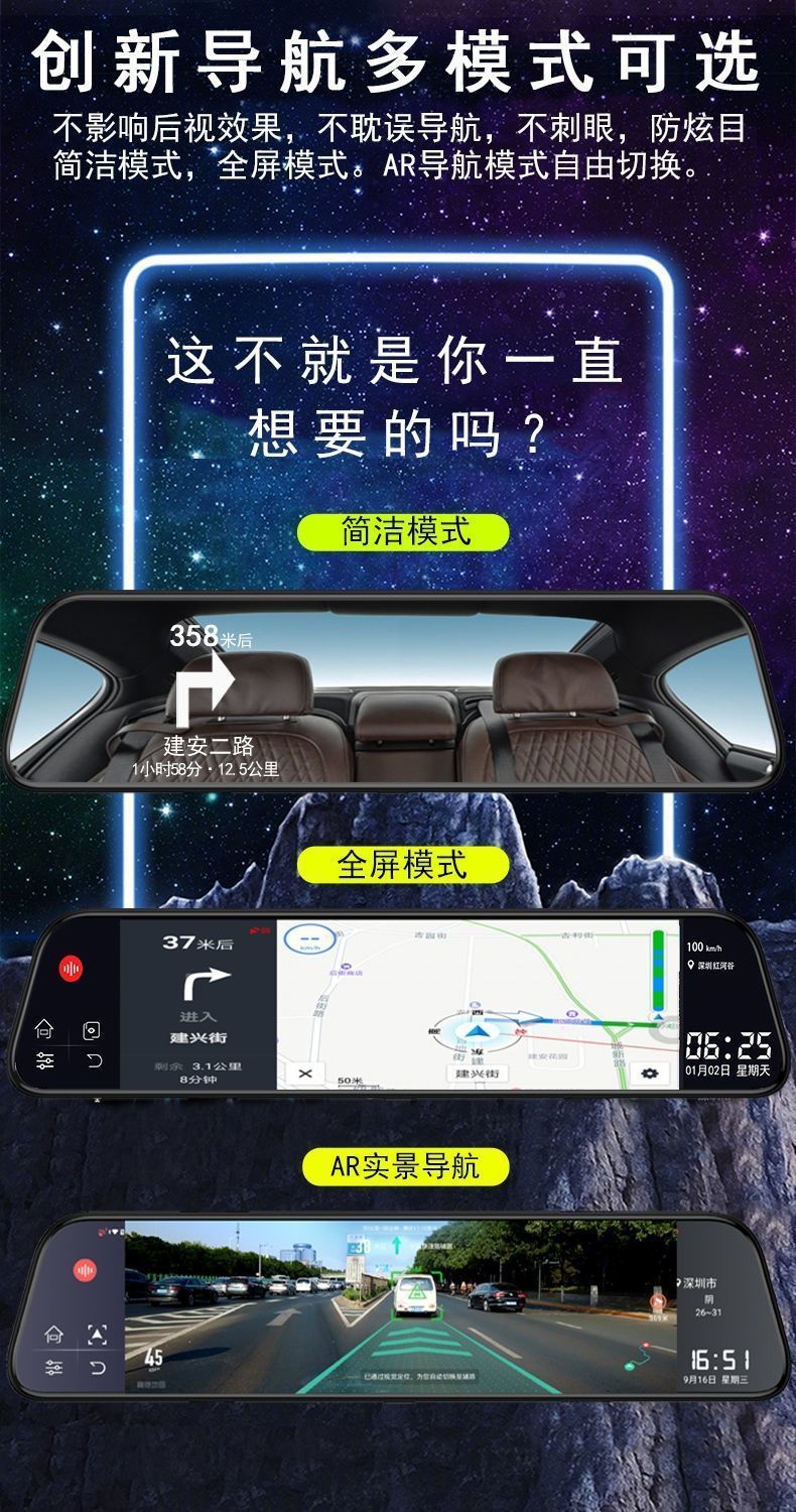 Z1Q новый облачный зеркальный видеорегистратор умный экран двойной объектив навигация электронная собака HD ночной вид зеркало заднего вида