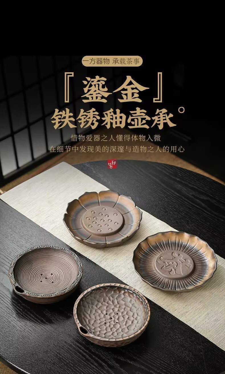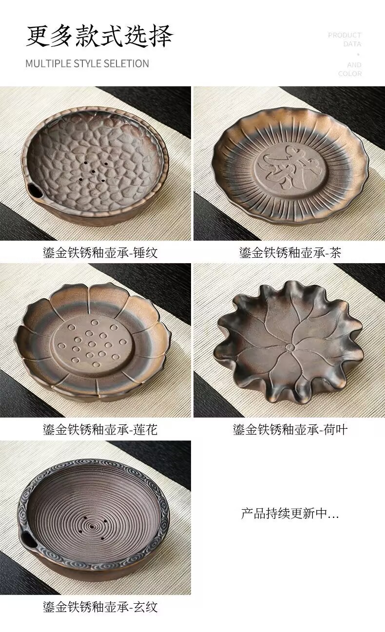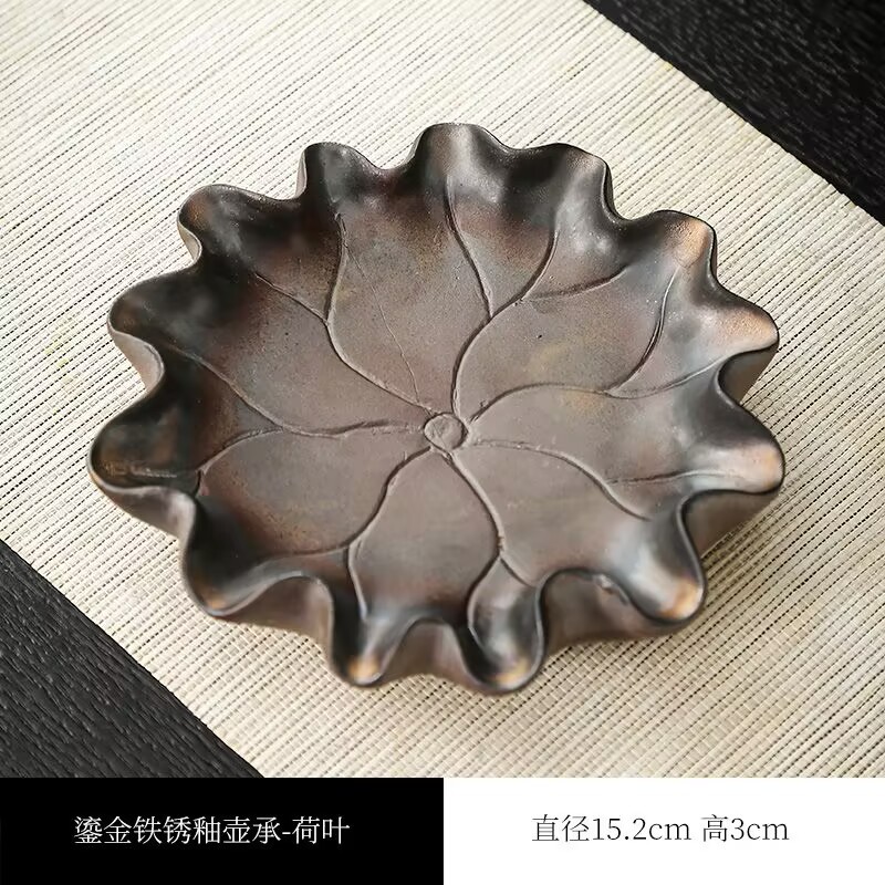 Позолоченный держатель для горшка из ржавой глазури - черный узор; Позолоченная ржавая глазурь-держатель для горшка с молоточным узором; Позолоченная ржавая глазурованная бутылка-лотос; Позолоченный ржавый глазурованный горшок-лист лотоса; Позолоченный ржавый подстаканник для кастрюли с надписью чая