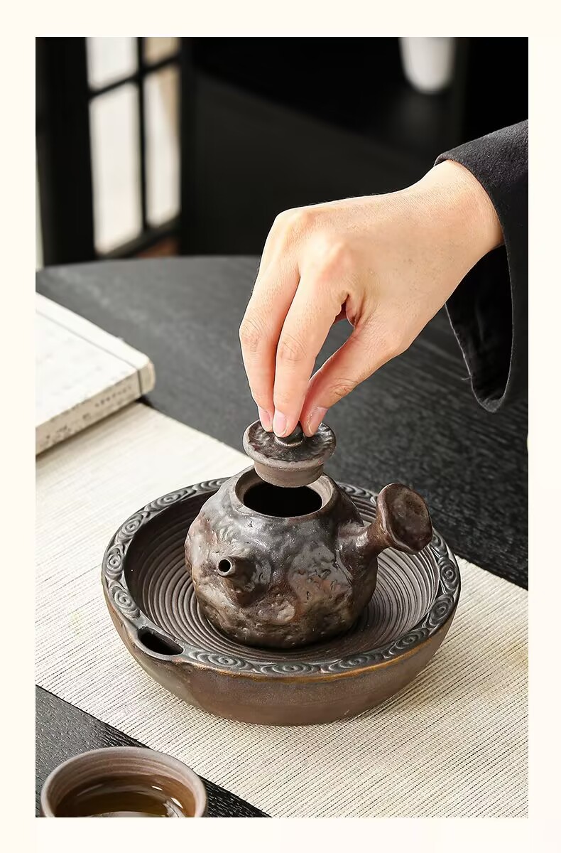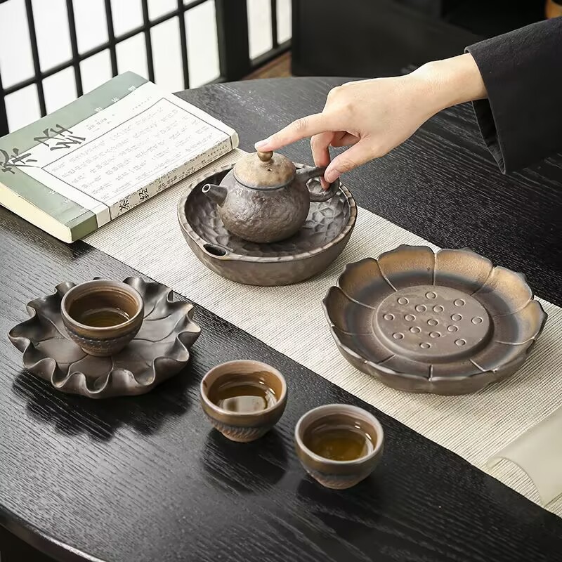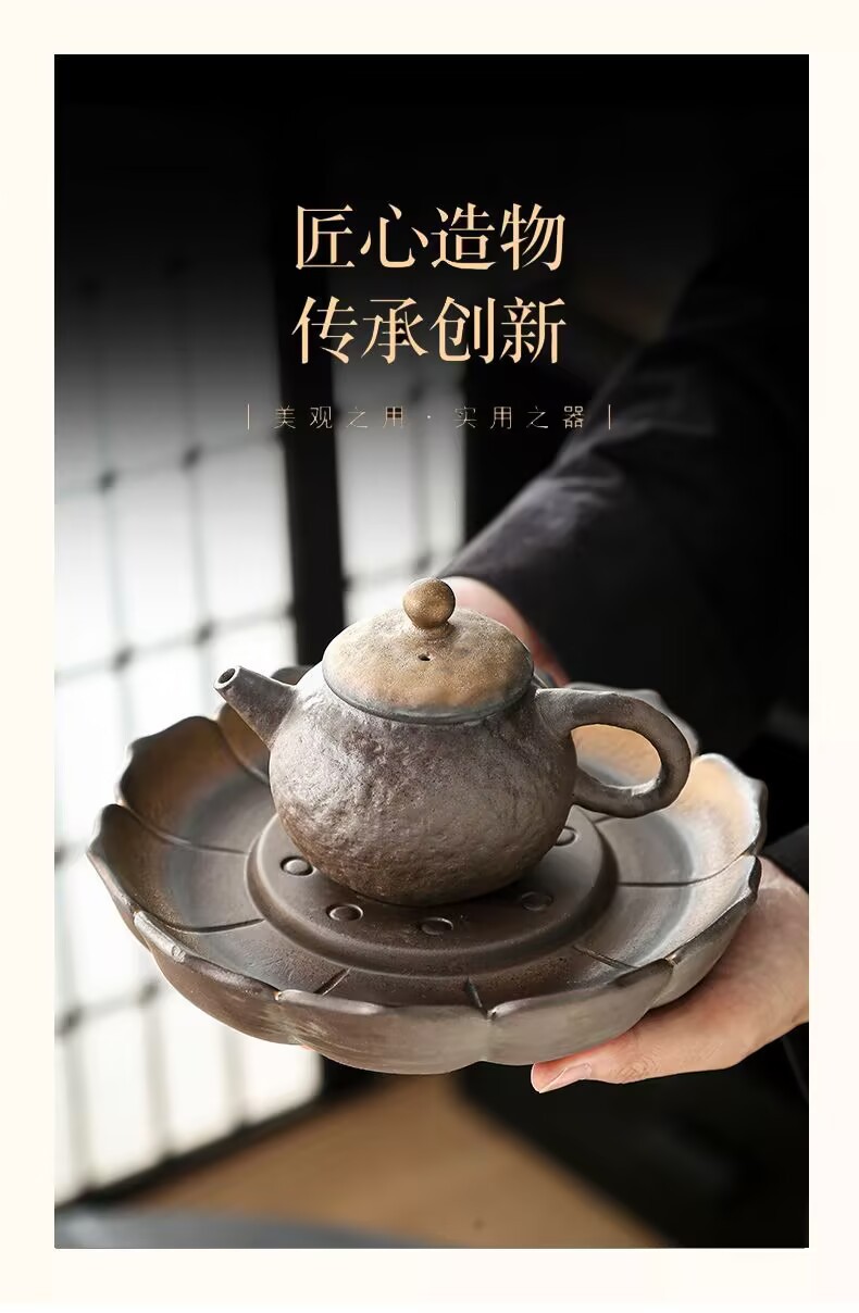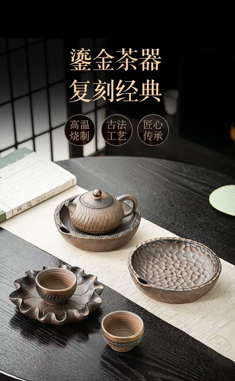 Позолоченный держатель для горшка из ржавой глазури - черный узор; Позолоченная ржавая глазурь-держатель для горшка с молоточным узором; Позолоченная ржавая глазурованная бутылка-лотос; Позолоченный ржавый глазурованный горшок-лист лотоса; Позолоченный ржавый подстаканник для кастрюли с надписью чая