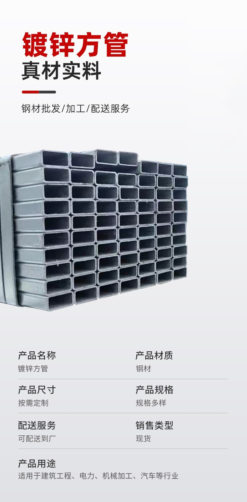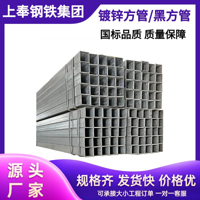 Оцинкованная квадратная труба Q235B, горячеоцинкованная прямоугольная труба большого и малого диаметра для строительства навесных стен, производитель сварных квадратных труб, оптовая продажа.