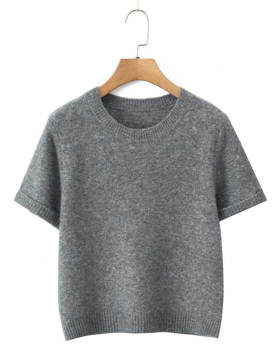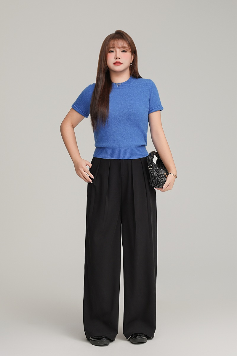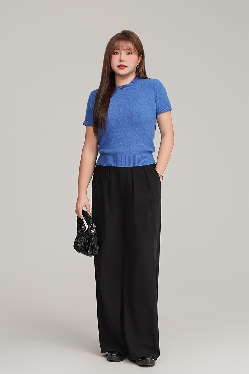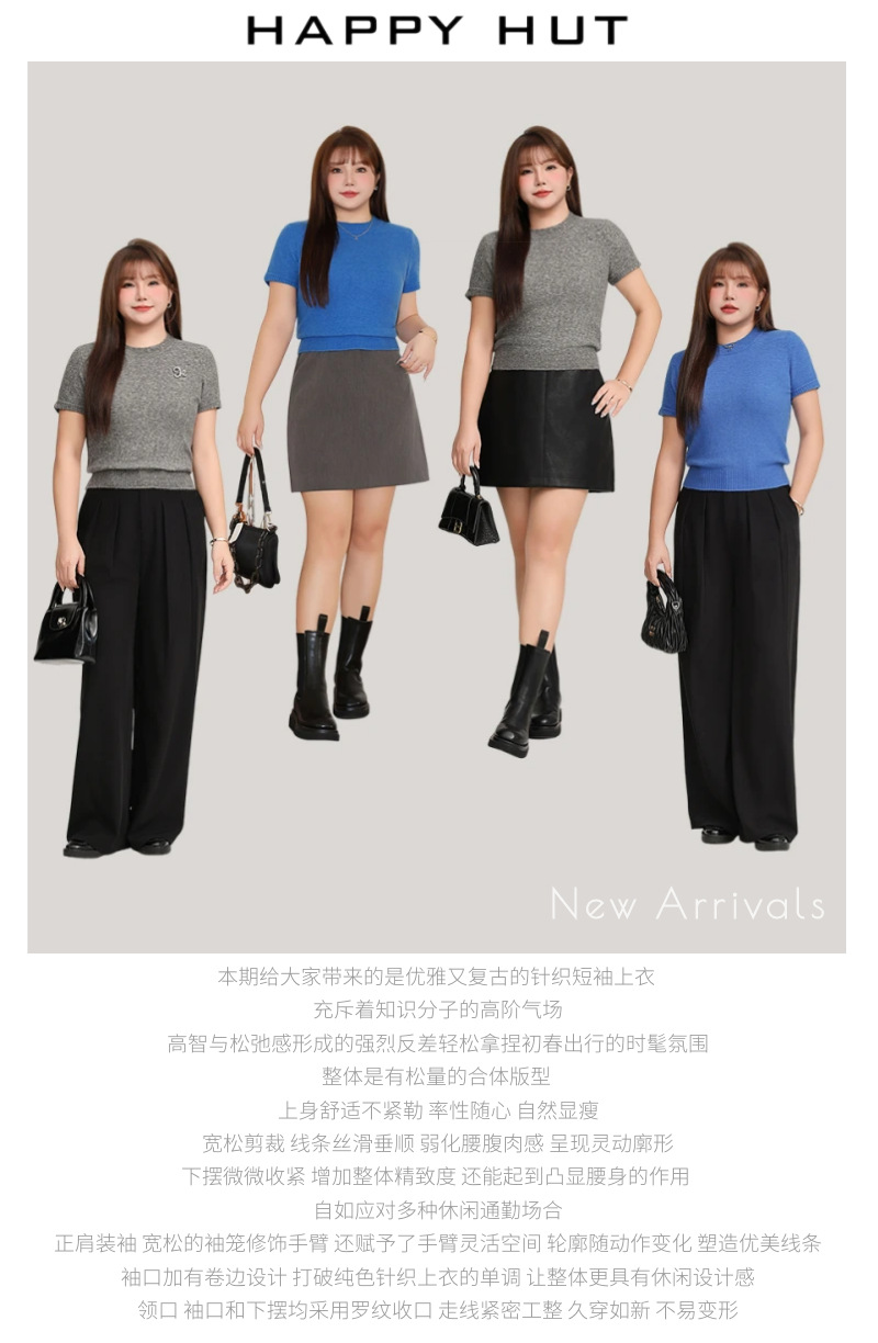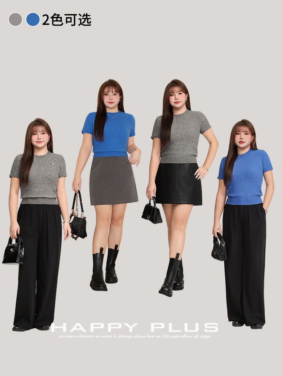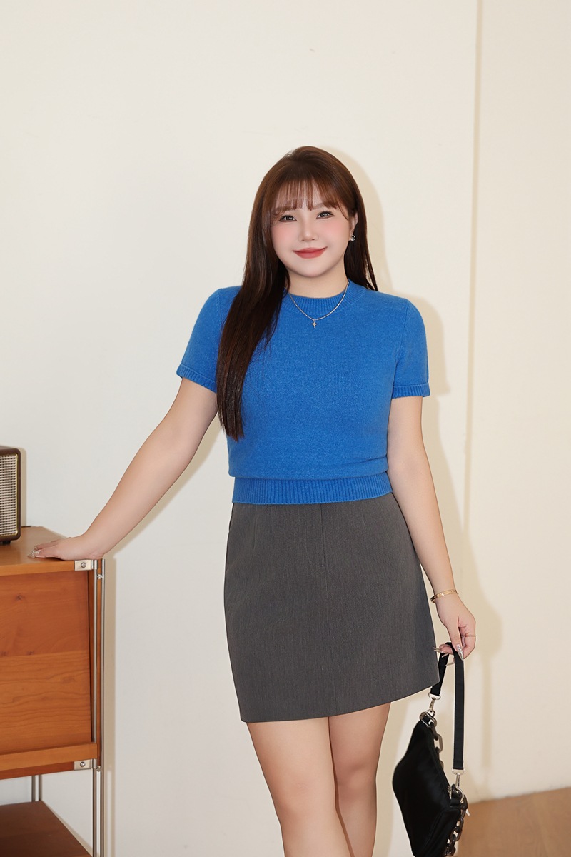 Женская новая внутренняя одежда Runqi 9103, осенняя синяя трикотажная кофта с короткими рукавами и круглым вырезом во французском стиле, больших размеров, 2025 года.
