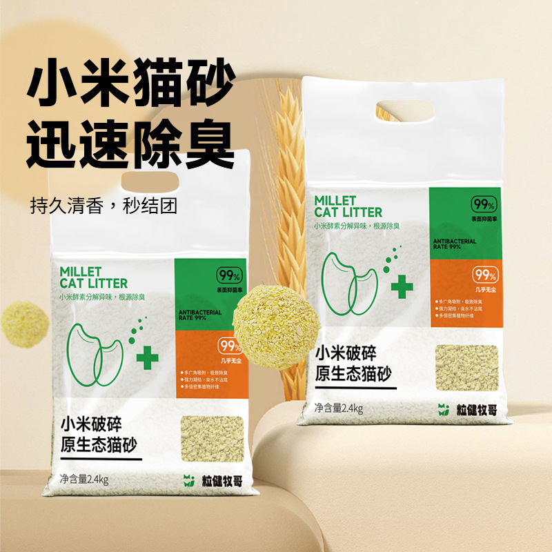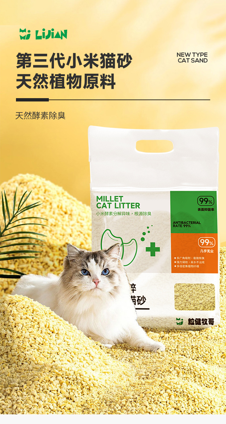 Наполнитель для кошачьего туалета: натуральный растительный наполнитель, мелкие частицы, без пыли, дезодорирующий, быстро комкующийся, растительный наполнитель из проса для кошачьих домиков.